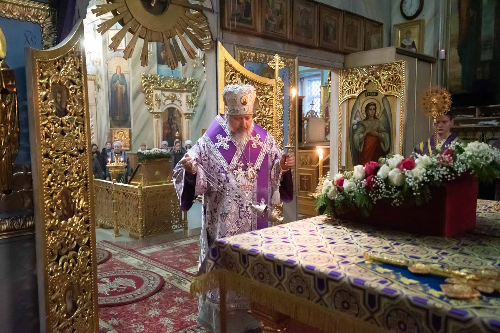 Его Высокопреосвященству сослужили клирики кафедрального собора.