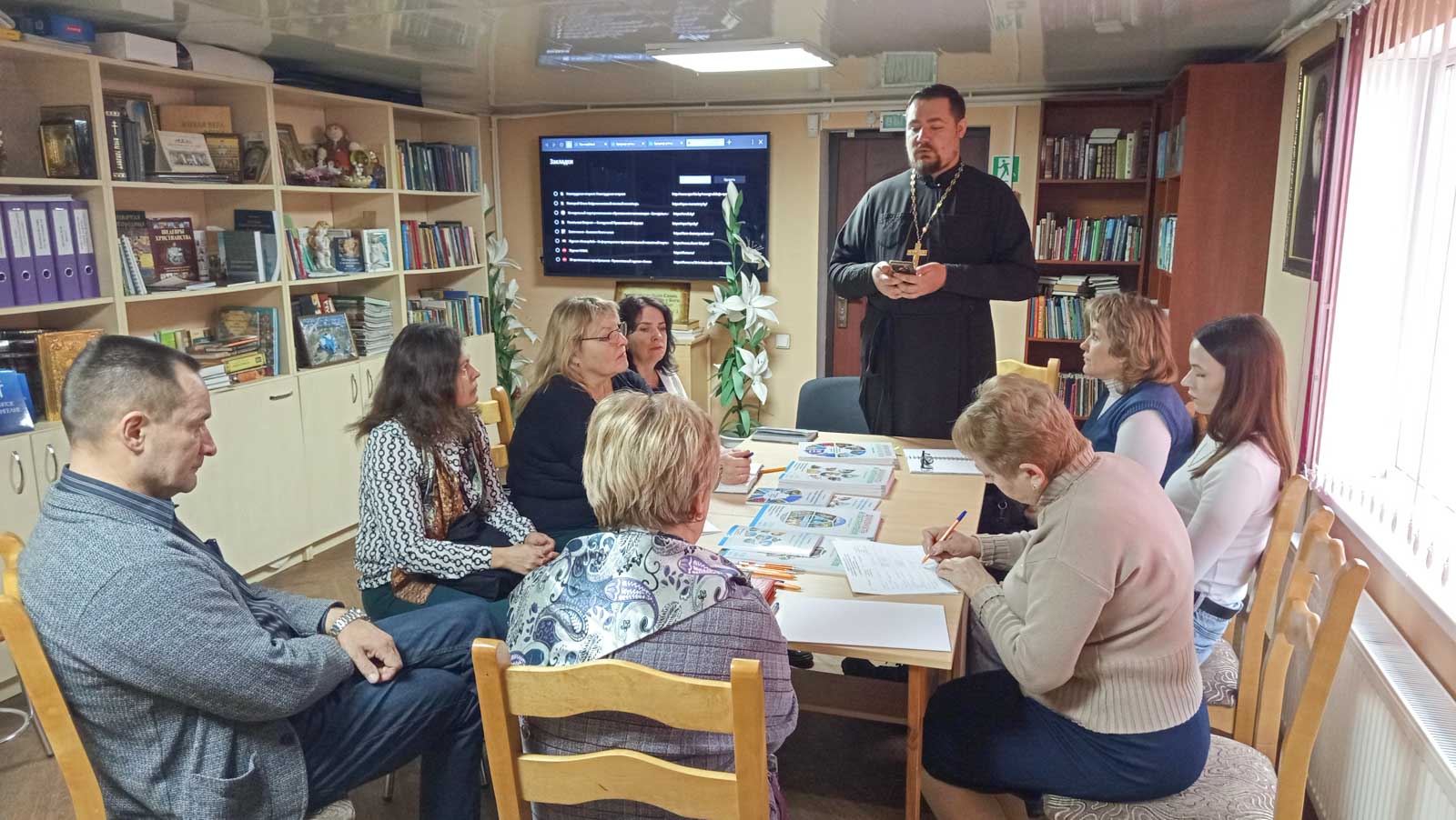 В основной части семинара специалист по приходскому просвещению Людмила Георгиевна Карпенко предложила педагогам проанализировать те трудности, с которыми они сталкиваются в процессе реализации факультатива посредством ответа на вопросы в формате «круглого стола».