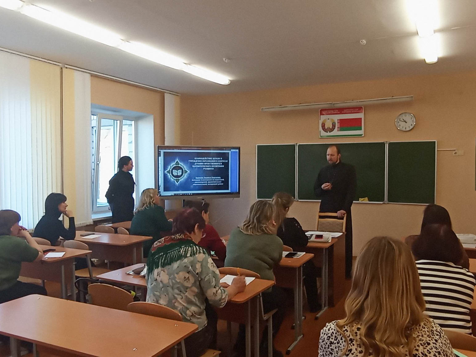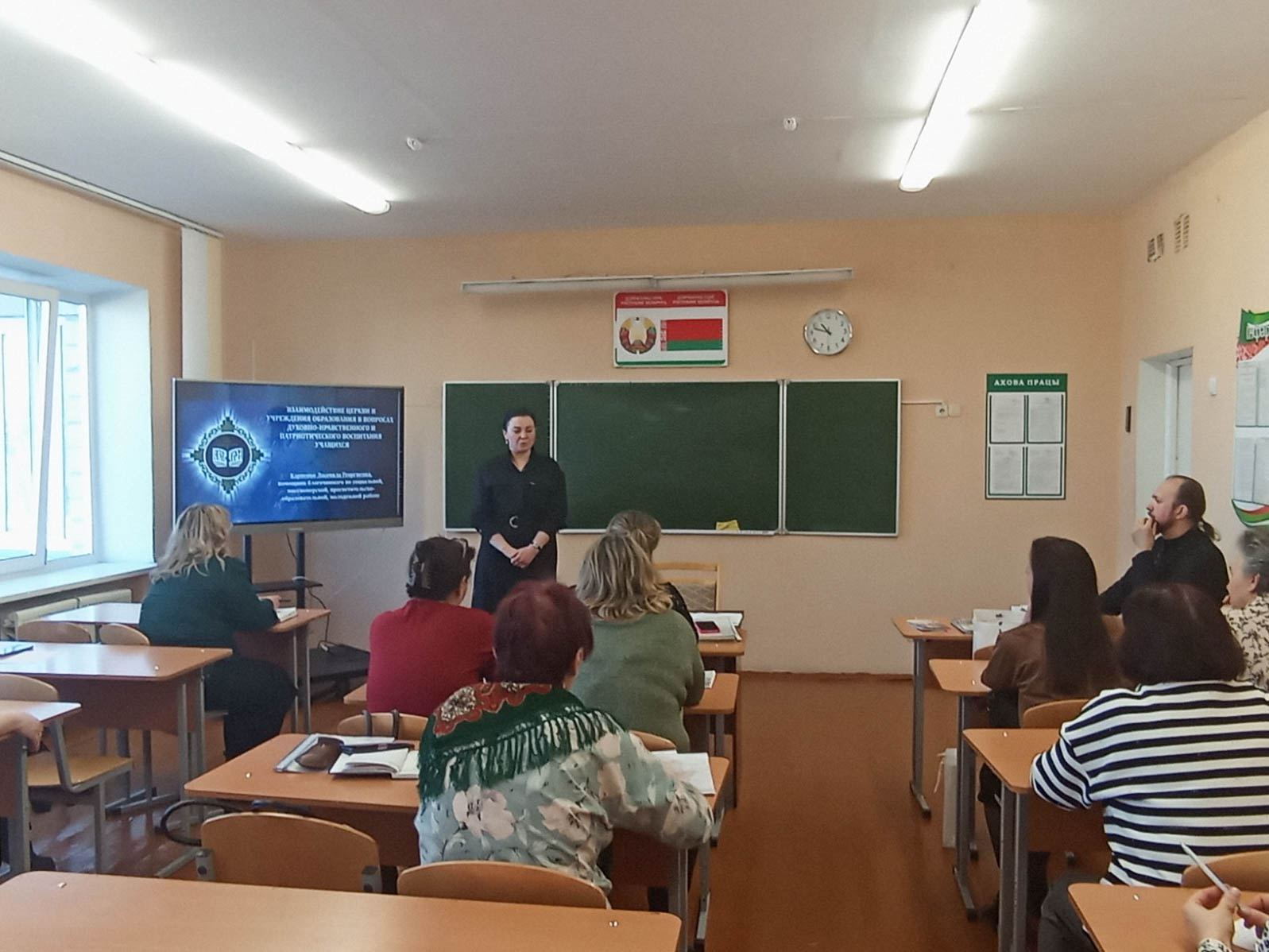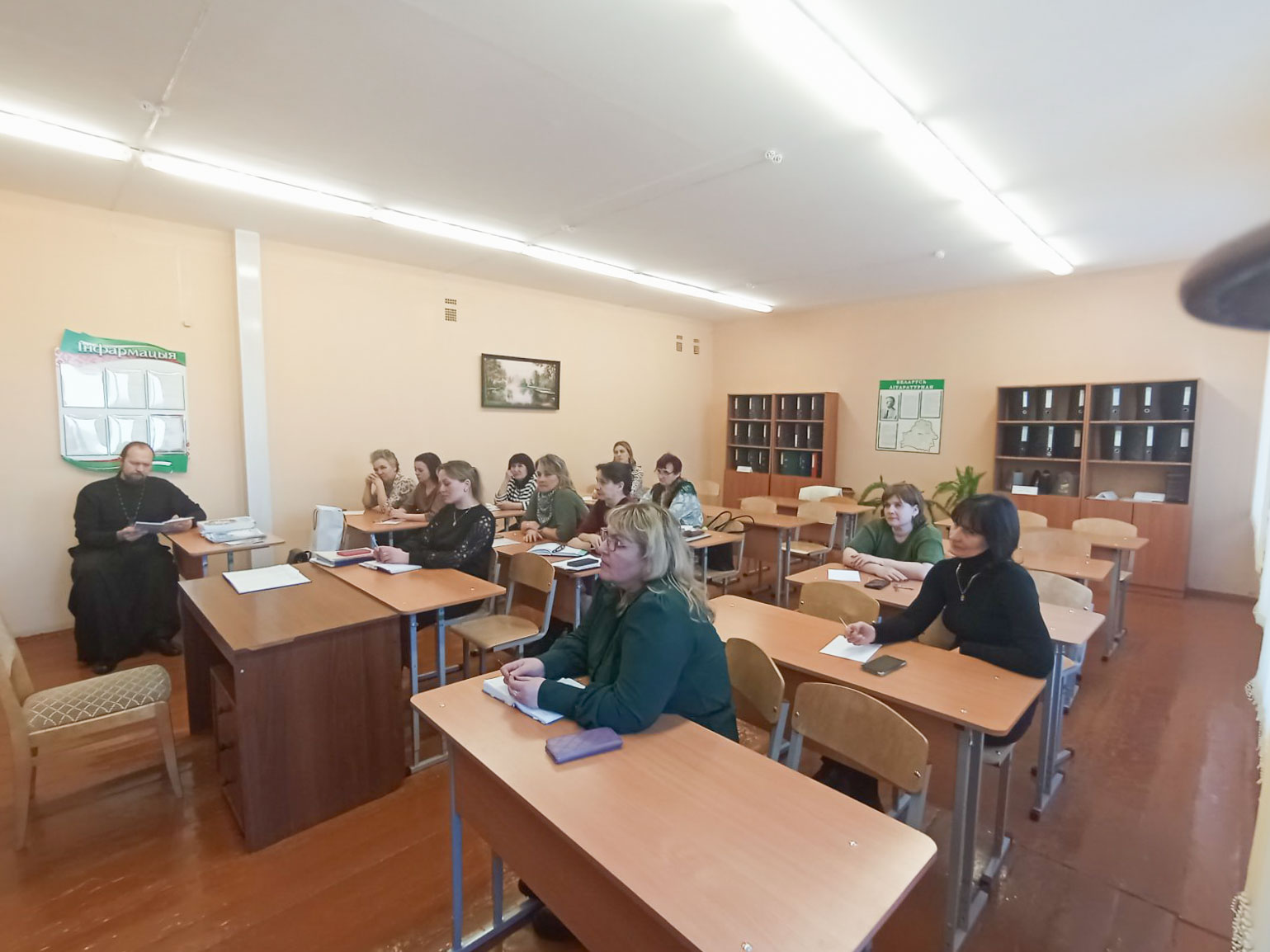 Иерей Димитрий Чварков, настоятель прихода храма, и Людмила Карпенко, координатор прихода храма, встретились с кураторами учебных групп и воспитателями общежития Лоевского педколледжа. Участие в семинаре также приняла заместитель директора по воспитательной работе педколледжа Рачкова Людмила Валерьяновна.