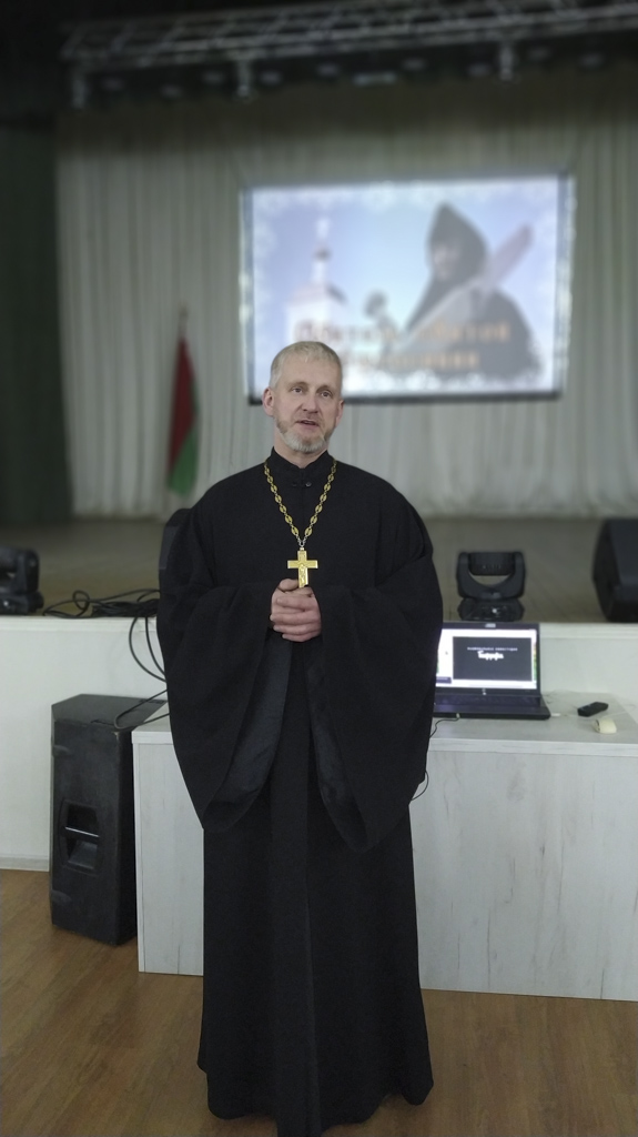 Перед началом просмотра к собравшимся с вступительным словом обратился настоятель храма святого благоверного князя Олега Брянского иерей Алексей Рыкалин. Священник рассказал о жизненном пути святой Евфросинии Полоцкой — подвижницы, посвятившей себя Богу с юных лет и до конца своих дней неуклонно следовавшей избранному пути духовного служения.
