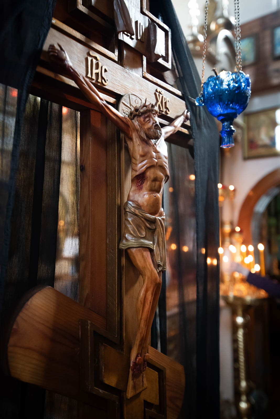 Верующие с благоговением поклонились Распятию, вынесенному на середину храма.