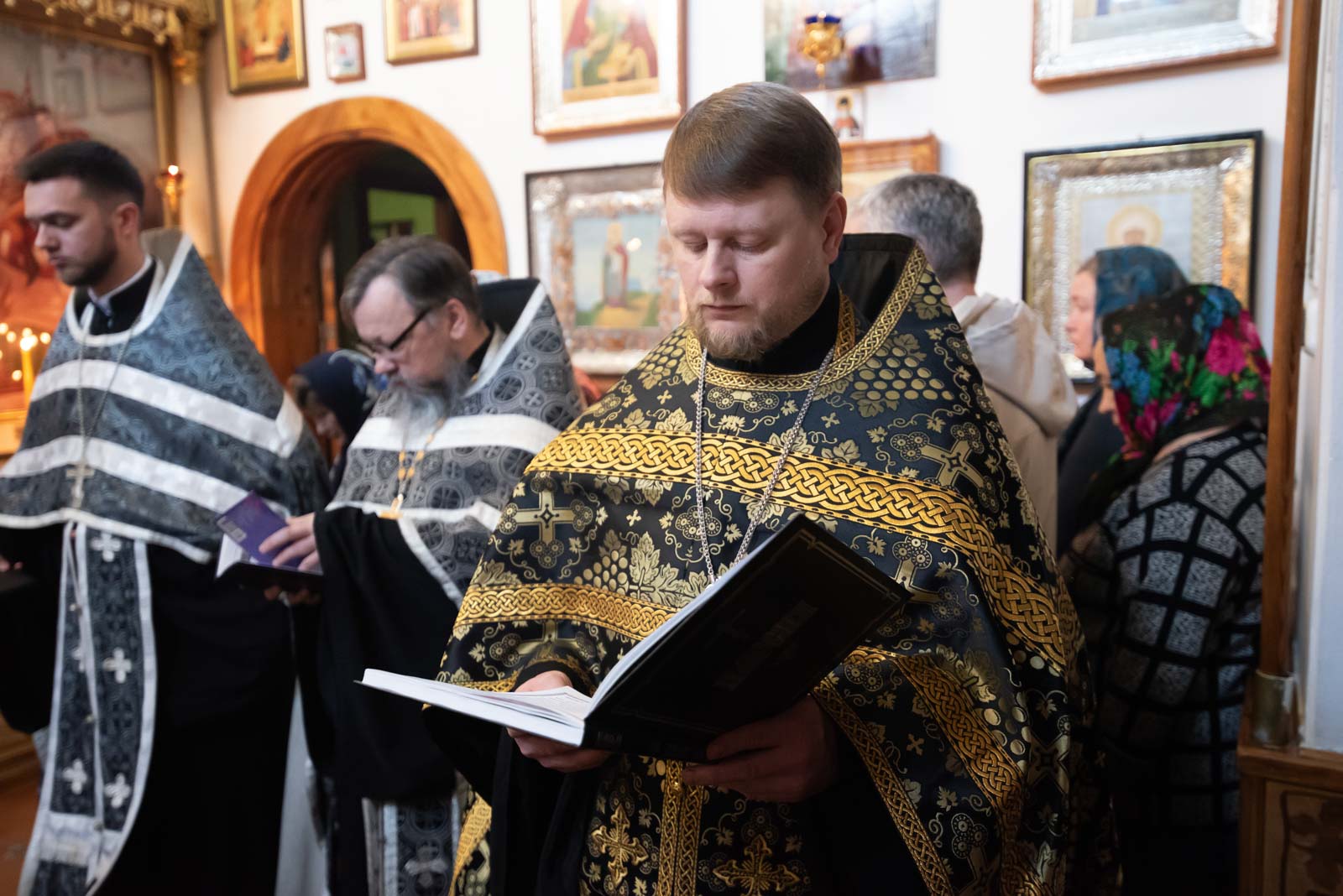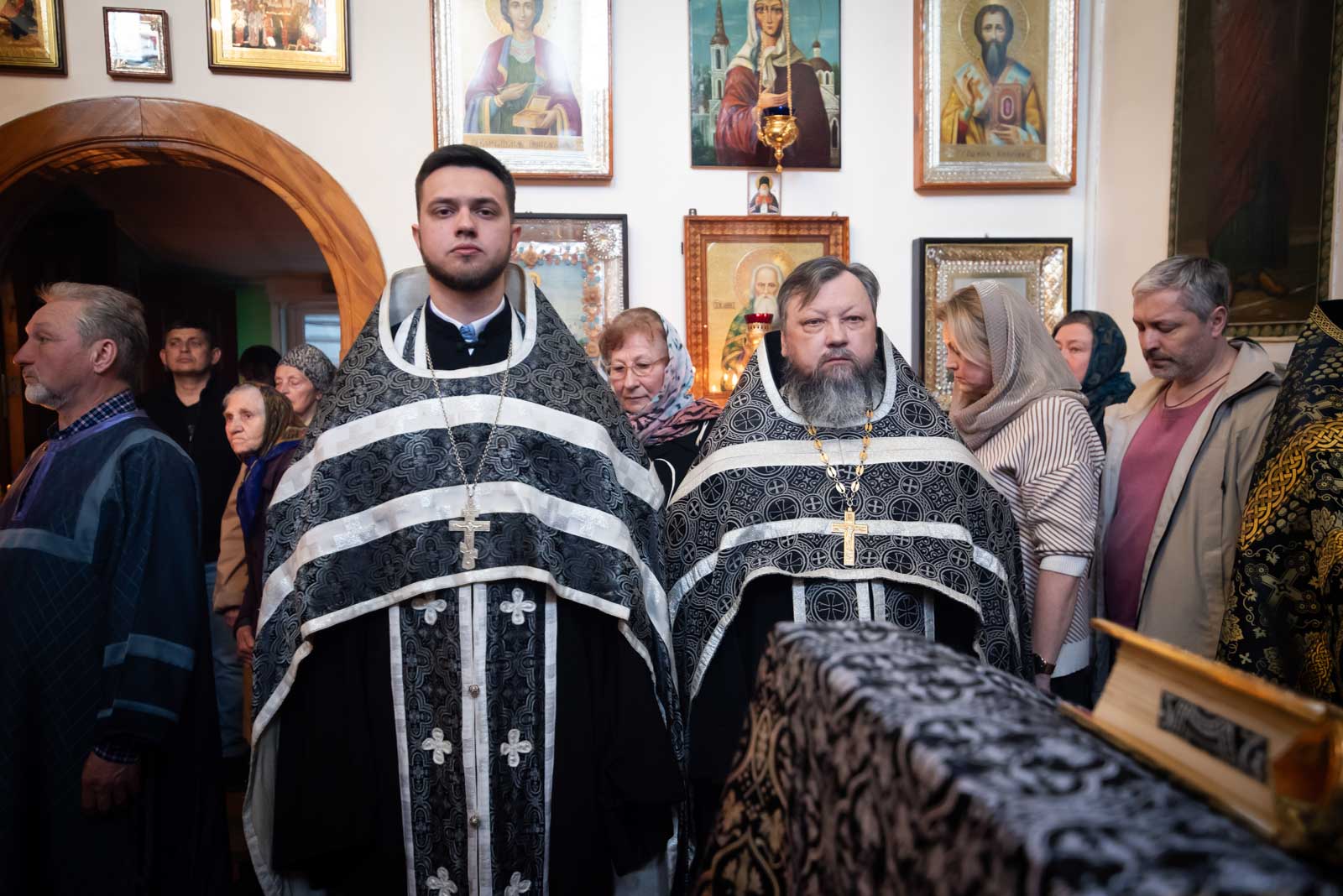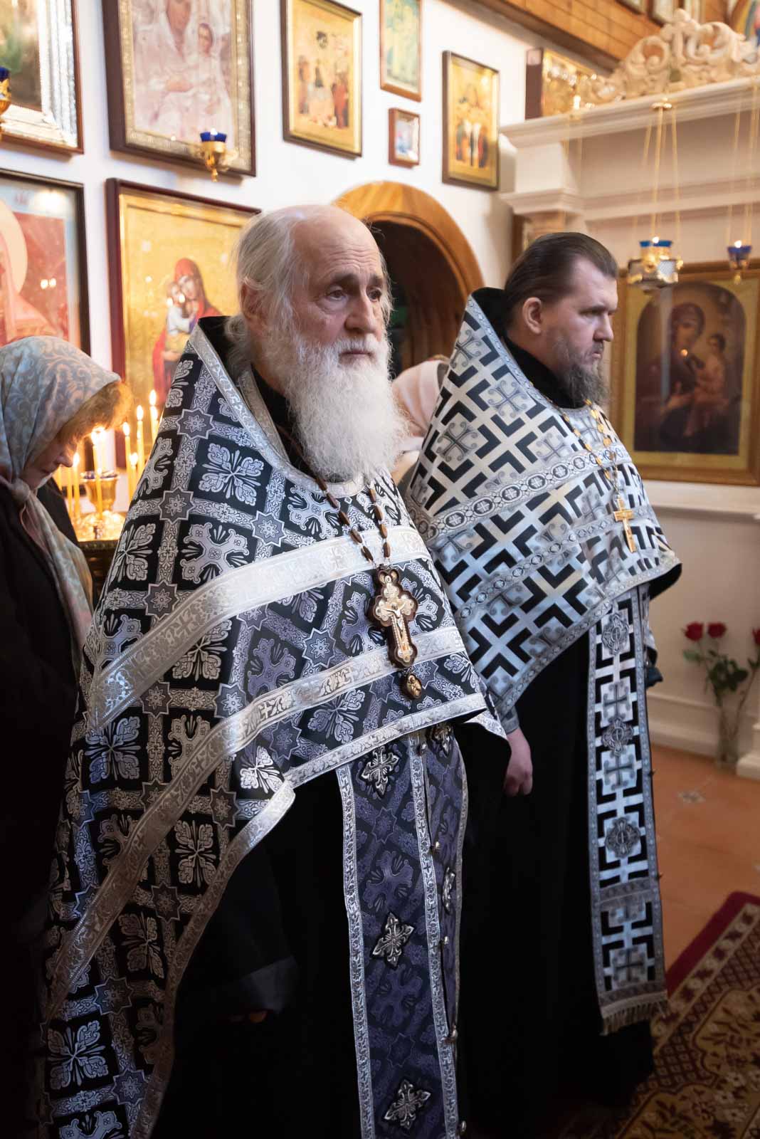 Высокопреосвященнейшему сослужили: секретарь Гомельской епархии протоиерей Георгий Алампиев, настоятель прихода протоиерей Дмитрий Гончаров и духовенство прихода.
