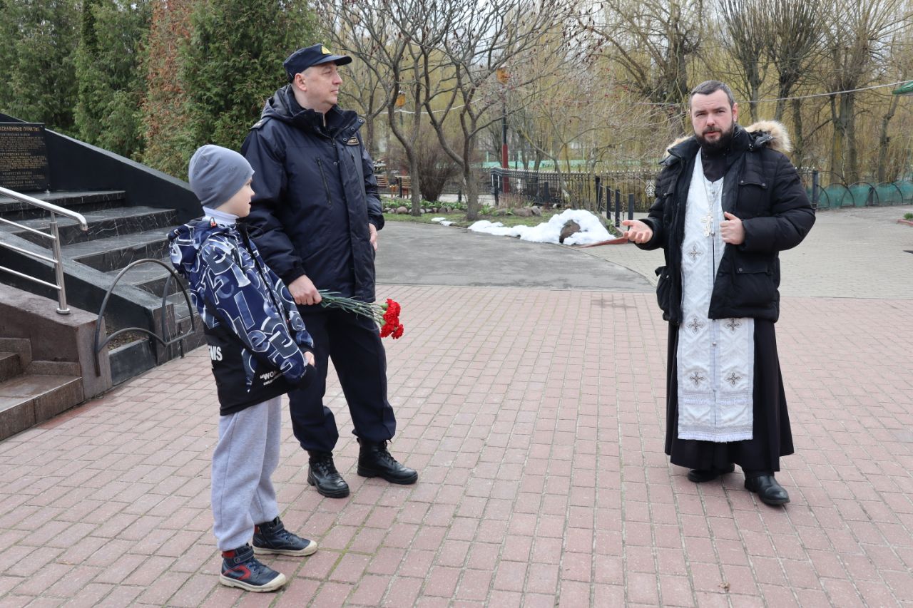 В ходе общения с духовенством участники субботника узнали также об истории Поклонного Креста, установленного в честь героически погибших пограничников, а также о других памятных знаках, находящихся на территории храмового комплекса, свидетельствующих о мужестве и жертве огнеборцев, первых принявших на себя удар катастрофы.