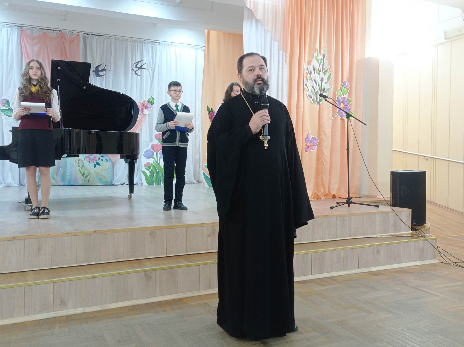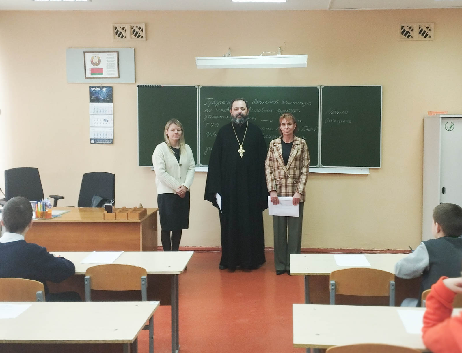 В торжественном открытии олимпиады приняли участие: протоиерей Артемий Кривицкий, председатель отдела религиозного образования и катехизации Гомельской епархии и Ведюн Н.Г., методист ГУО “Гомельский городской учебно-методический кабинет”. В своем приветственном слове протоиерей Артемий отметил, что для Гомеля олимпиада по основам православной культуры стала уже традиционной и пожелал, чтобы духовные ценности не остались лишь знаниями и информацией на страницах книг, но и стали частью жизни ребят и нашей общей культуры. В свою очередь Наталья Геннадьевна Ведюн поприветствовала участников олимпиады и подчеркнула, что олимпиада дает возможность участникам прикоснуться к истокам развития православной культуры, традициям и истории белорусского народа, к истинным ценностям и духовности. Далее гостям были представлены музыкальные номера в исполнении творческих коллективов и учащихся гимназии.