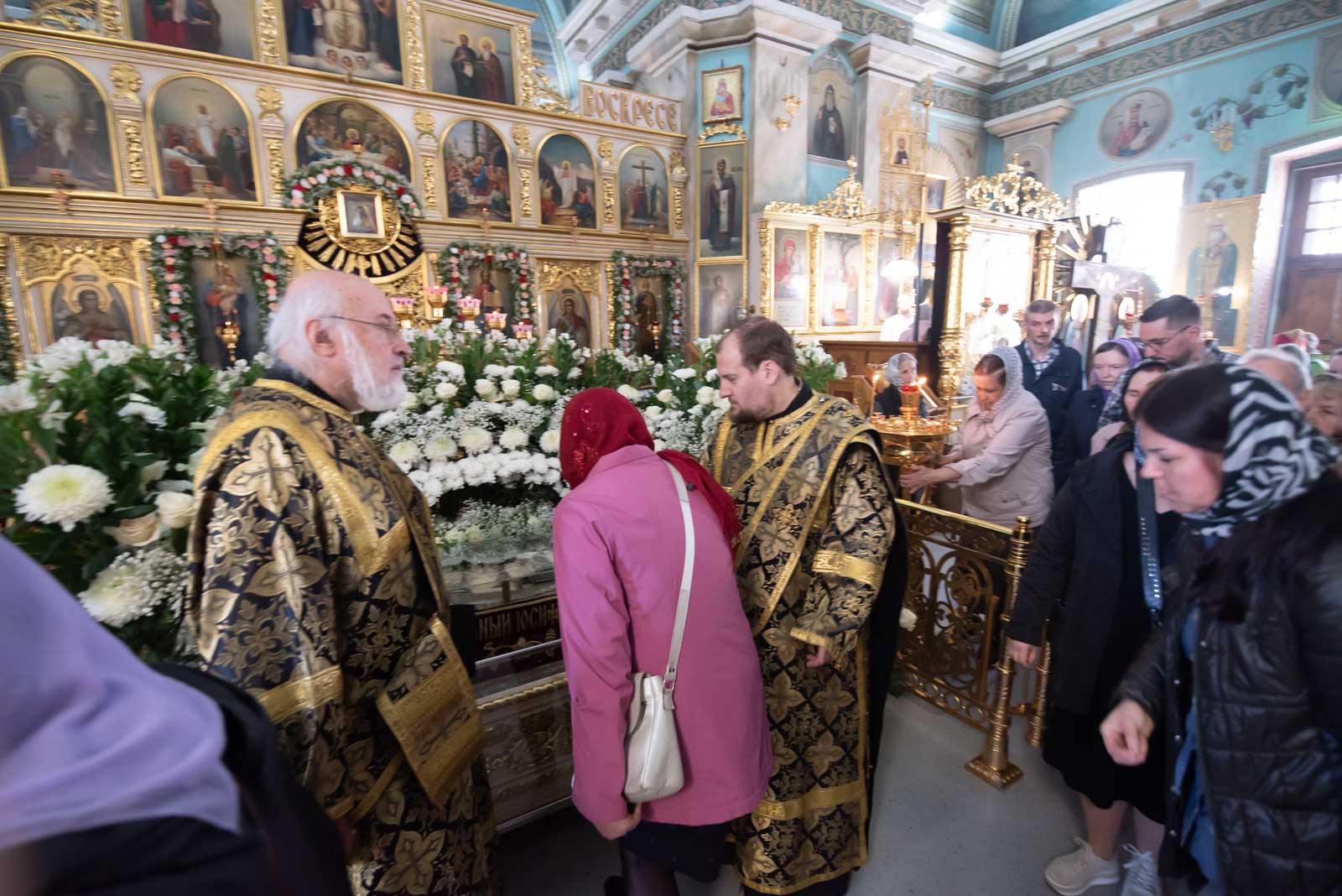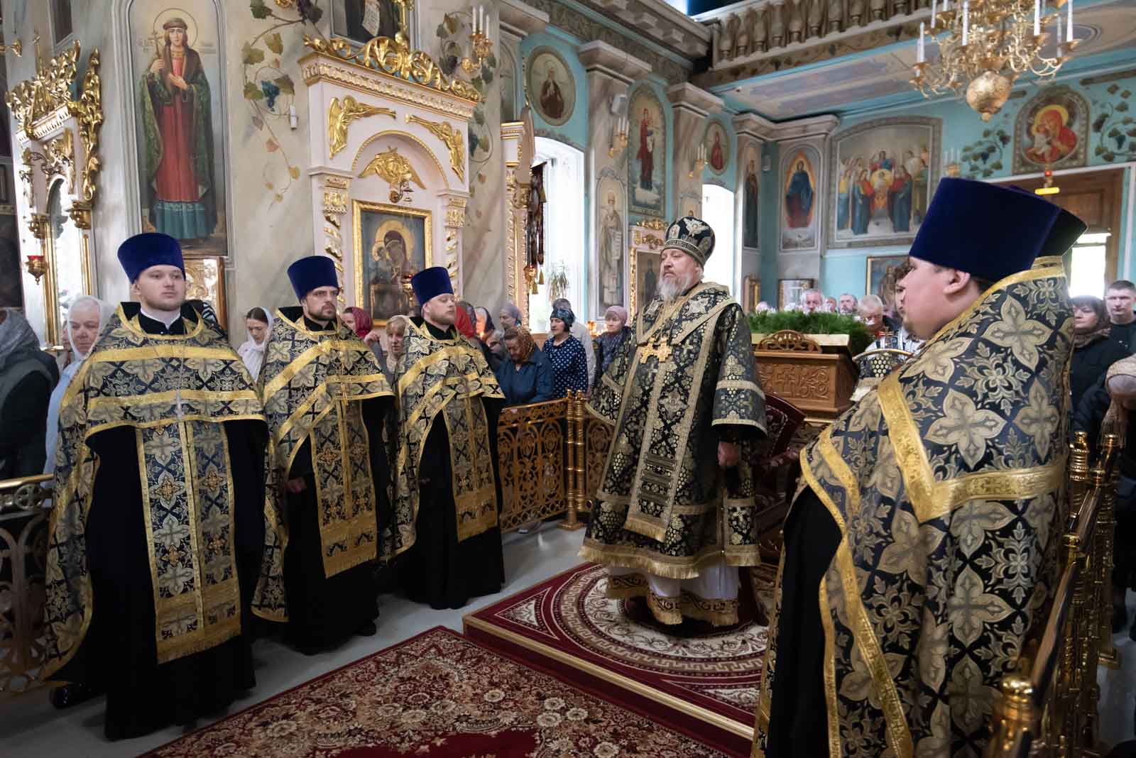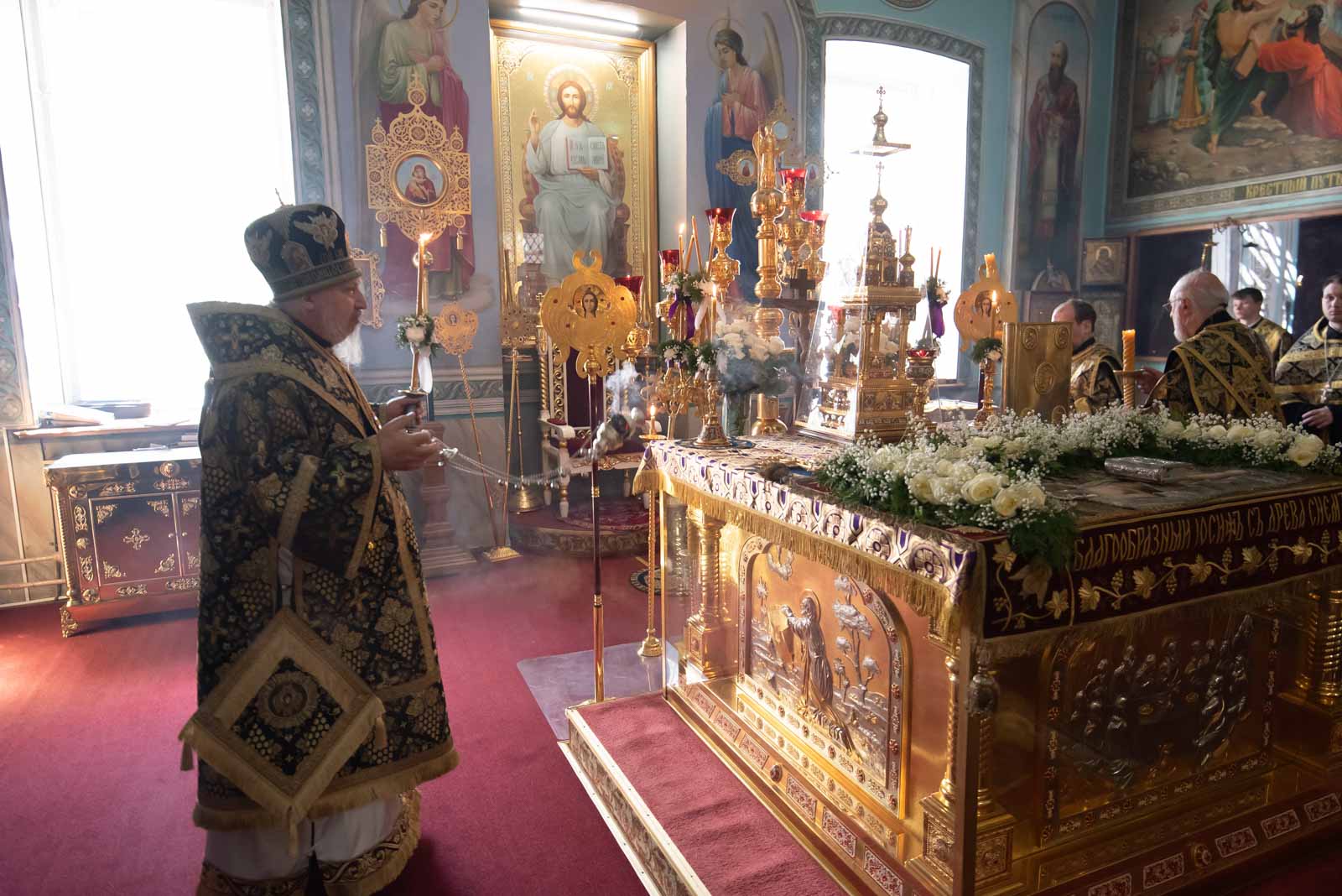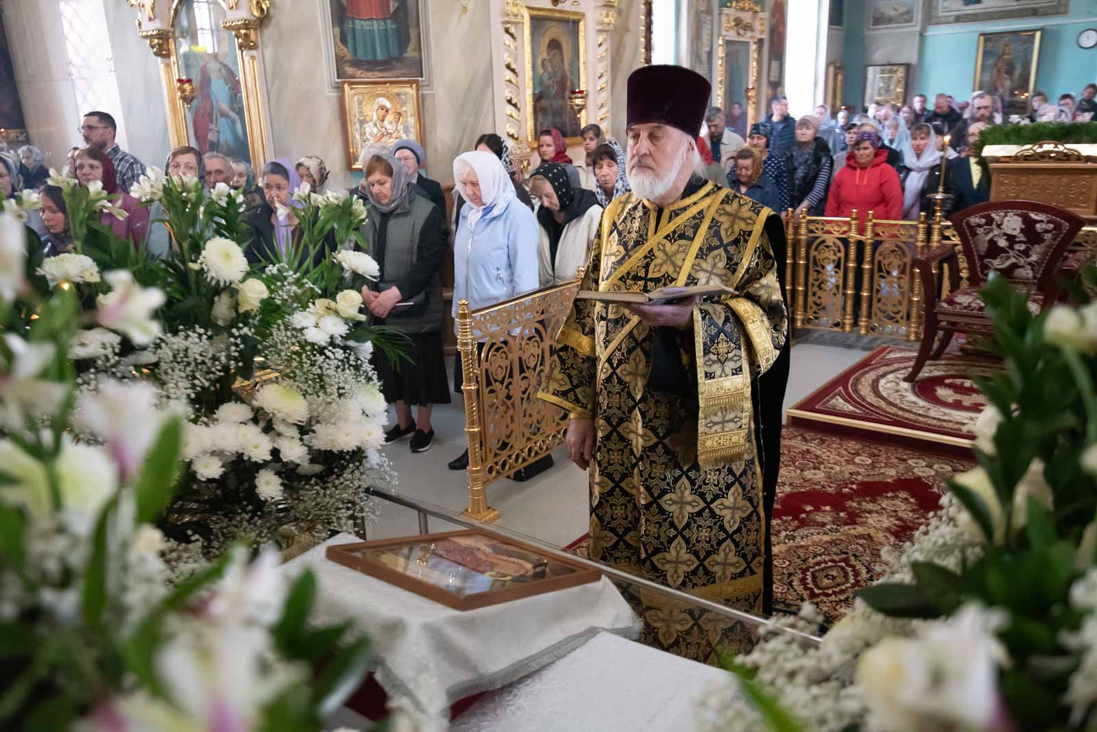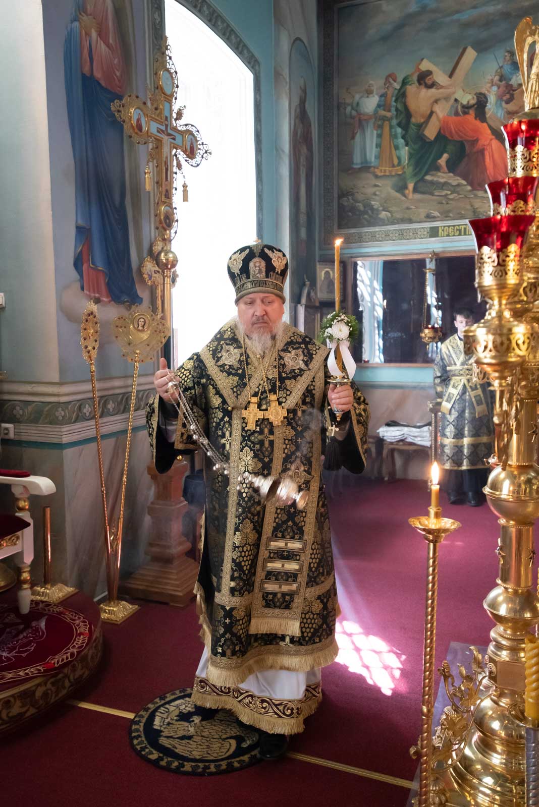 Его Высокопреосвященству сослужили секретарь Гомельской епархии протоиерей Георгий Алампиев и духовенство собора.