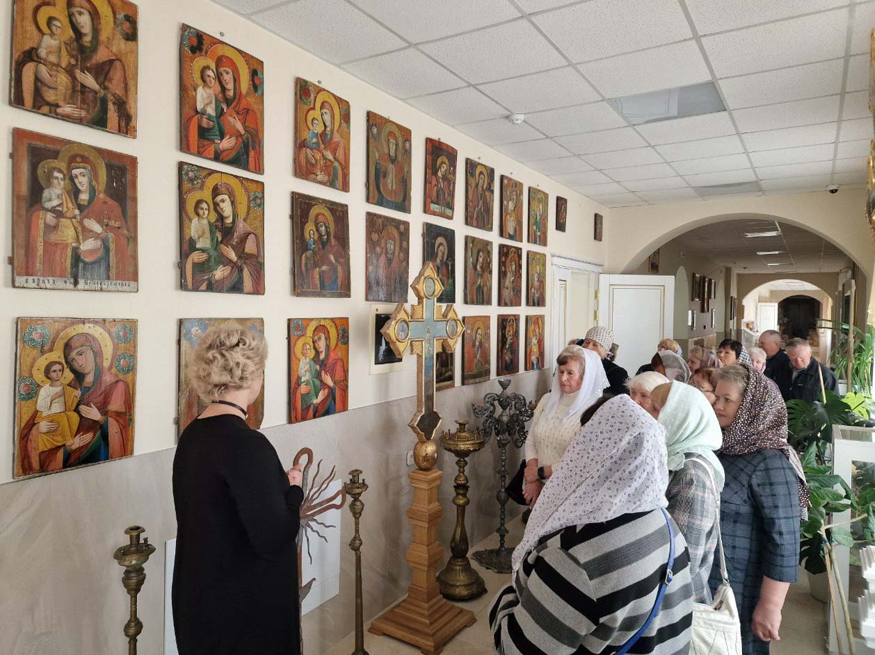 Экскурсию провел благочинный церквей Рогачевского округа иерей Алексей Сергеев. Он познакомил паломников со святынями, хранящимися в музее: с Юровичским образом Божией Матери, Купятицкой иконой Богородицы, образом Божией Матери Скоропослушница, привезенном с Афона. Реставратор Елена Владимировна Глушакова рассказала, как писались иконы.