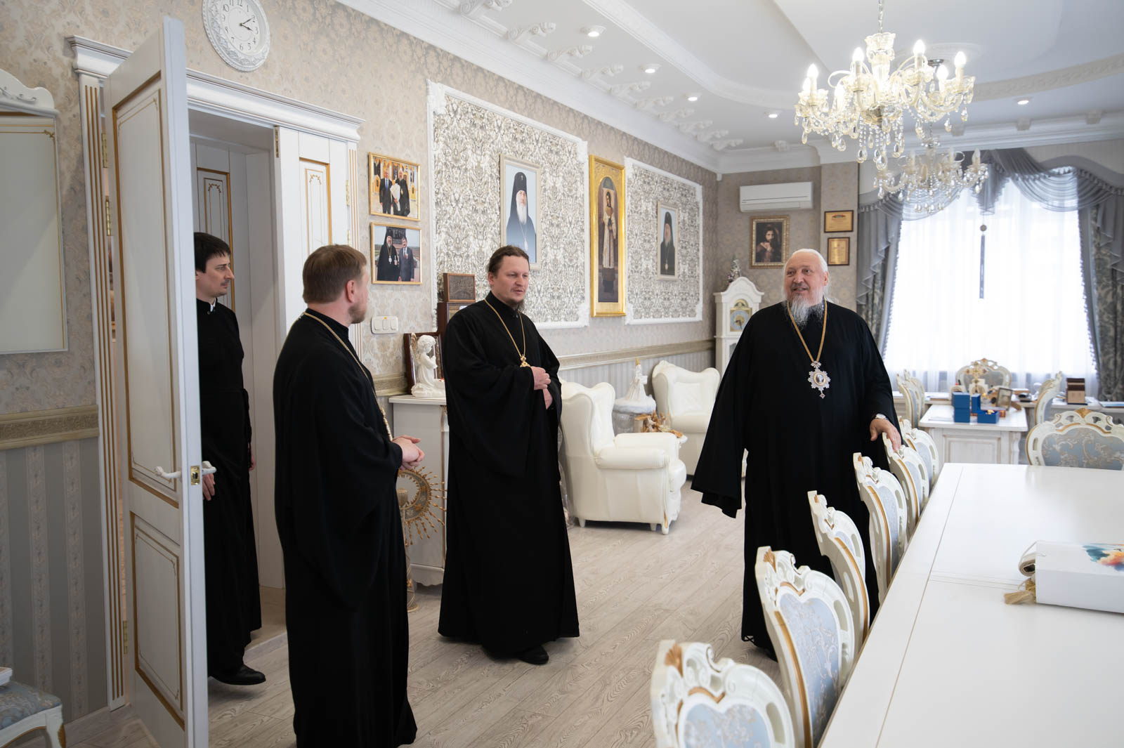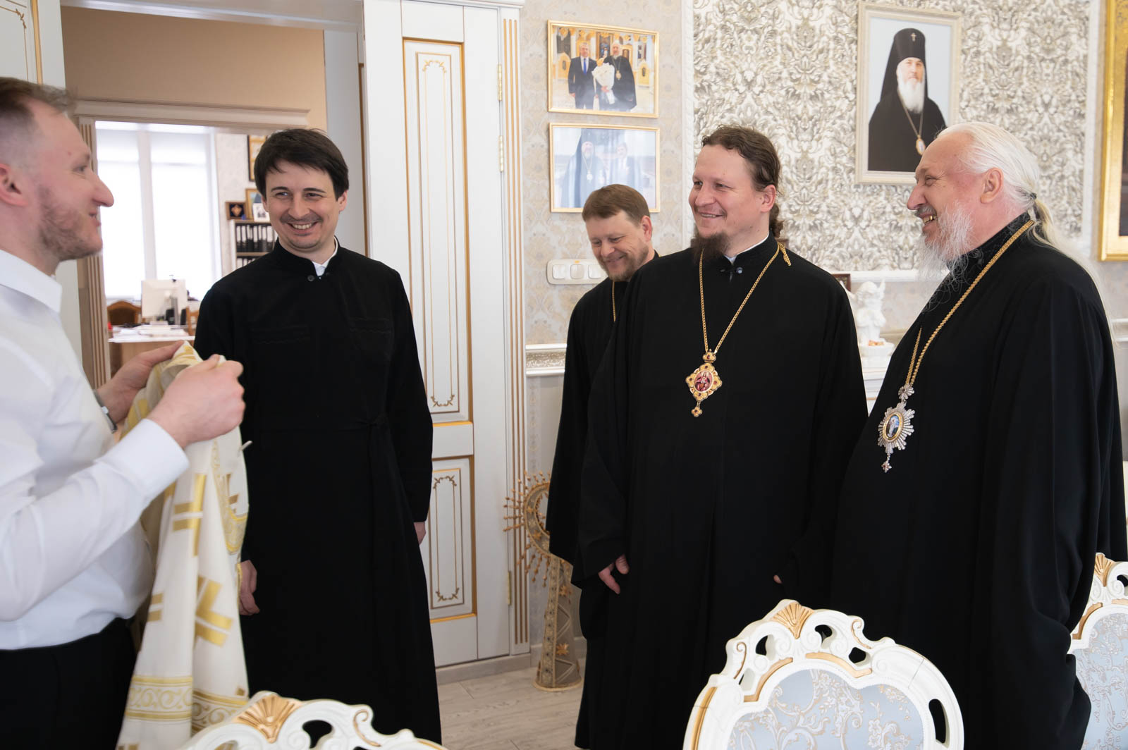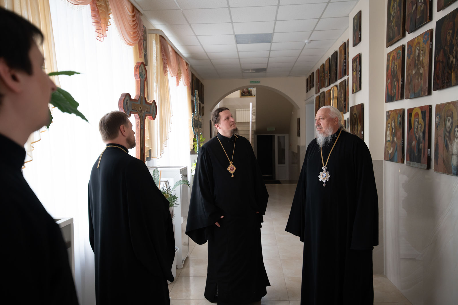 Затем владыки посетили Гомельское епархиальное управление, где была проведена подробная экскурсия по административному центру епархии. Гостям рассказали о структуре и направлениях деятельности управления, о работе профильных отделов.