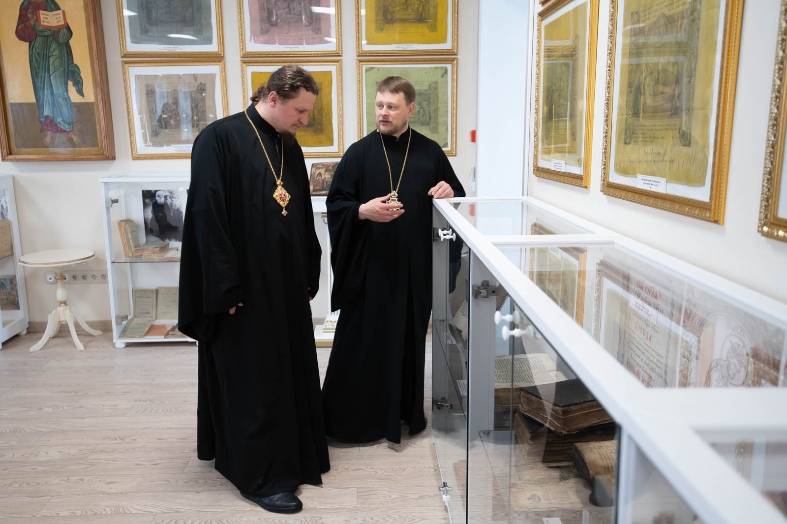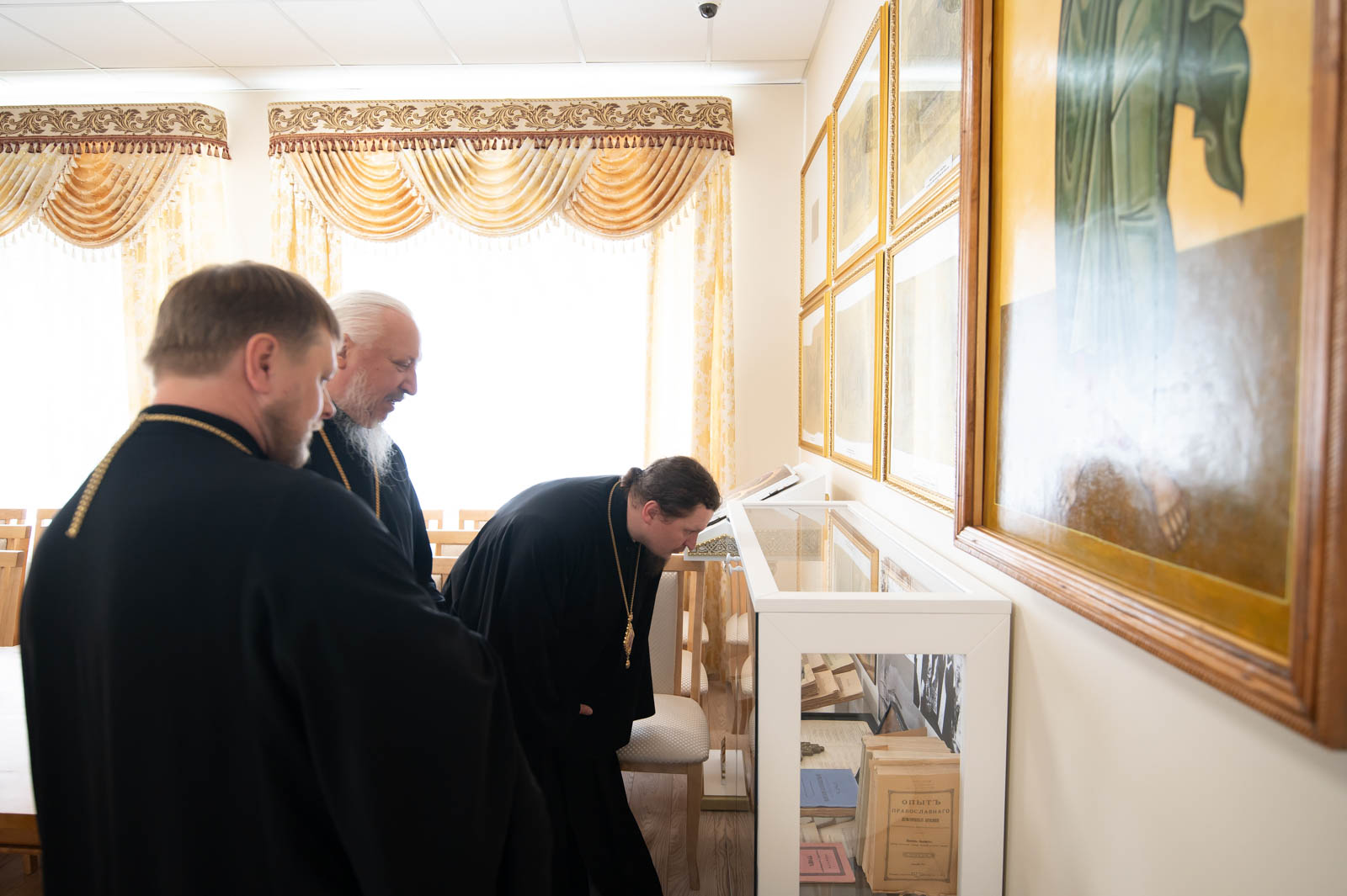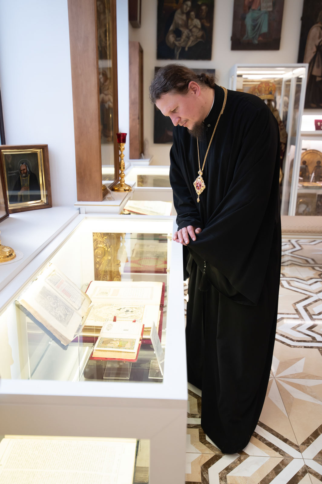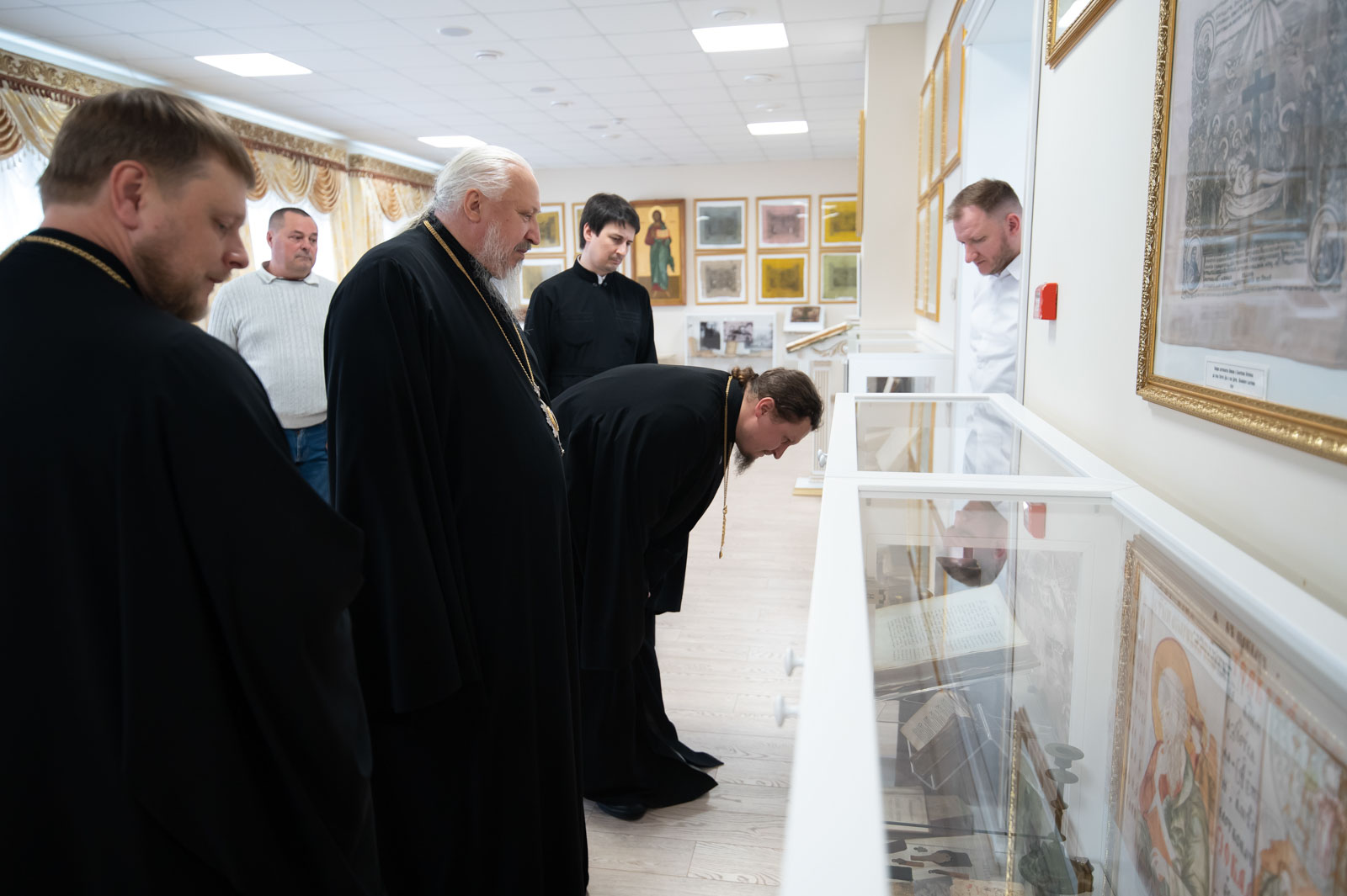 Затем архипастыри ознакомились с экспозицией «Святитель Тихон», приуроченной к 100-летию со дня блаженной кончины Патриарха Тихона — первого предстоятеля Русской Православной Церкви после восстановления патриаршества в XX веке. Экспозиция раскрывает его духовный путь, эпоху Поместного Собора 1917–1918 годов и трагический исторический контекст, в котором ему довелось нести пастырское служение.