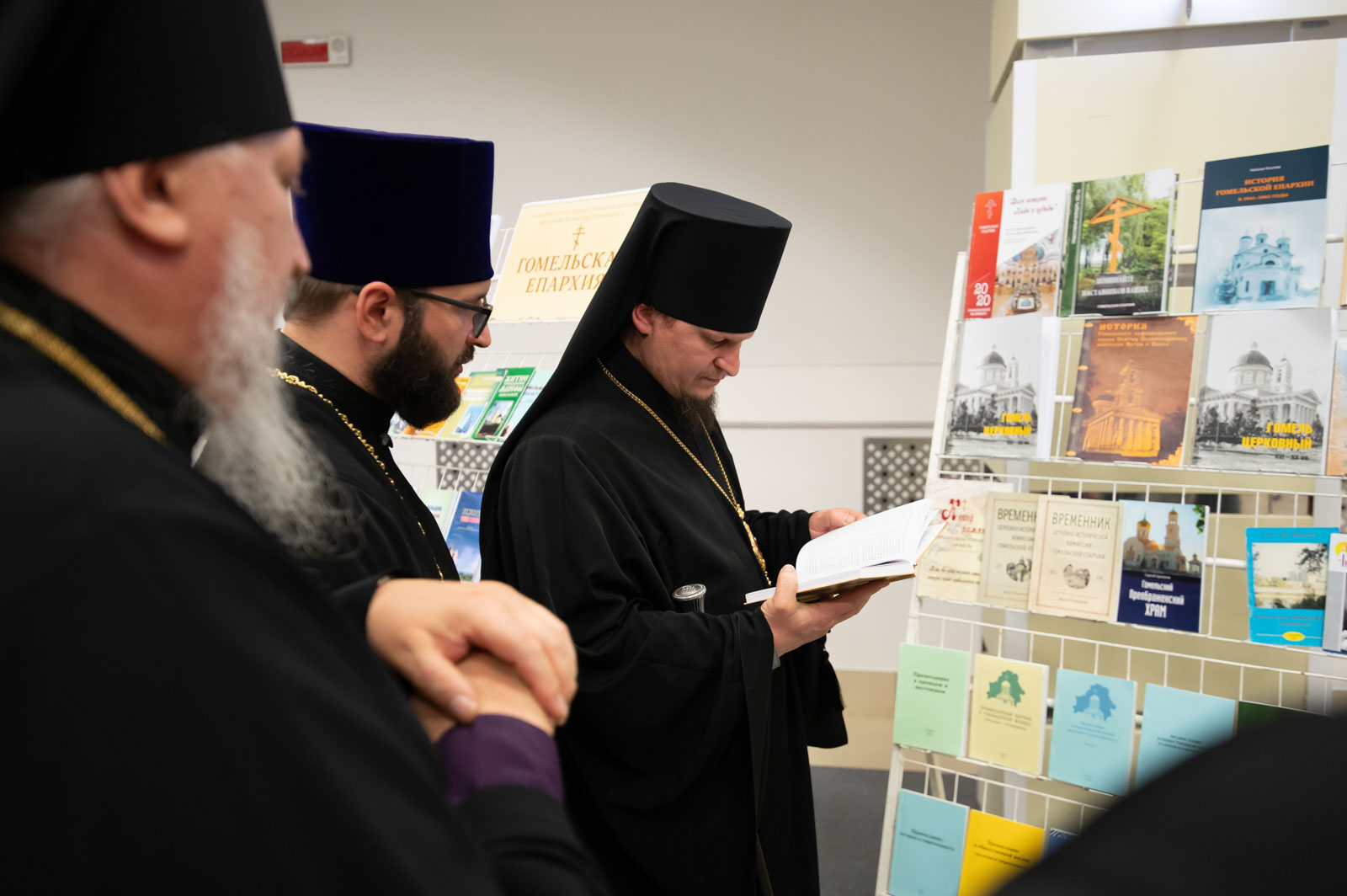18 мая в рамках продолжающейся работы выставки-форума «Радость Слова» Высокопреосвященнейший Стефан, архиепископ Гомельский и Жлобинский, совместно с Преосвященным Макарием, епископом Козельским и Людиновским, заместителем председателя Издательского совета Русской Православной Церкви посетили Городской центр культуры. Здесь они познакомились с рядом экспозиций, ставших важными вехами форума.