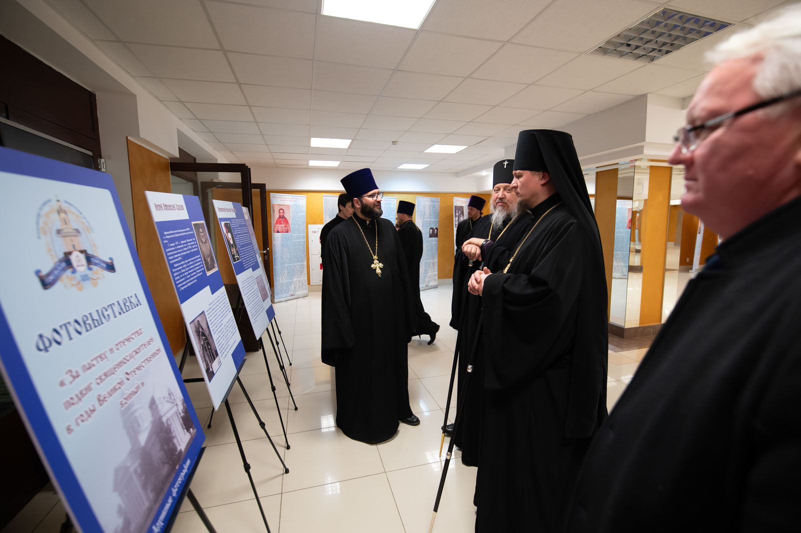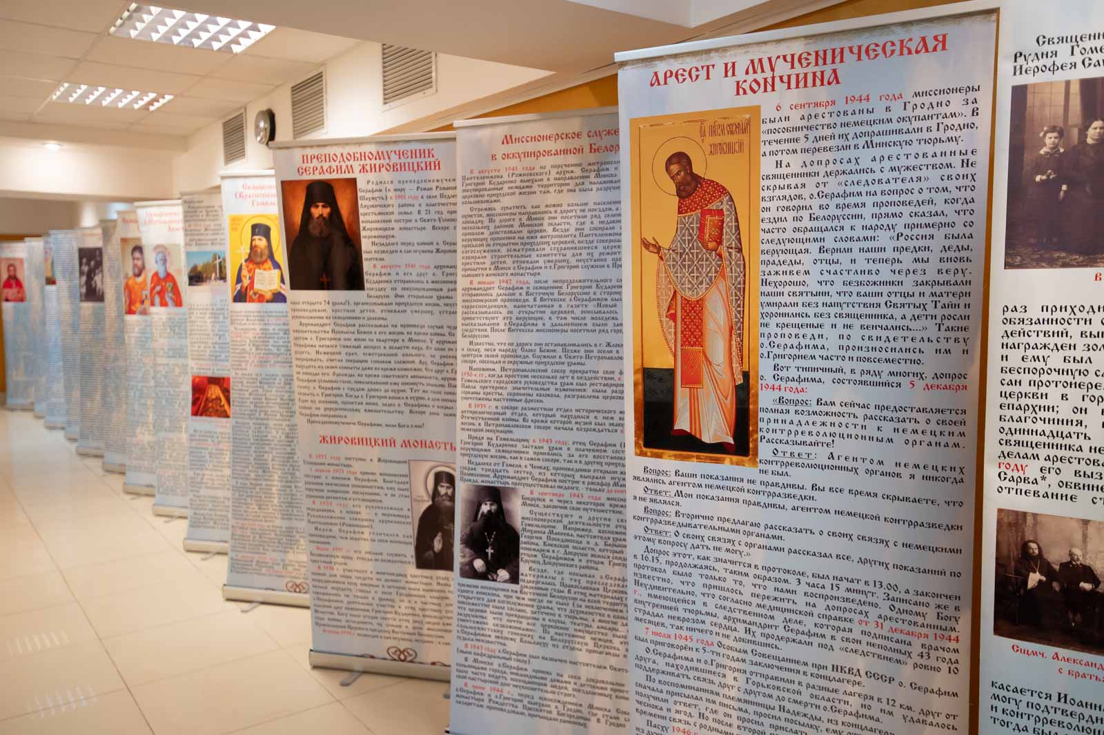 Первой стала выставка «В терпении — спасение», размещённая в фойе ГЦК. Её презентовал протоиерей Александр Лопушанский. Экспозиция посвящена подвигу новомучеников и исповедников Гомельской земли. Документы, фотографии, архивные материалы, жития подвижников — всё это рассказывает о священниках, монахах и мирянах, пронёсших верность Христу сквозь годы репрессий. Название выставки восходит к письму святителя Стефана (Виноградова), в котором он, находясь в заключении, писал своей сестре Манефе: «Помни, в терпении спасение».