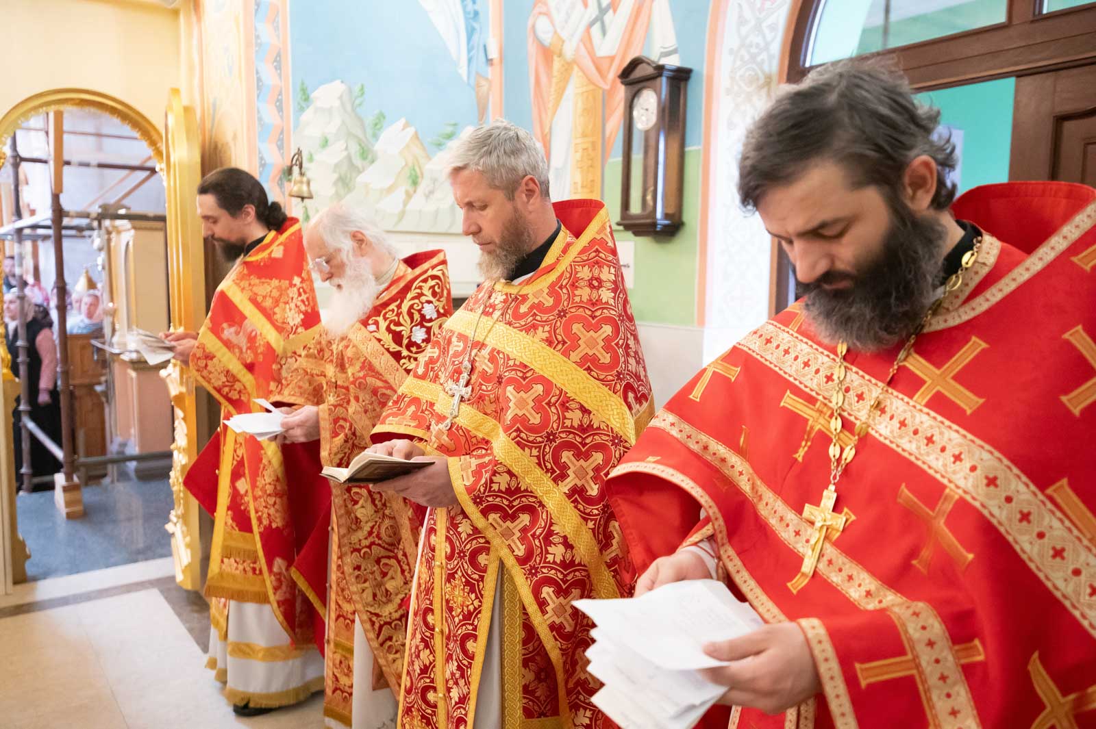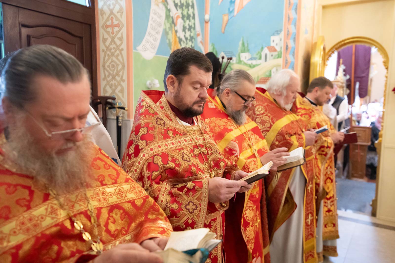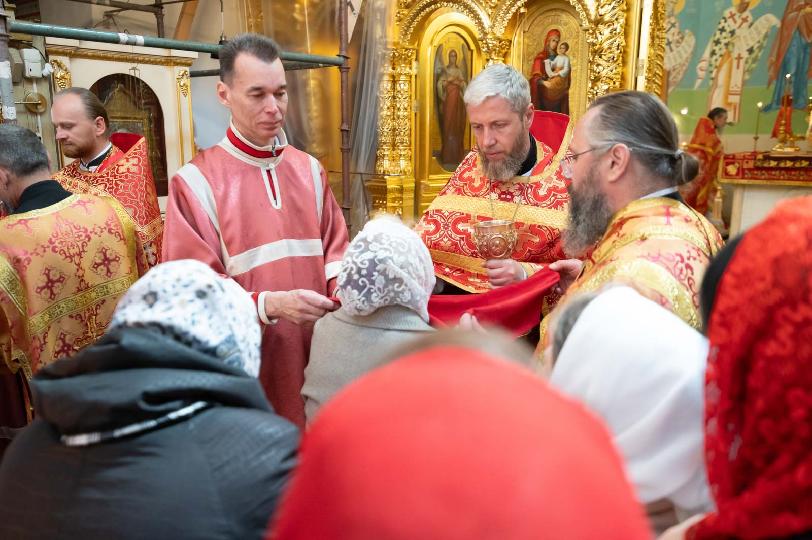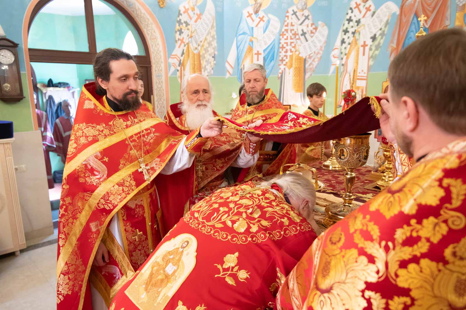 Во время литургии были вознесены сугубые прошения о мире и молитвы о всех, кто в этот день празднует тезоименитство.