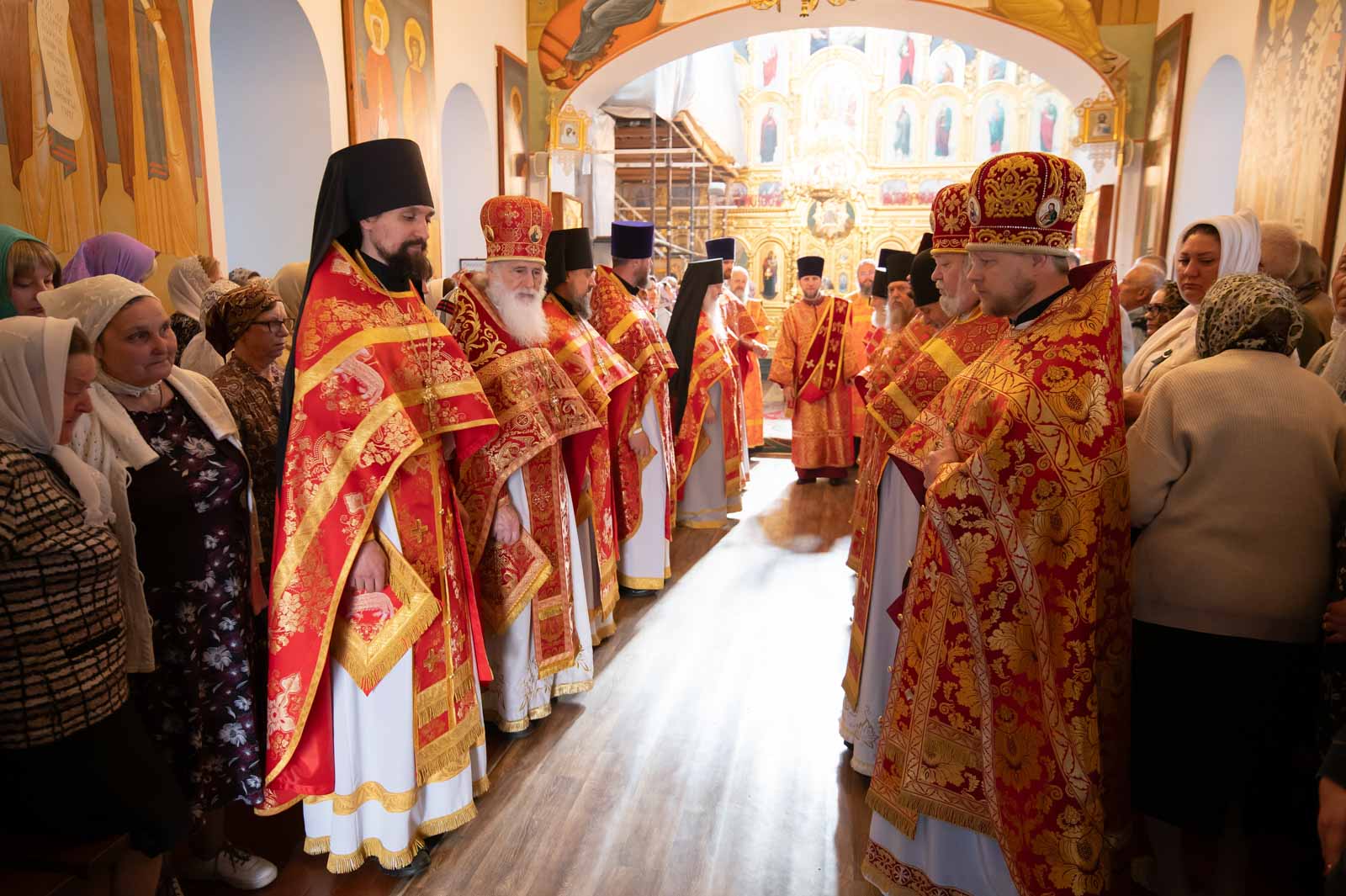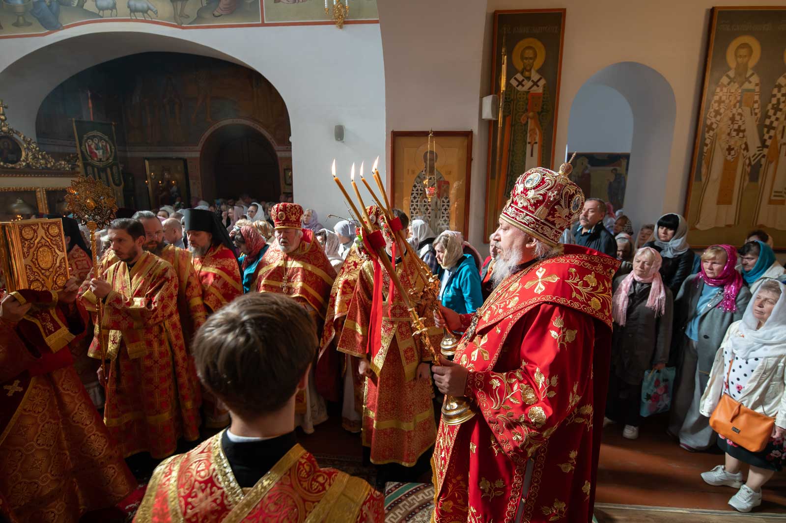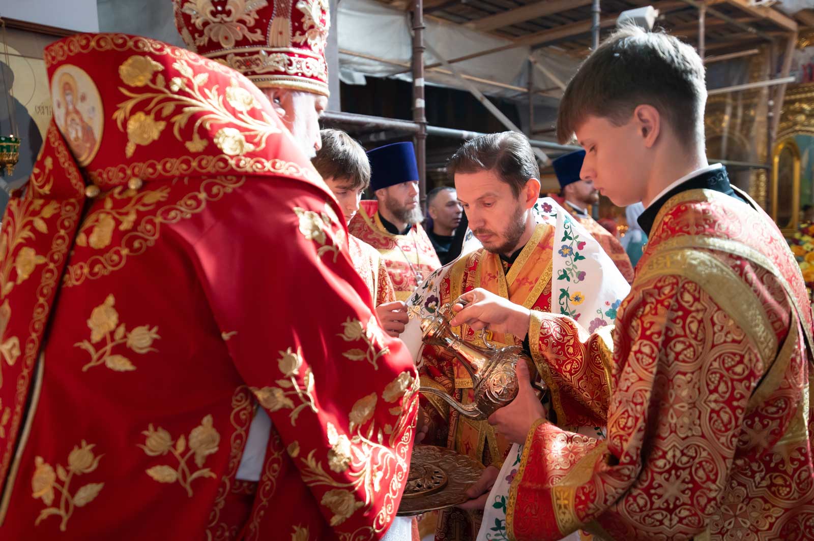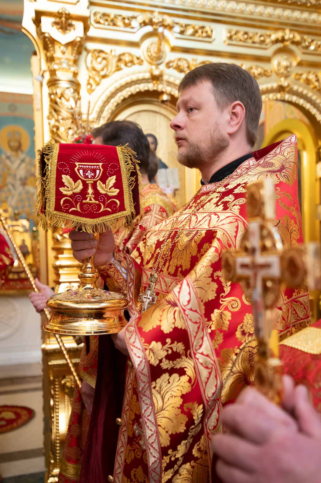 Во время литургии были вознесены сугубые прошения о мире и молитвы о всех, кто в этот день празднует тезоименитство.