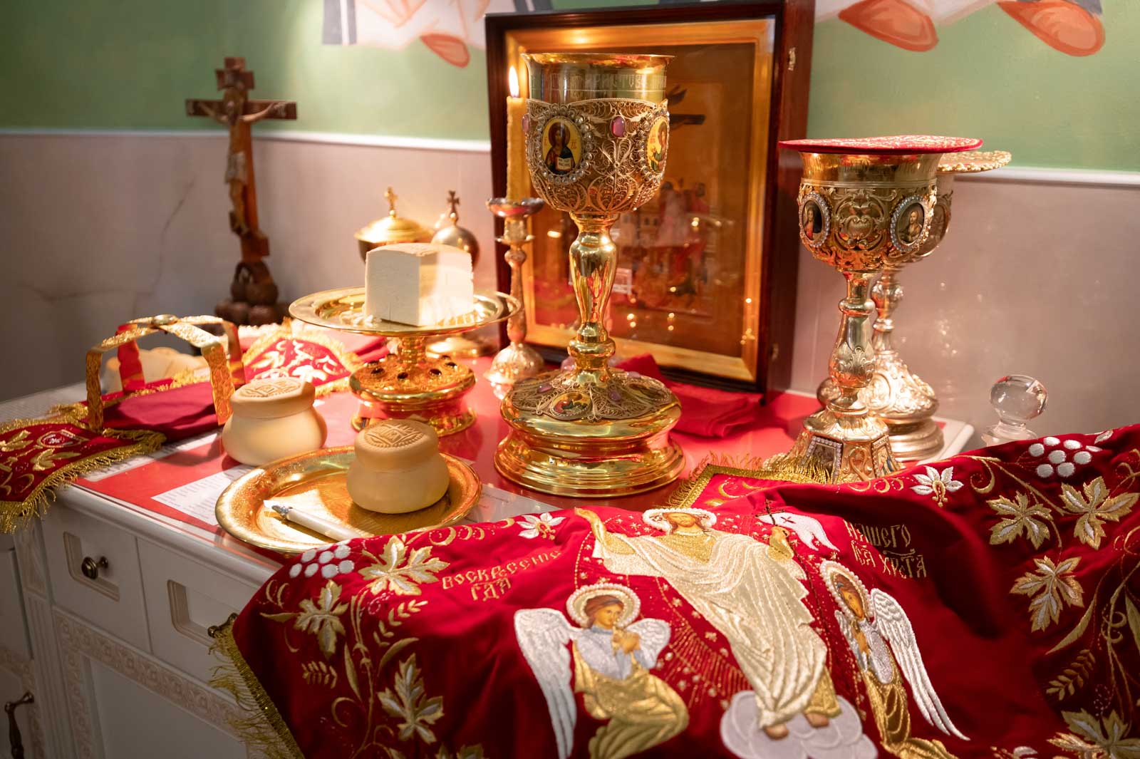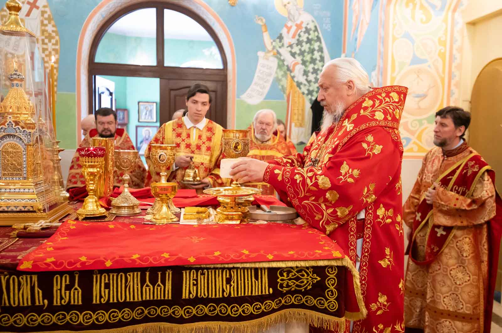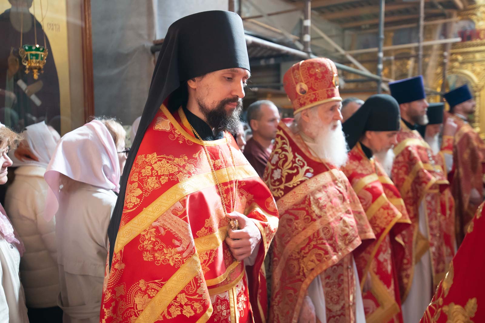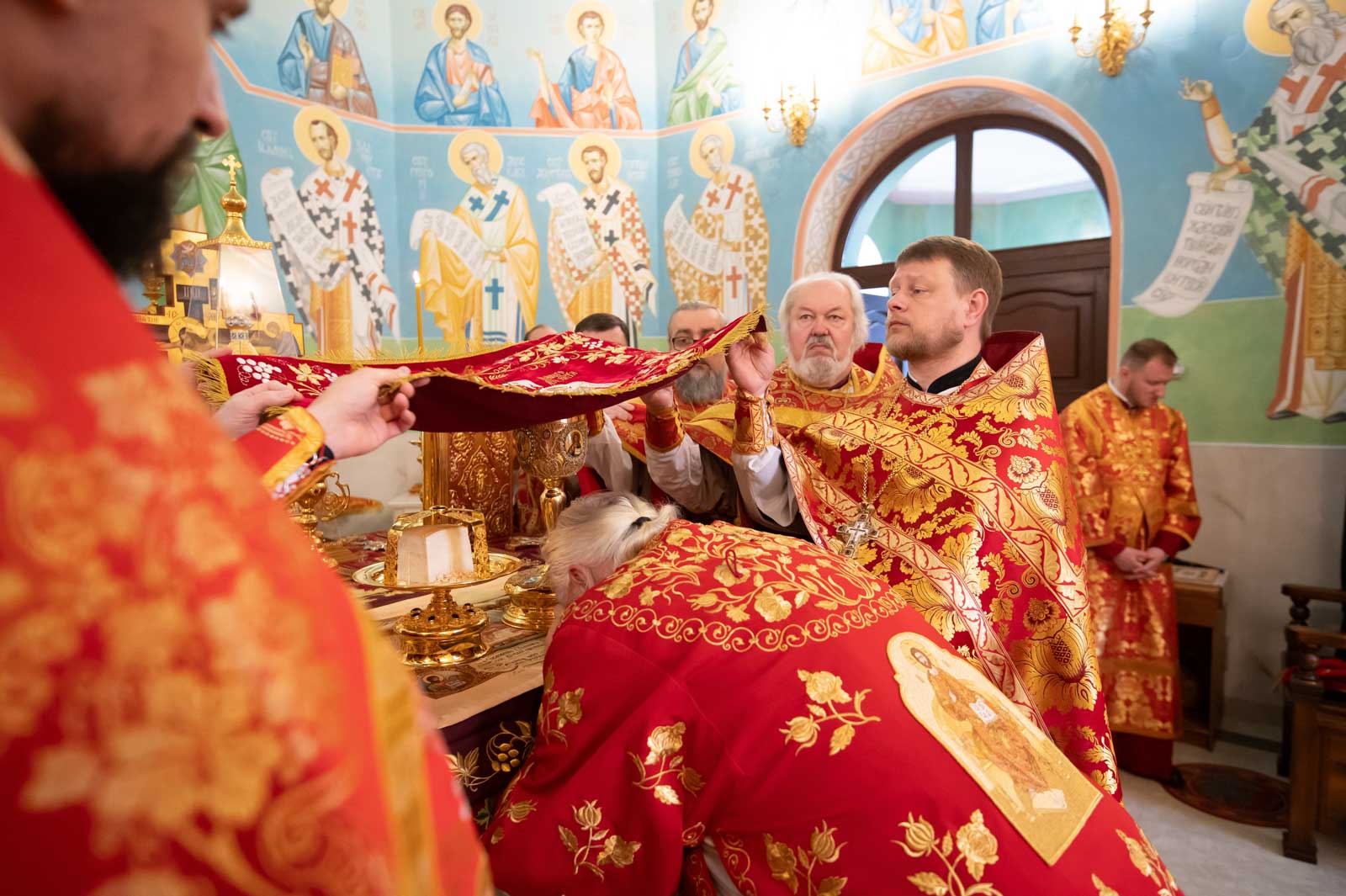 Во время литургии были вознесены сугубые прошения о мире и молитвы о всех, кто в этот день празднует тезоименитство.