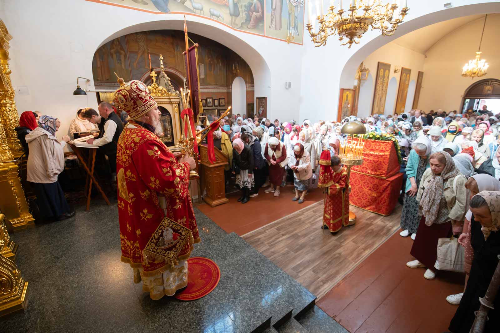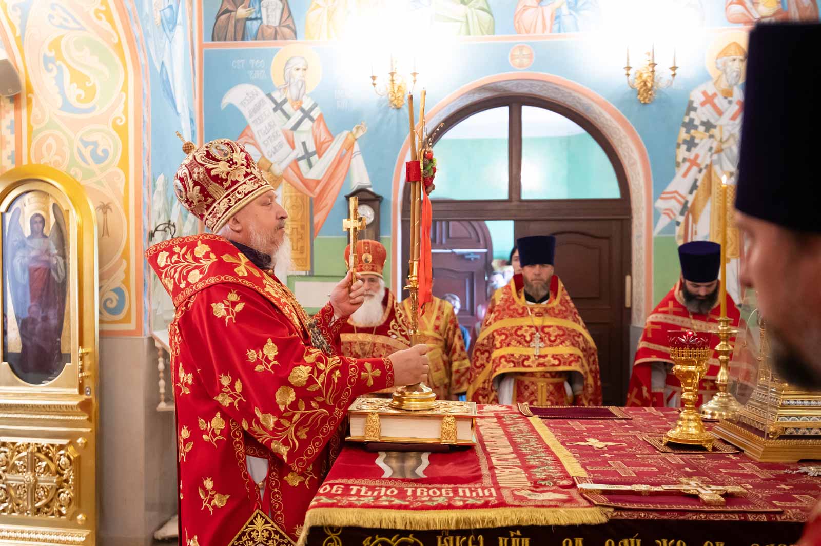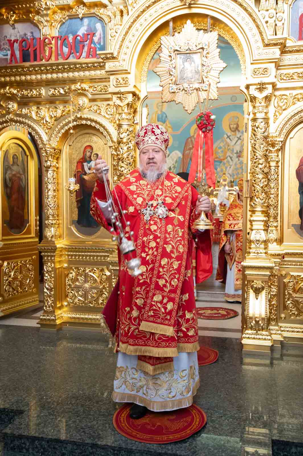 Далее архипастырь обратился к молящимся со словом назидания, в котором поблагодарил духовенство, монашествующих и мирян за совместную молитву, поздравил с престольным праздником и напомнил о важной традиции — ежегодном благотворительном сборе во всех храмах епархии в день памяти святителя Николая Чудотворца. Эти средства направляются на лечение тяжелобольных детей.