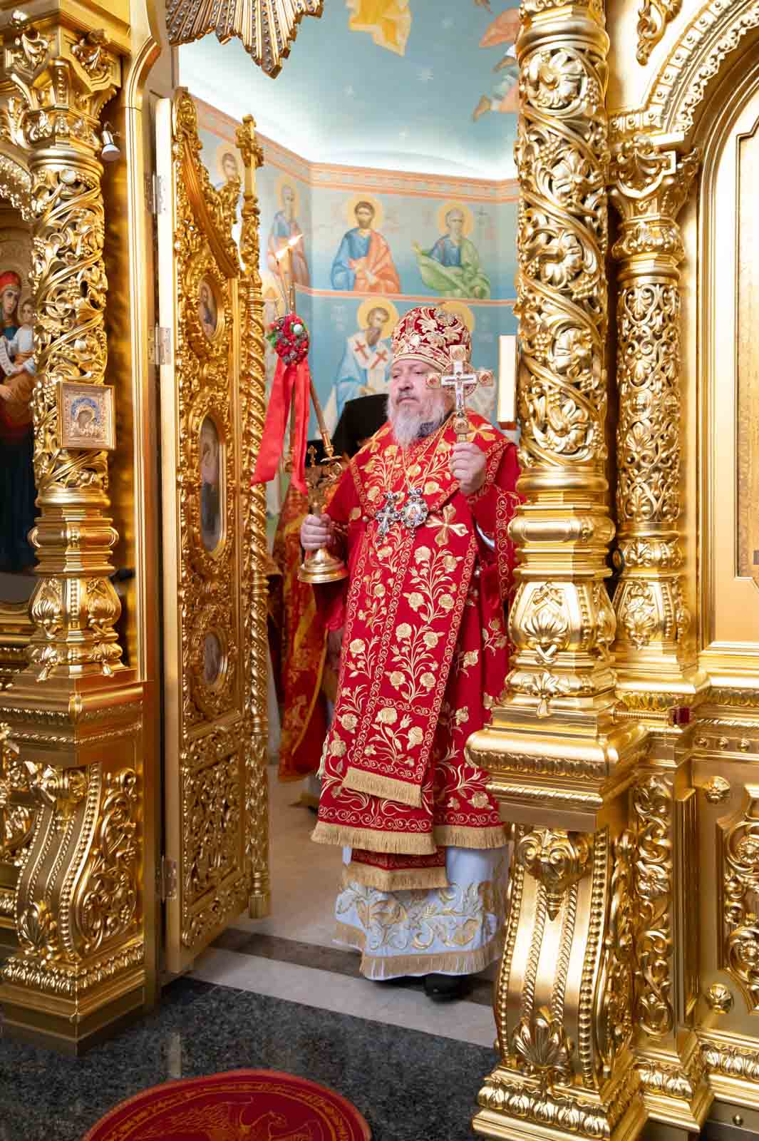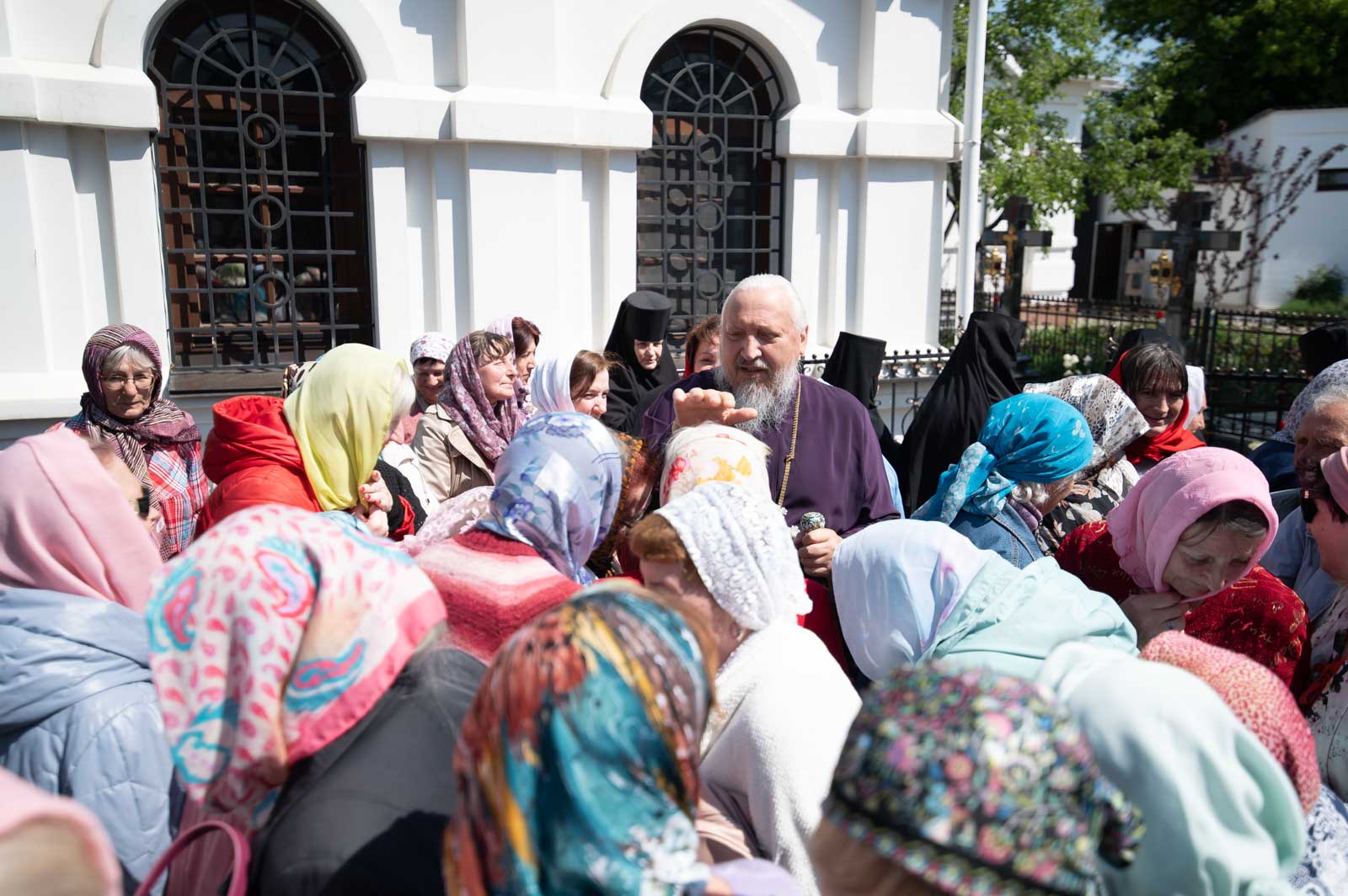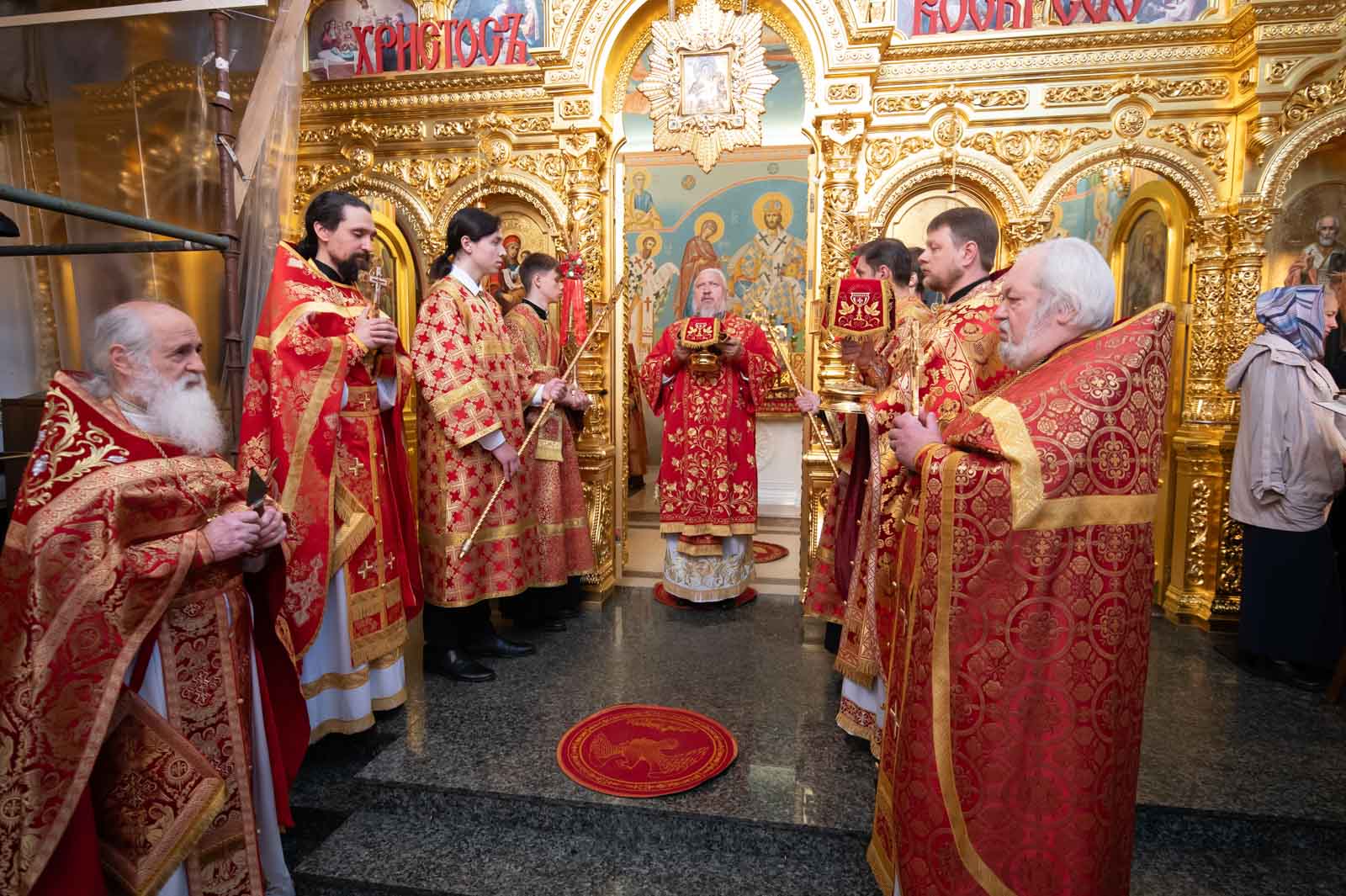 Далее архипастырь обратился к молящимся со словом назидания, в котором поблагодарил духовенство, монашествующих и мирян за совместную молитву, поздравил с престольным праздником и напомнил о важной традиции — ежегодном благотворительном сборе во всех храмах епархии в день памяти святителя Николая Чудотворца. Эти средства направляются на лечение тяжелобольных детей.