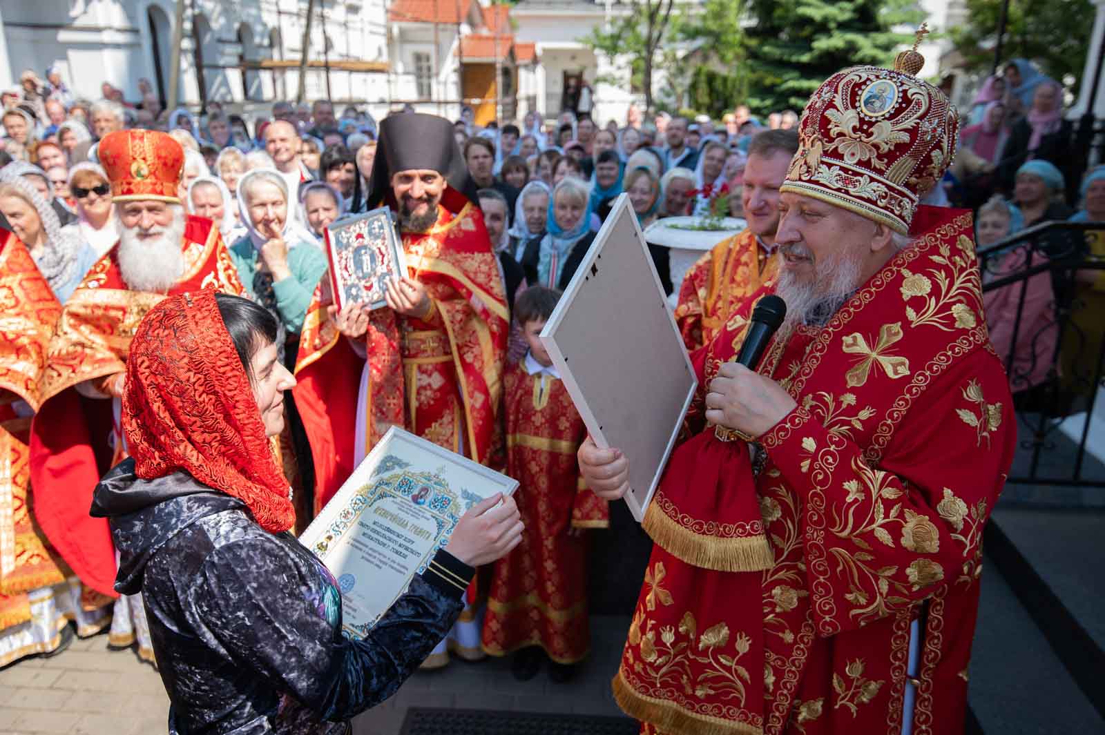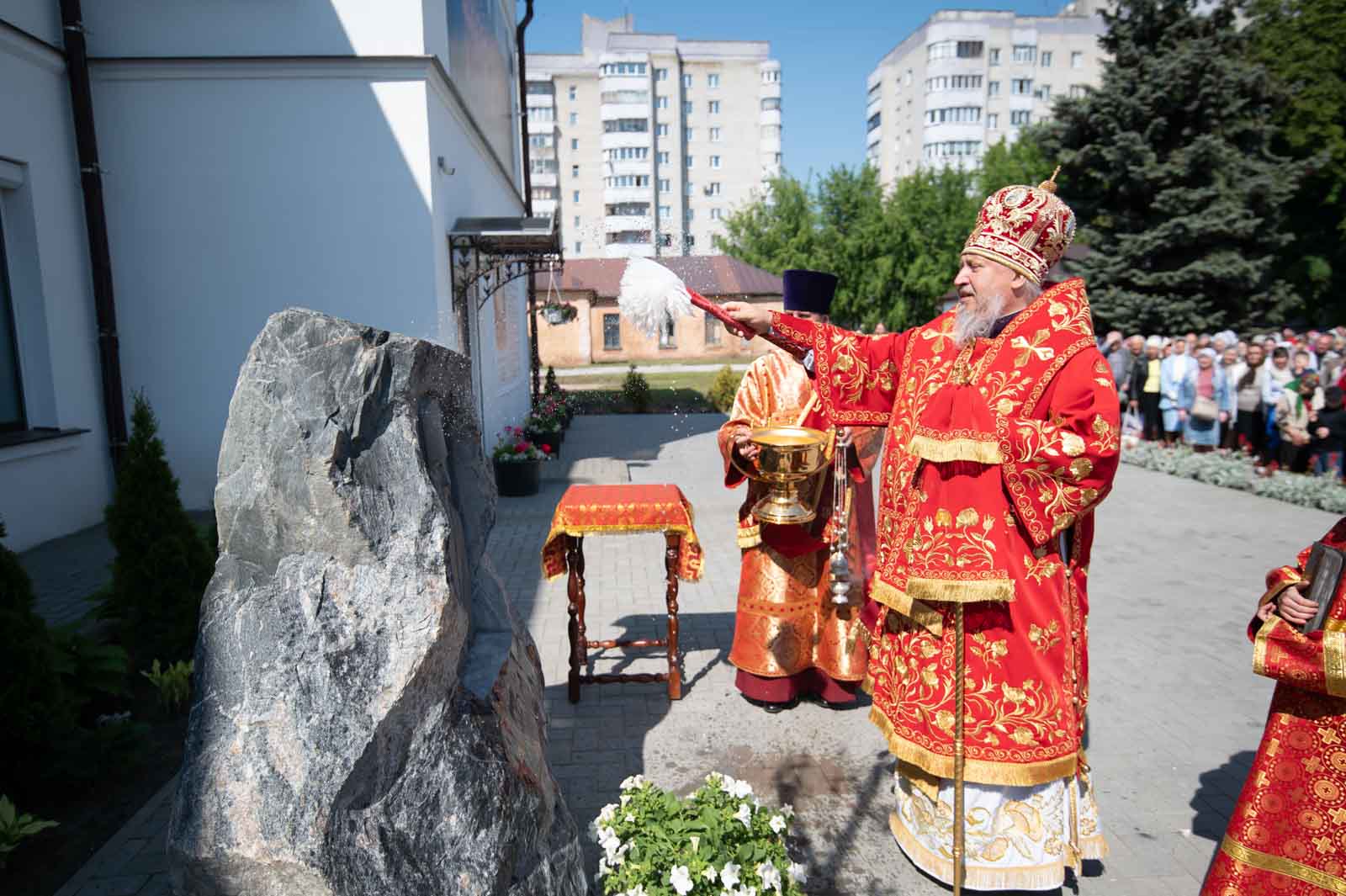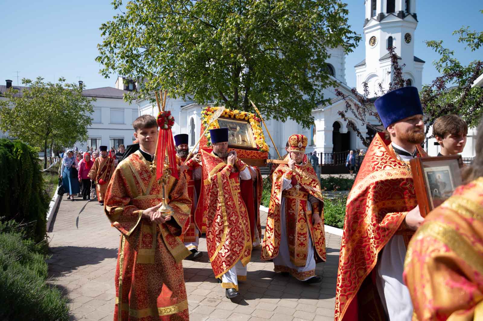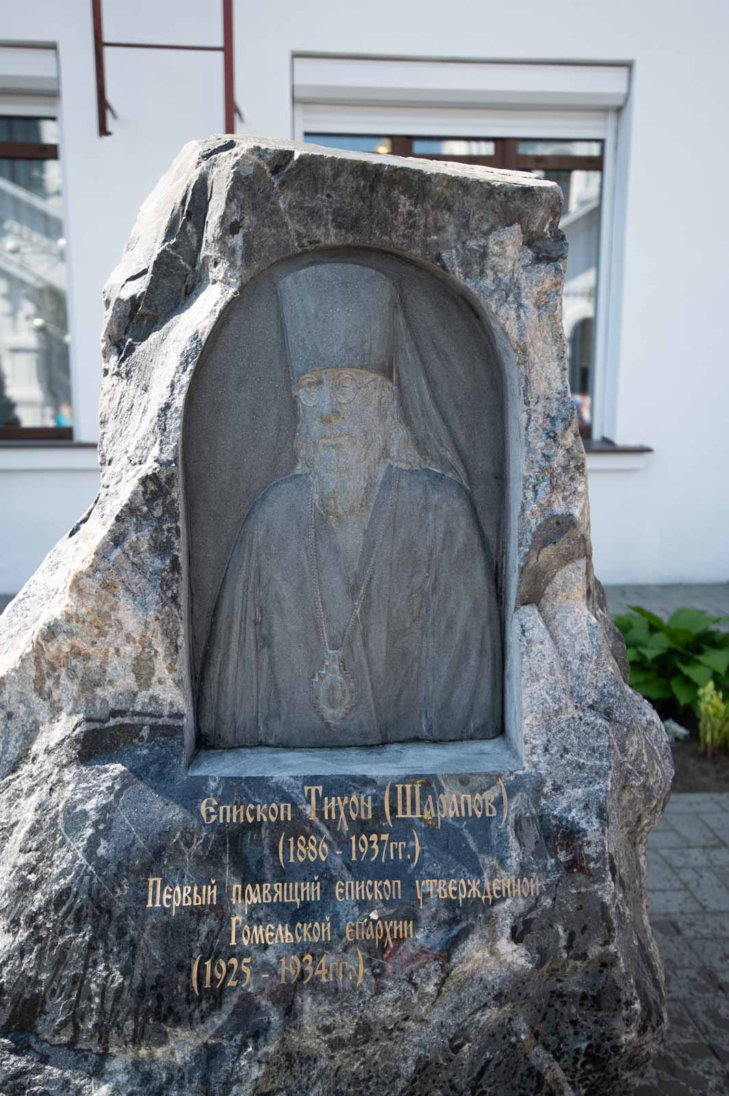 После завершения богослужения состоялся крестный ход, во время которого архипастырь освятил памятный знак в епископу Тихону (Шарапову) — первому правящему архиерею утвержденной Гомельской епархии. Этот знак установлен на территории монастыря к знаменательной дате — 100-летию со дня учреждения епархии. Судьба владыки Тихона стала отражением целой эпохи: в годы ожесточённых гонений он с твёрдостью исповедовал веру Христову, не уклоняясь от креста, возложенного на его плечи. С 1925 по 1934 год он возглавлял молодую епархию в непростое время усиленных гонений на Церковь, претерпел за веру Христову страдания: был арестован и в 1937 году расстрелян. Его имя ныне с почтением вспоминается как пример стойкости в вере, верности Церкви и духовного мужества. Памятный знак установлен на территории монастыря как свидетельство живой памяти и молитвенного почитания.
