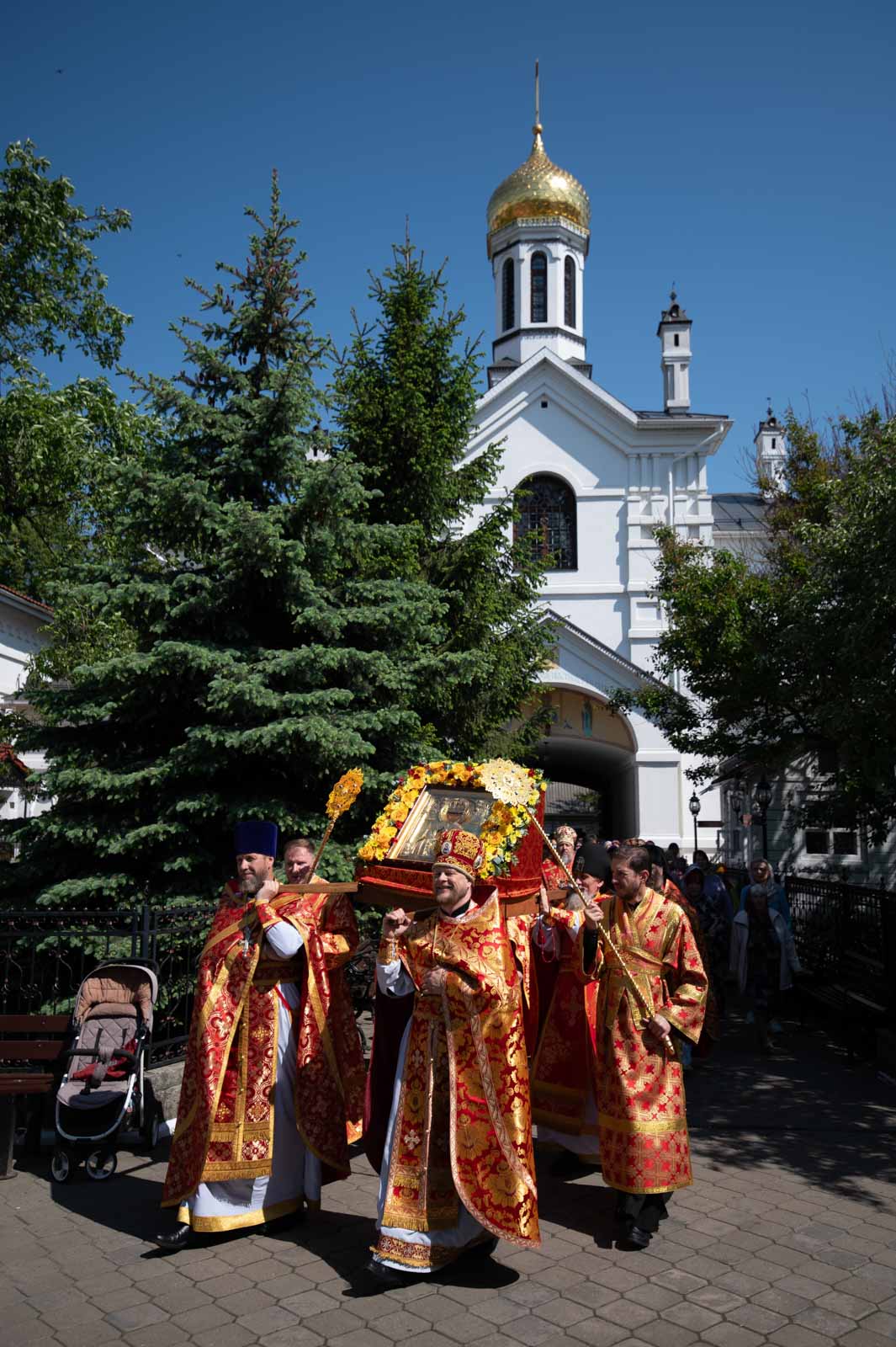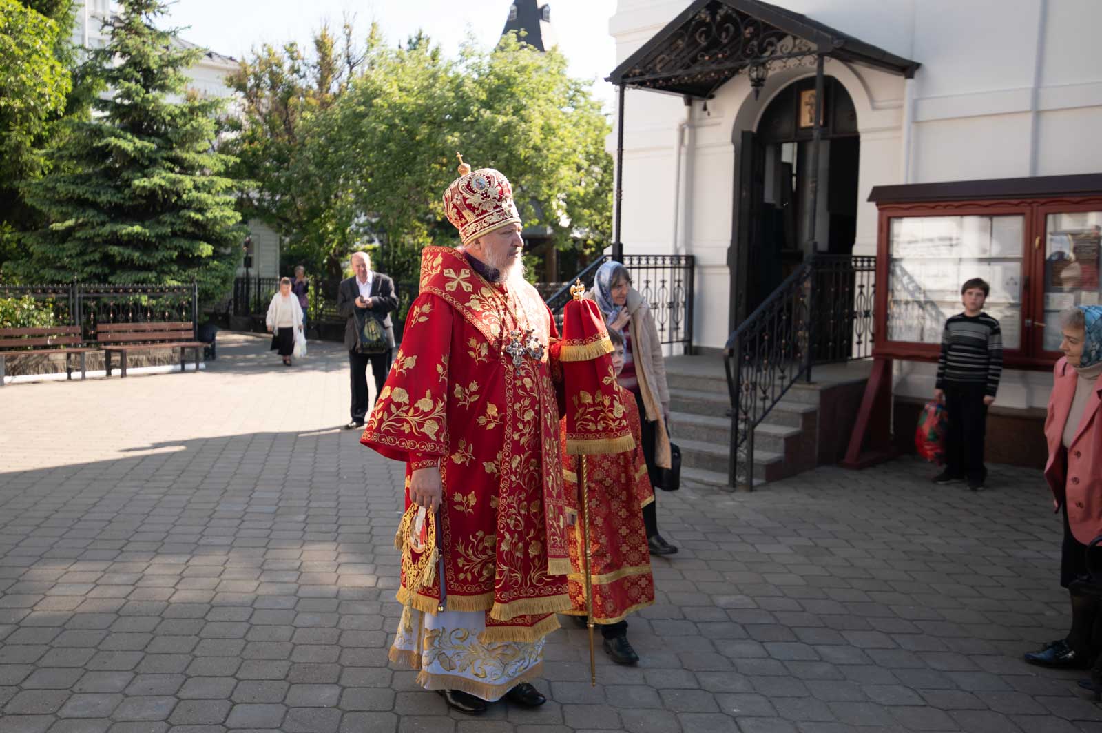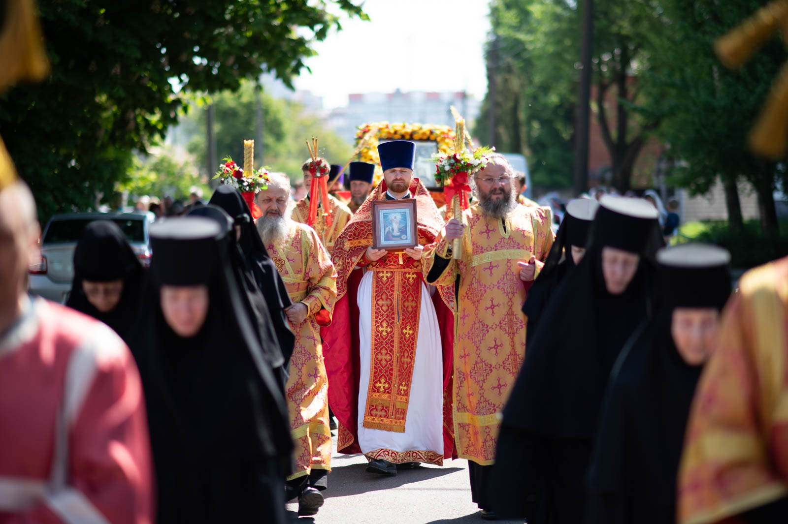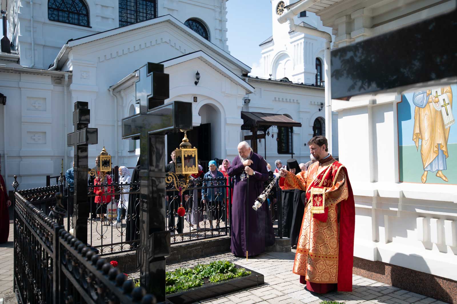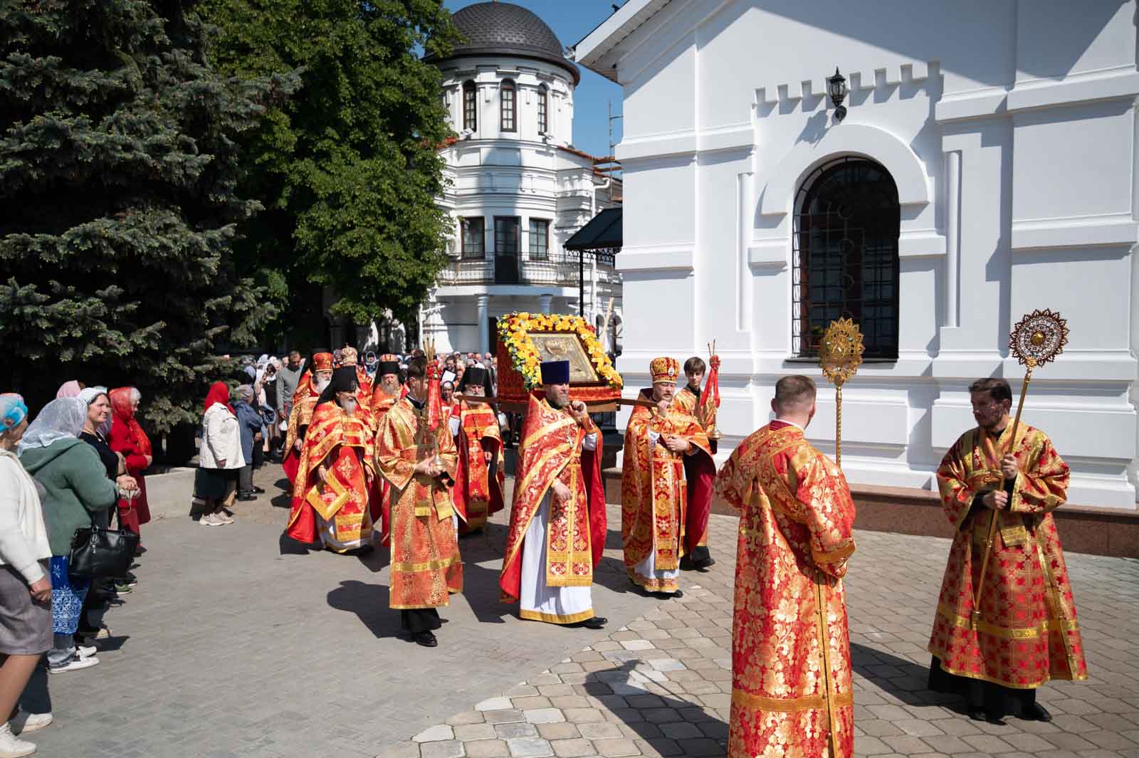 После завершения богослужения состоялся крестный ход, во время которого архипастырь освятил памятный знак в епископу Тихону (Шарапову) — первому правящему архиерею утвержденной Гомельской епархии. Этот знак установлен на территории монастыря к знаменательной дате — 100-летию со дня учреждения епархии. Судьба владыки Тихона стала отражением целой эпохи: в годы ожесточённых гонений он с твёрдостью исповедовал веру Христову, не уклоняясь от креста, возложенного на его плечи. С 1925 по 1934 год он возглавлял молодую епархию в непростое время усиленных гонений на Церковь, претерпел за веру Христову страдания: был арестован и в 1937 году расстрелян. Его имя ныне с почтением вспоминается как пример стойкости в вере, верности Церкви и духовного мужества. Памятный знак установлен на территории монастыря как свидетельство живой памяти и молитвенного почитания.