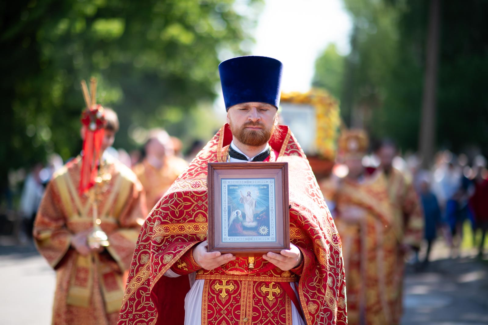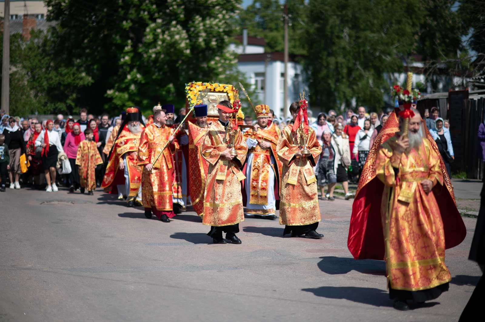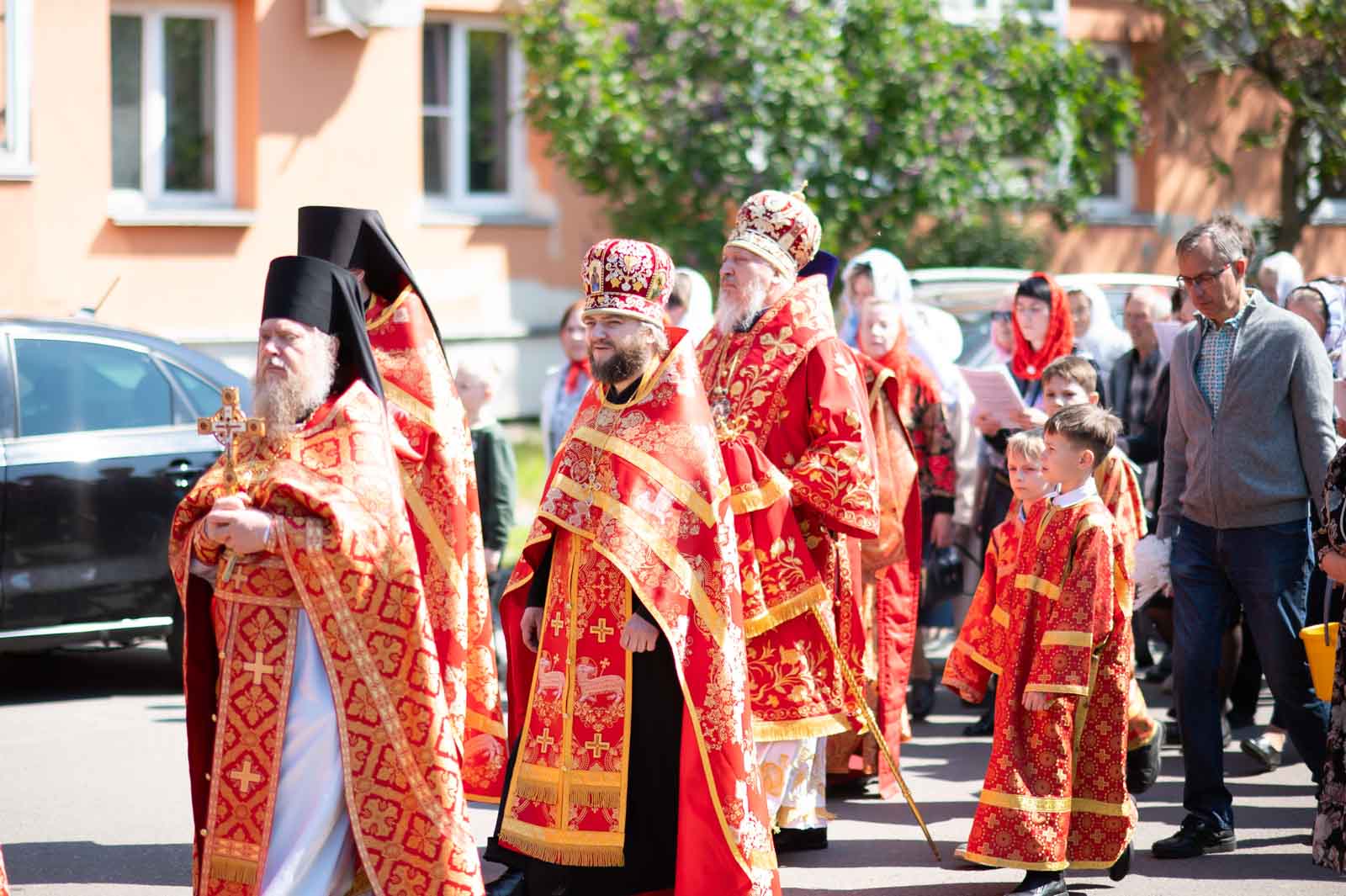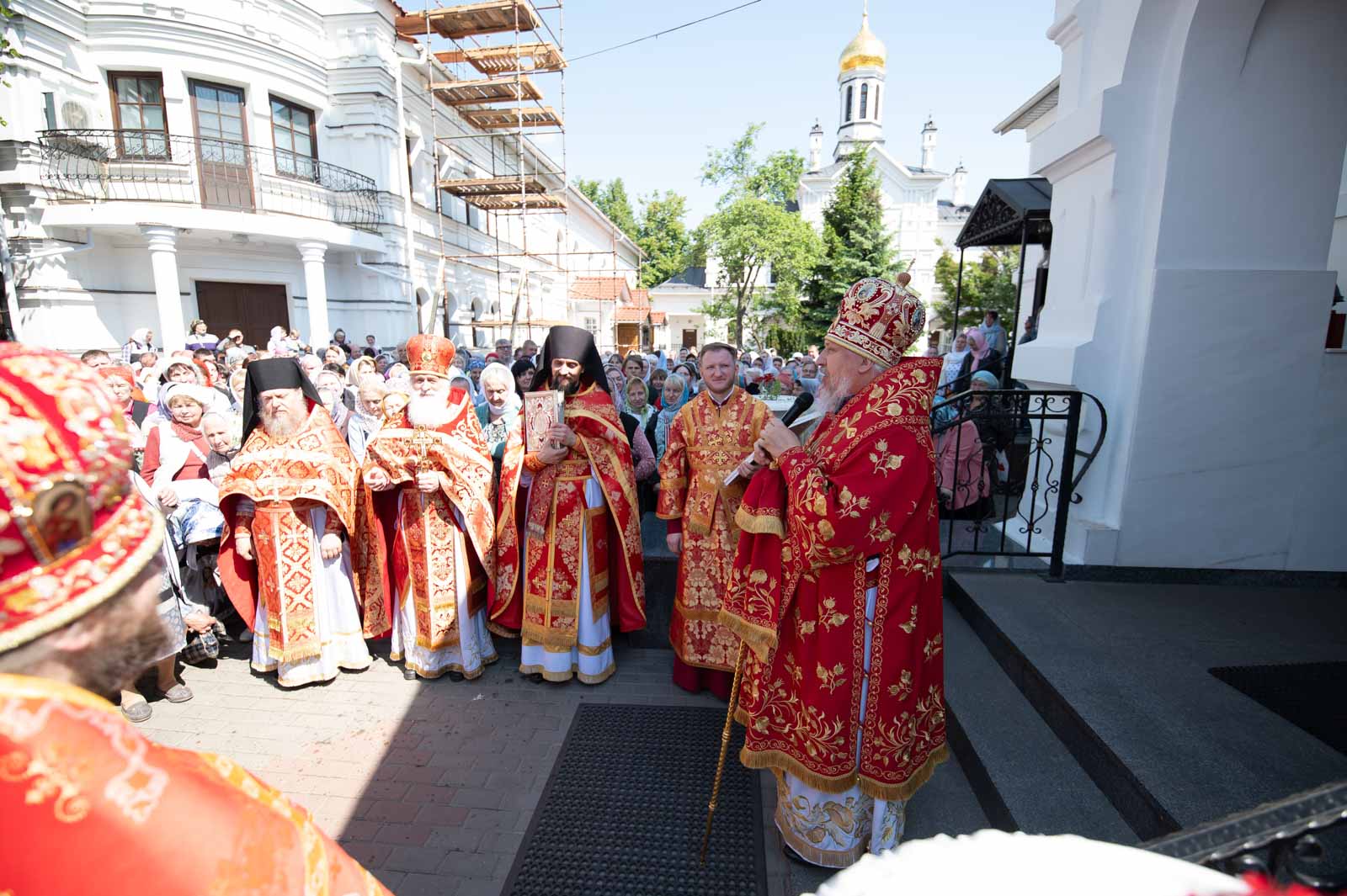 После завершения богослужения состоялся крестный ход, во время которого архипастырь освятил памятный знак в епископу Тихону (Шарапову) — первому правящему архиерею утвержденной Гомельской епархии. Этот знак установлен на территории монастыря к знаменательной дате — 100-летию со дня учреждения епархии. Судьба владыки Тихона стала отражением целой эпохи: в годы ожесточённых гонений он с твёрдостью исповедовал веру Христову, не уклоняясь от креста, возложенного на его плечи. С 1925 по 1934 год он возглавлял молодую епархию в непростое время усиленных гонений на Церковь, претерпел за веру Христову страдания: был арестован и в 1937 году расстрелян. Его имя ныне с почтением вспоминается как пример стойкости в вере, верности Церкви и духовного мужества. Памятный знак установлен на территории монастыря как свидетельство живой памяти и молитвенного почитания.