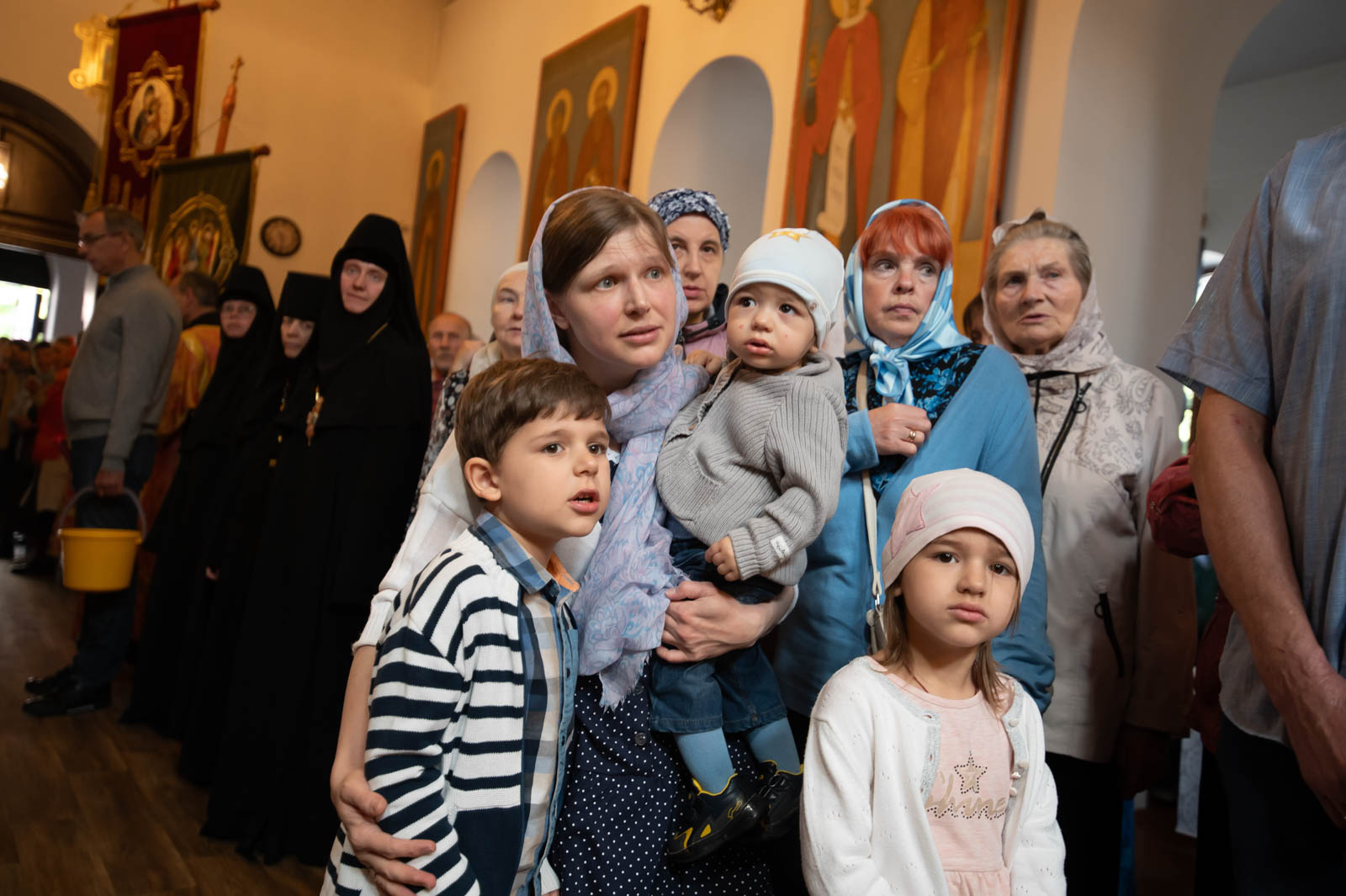 За литургией молились игуменья Вера (Афонькина) с сестрами Тихвинского женского монастыря г. Гомеля, игумения Иоанна (Ярец) с сестрами Успенского женского монастыря в д. Казимирово, игумения Архелая (Новикова) с сестрами Иоанно-Кормянского женского монастыря в аг.Корма.