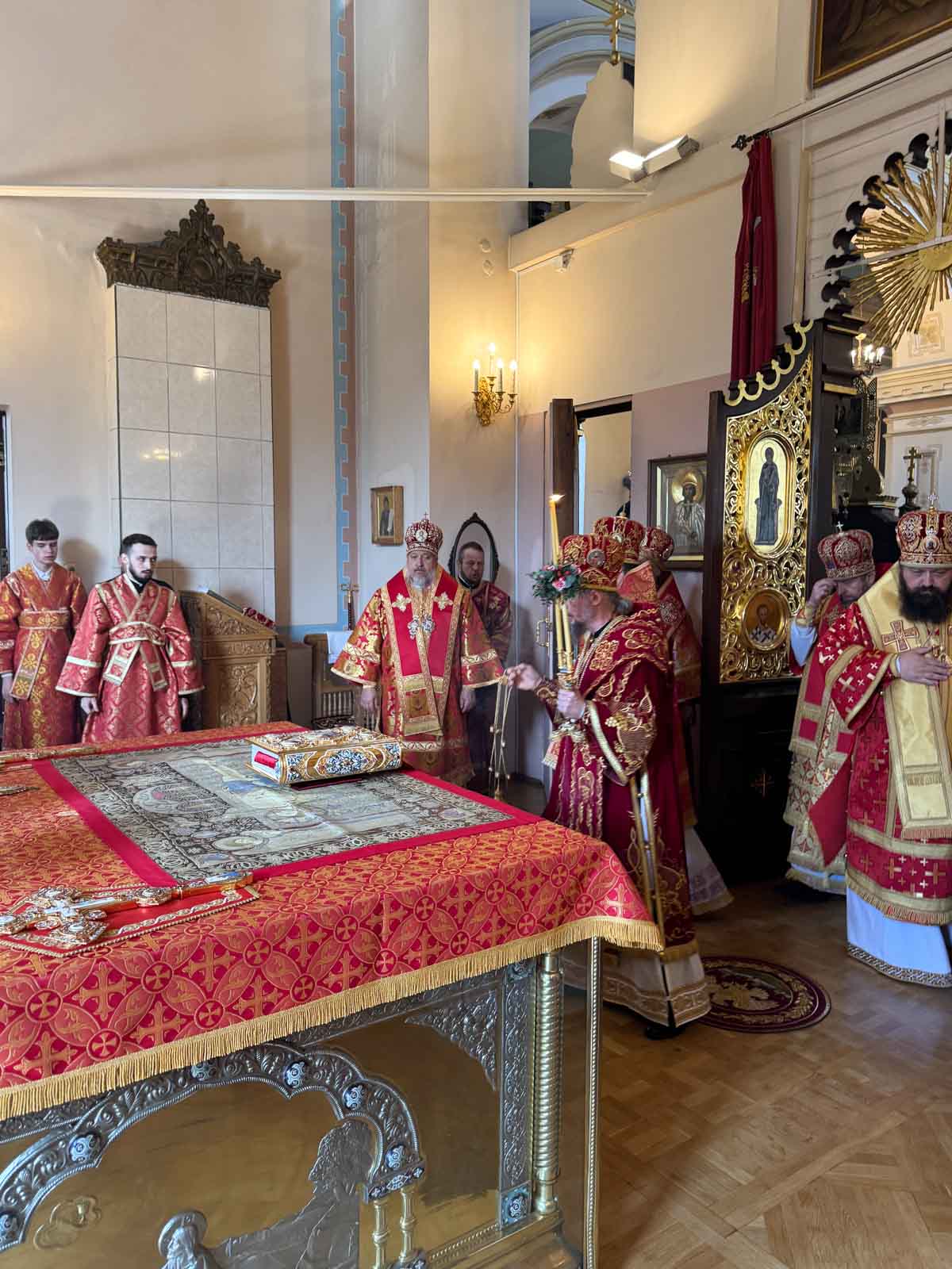Предстоятель Белорусской Православной Церкви совершил в соборе Божественную литургию в сослужении архиепископа Новогрудского и Слонимского Гурия; архиепископа Брестского и Кобринского Иоанна; архиепископа Гомельского и Жлобинского Стефана; архиепископа Гродненского и Волковысского Антония; епископа Бобруйского и Быховского Серафима; епископа Туровского и Мозырского Леонида; епископа Лидского и Сморгонского Порфирия; епископа Борисовского и Марьиногорского Амвросия; епископа Пинского и Лунинецкого Георгия; епископа Несвижского Авксентия, викария Патриаршего Экзарха.