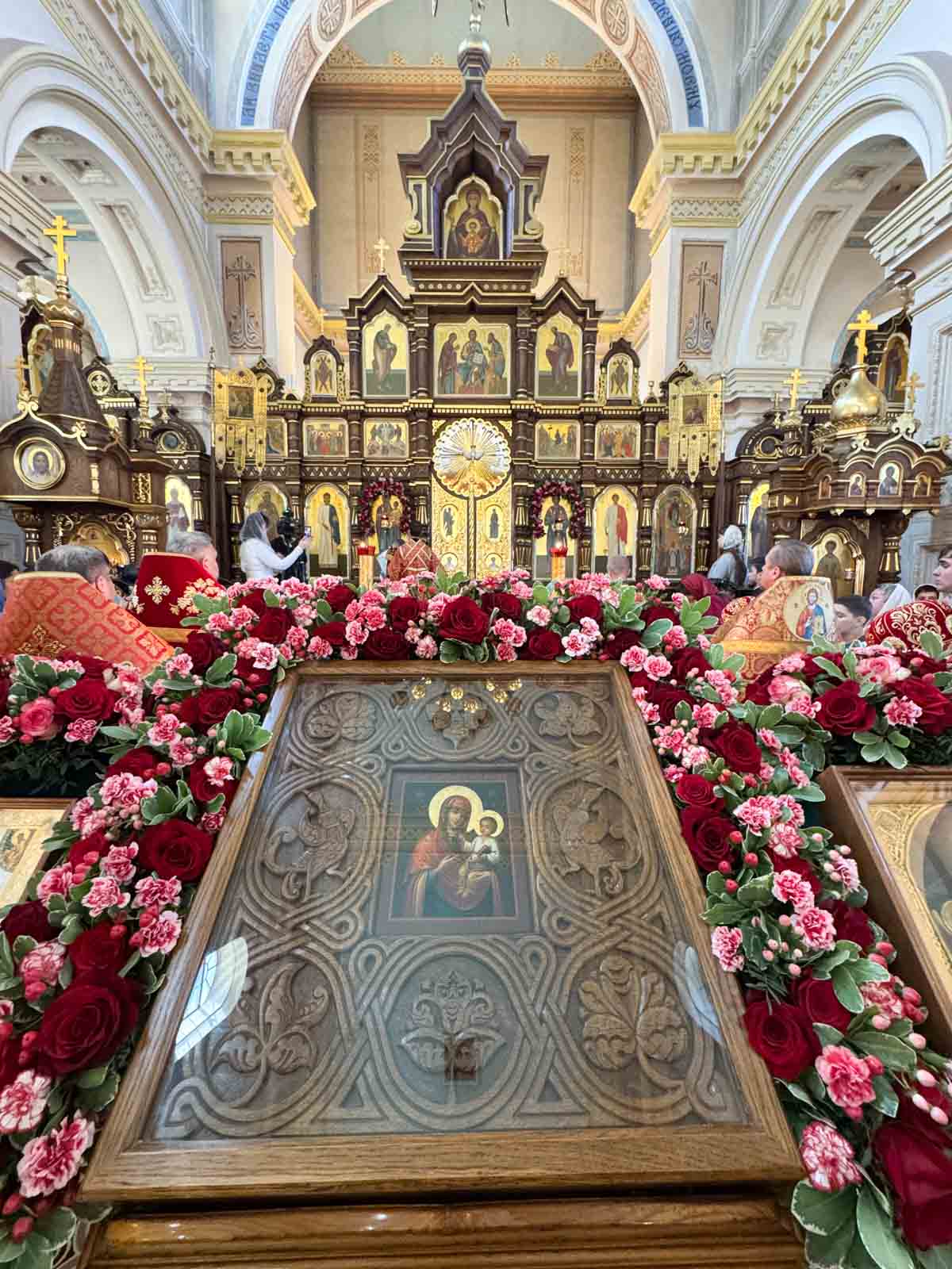 По отпусте Божественной литургии Патриарший Экзарх совершил освящение киота со списком Коложской иконы Божией Матери в серебряном окладе, восстановленном ювелиром Олегом Ермоловичем по дореволюционным иллюстрациям. Киот будет пребывать в храме благоверного великого князя Александра Невского, который сейчас строится в гродненском микрорайоне Вишневец. Стилистически храм представляет собой реплику Коложской церкви, развивая традицию гродненской архитектурной школы XII века.
