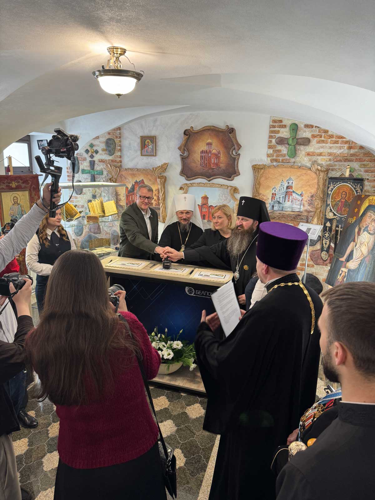 В дар Гродненской епархии Митрополит Вениамин преподнес факсимильное издание Библии Матфея Десятого 1507 года, изданное при поддержке Постоянного комитета Союзного государства Беларуси и России.