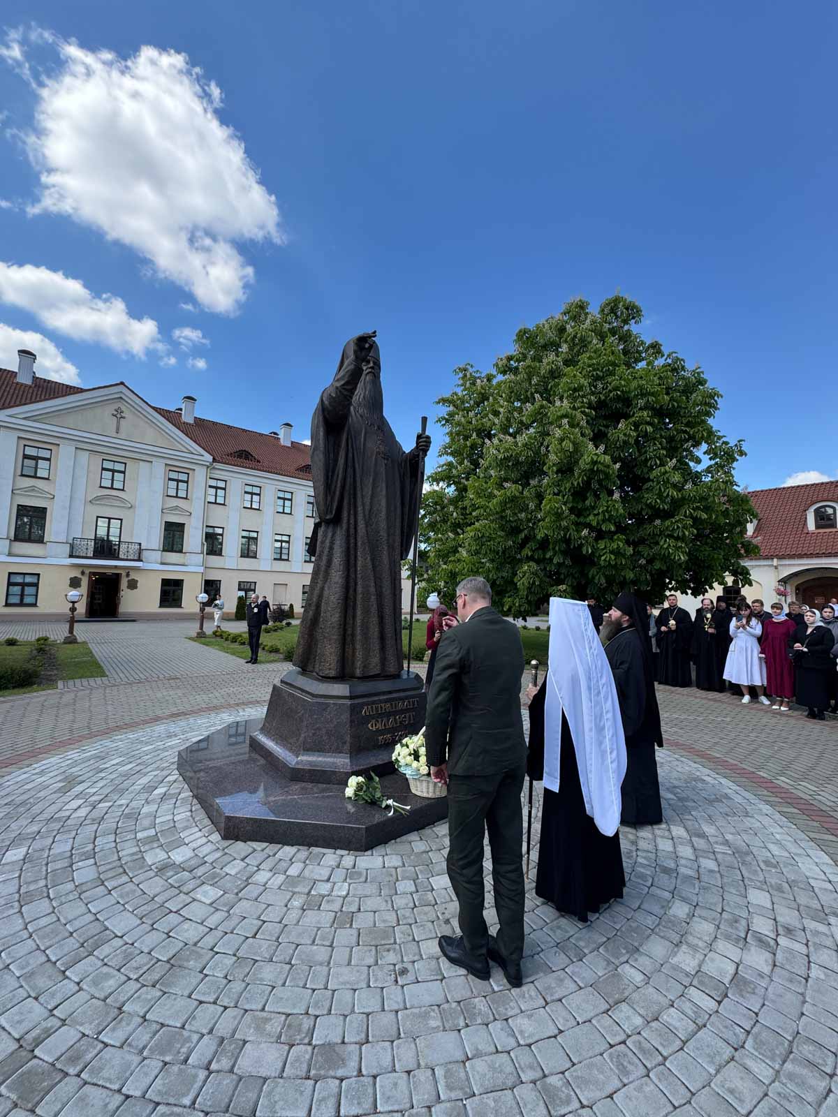 В продолжение торжеств его участники возложили цветы к памятнику Митрополита Филарета. Далее состоялись открытие церковно-исторического кабинета Гродненской епархии и гашение конверта «125 лет Гродненской епархии».