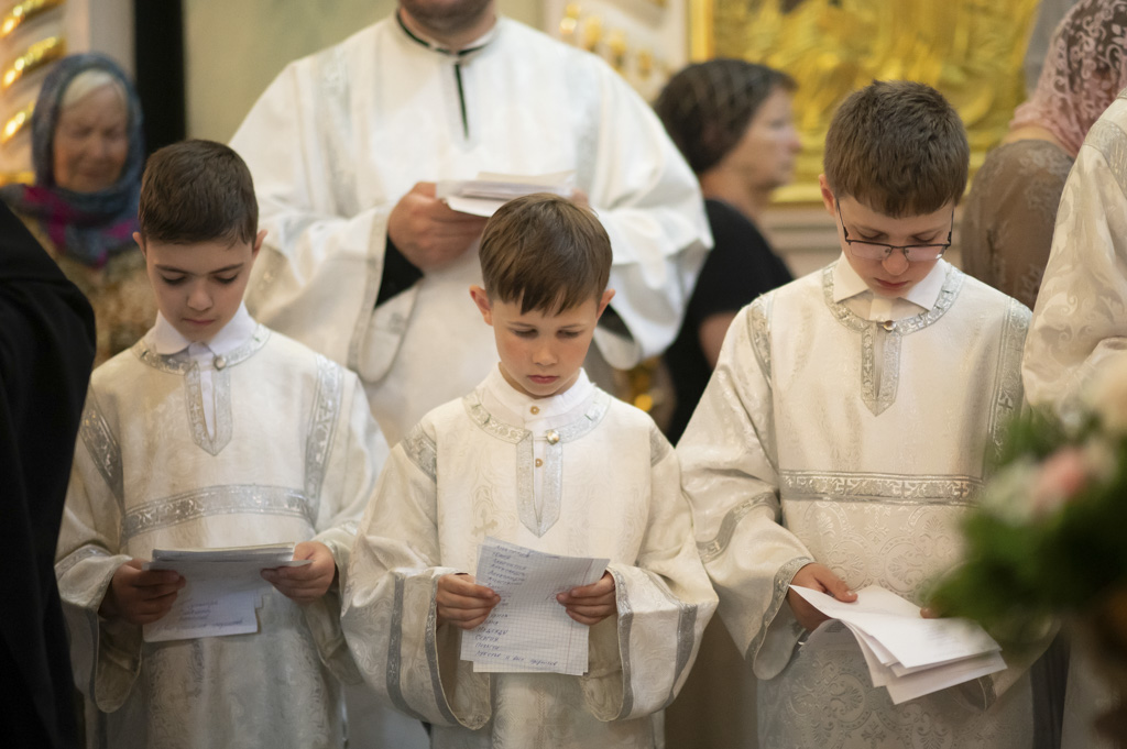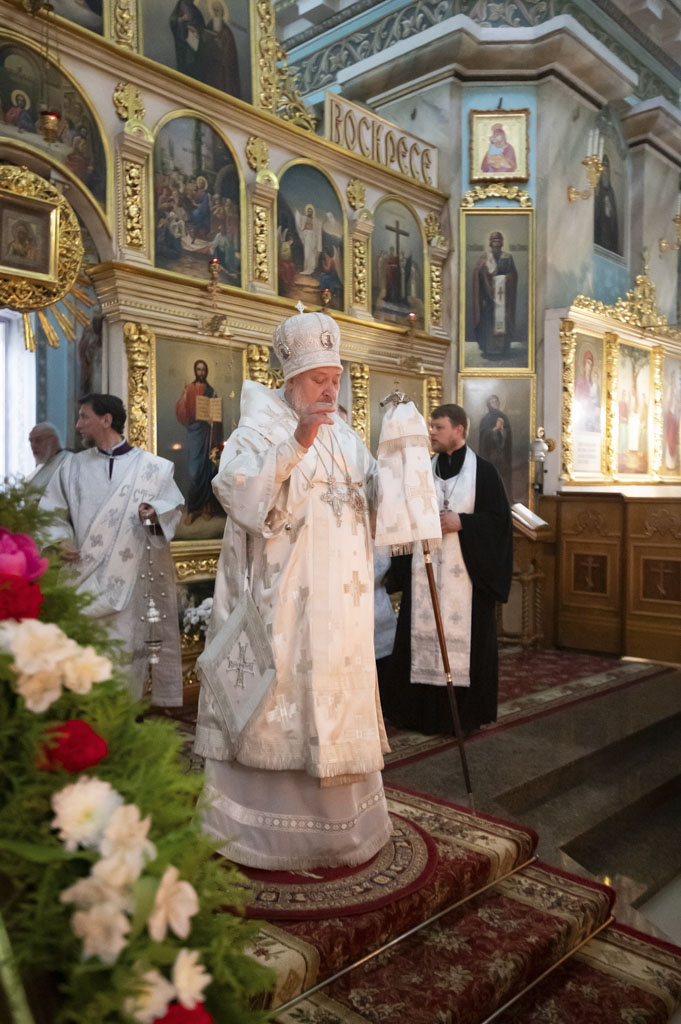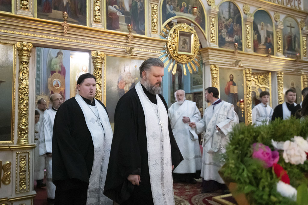 Высокопреосвященнейшему сослужили: секретарь Гомельской епархии протоиерей Георгий Алампиев и духовенство собора.