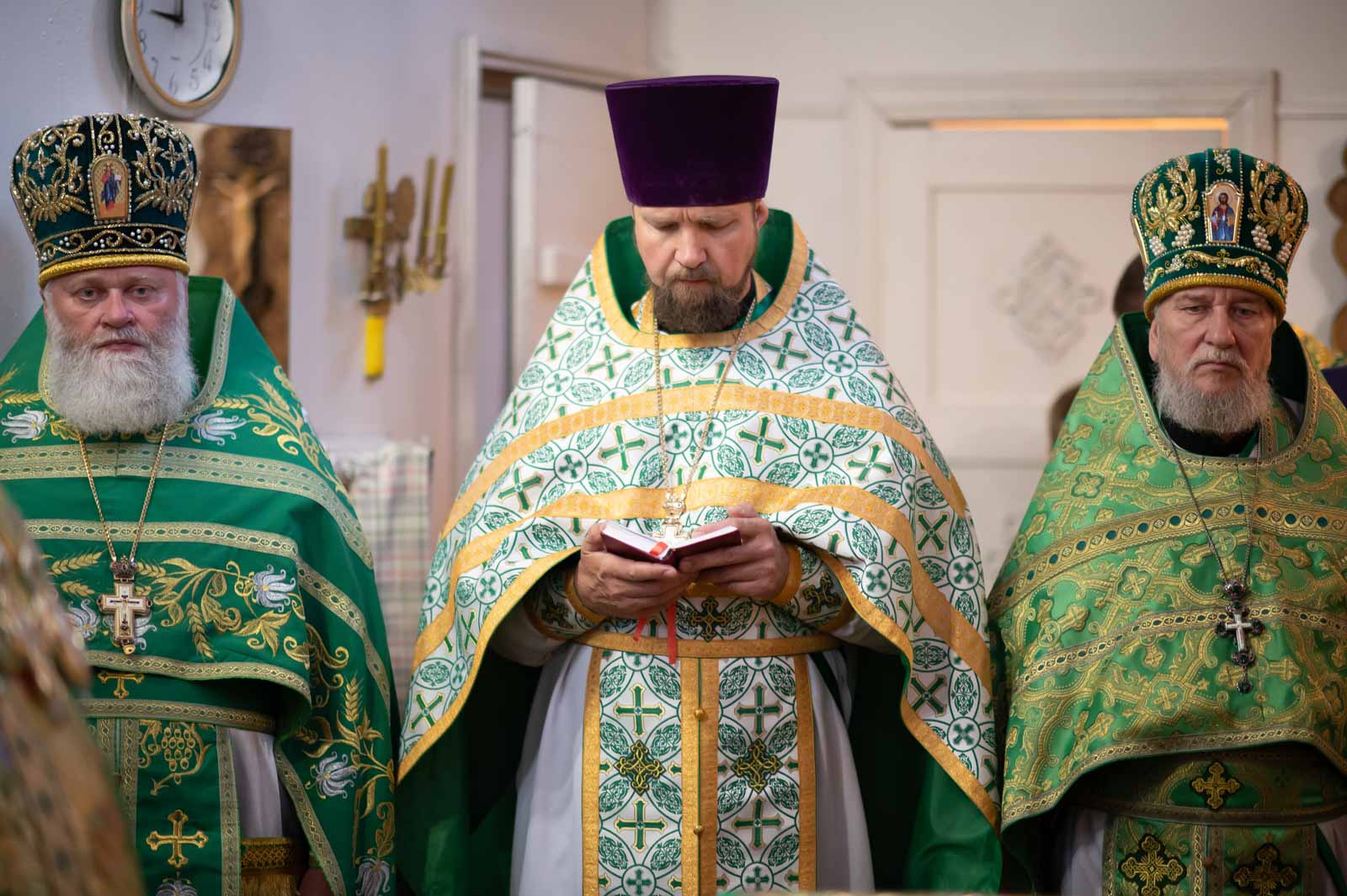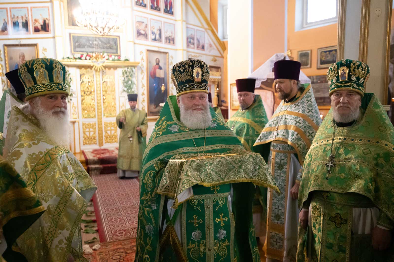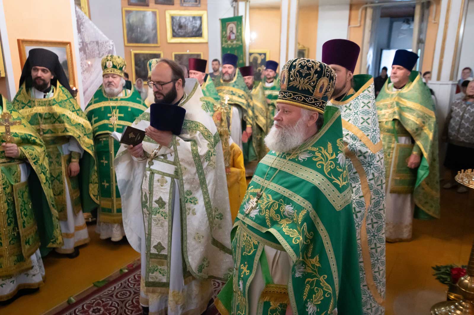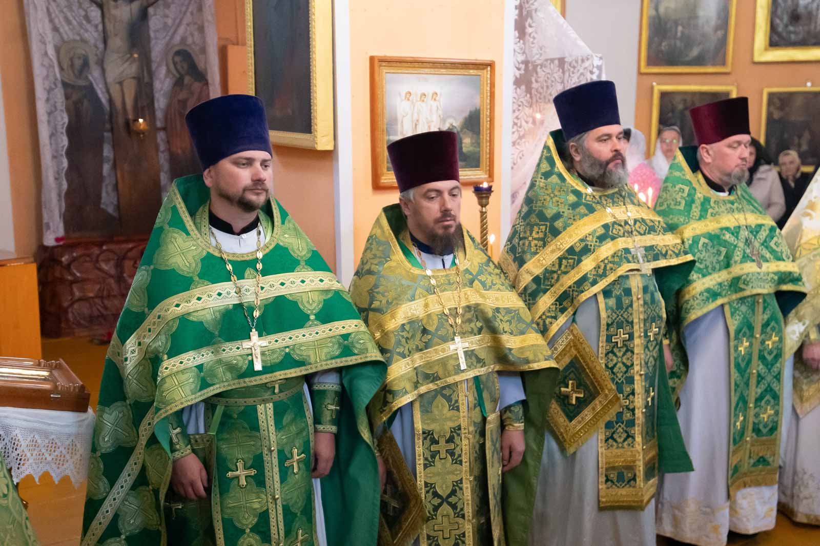 Высокопреосвященнейшему сослужили: секретарь Гомельской епархии протоиерей Георгий Алампиев; благочинный Речицкого округа протоиерей Алексей Пешко; благочинный Чечерского округа, настоятель прихода протоиерей Геннадий Хаткевич; председатель отдела по архитектуре и строительству протоиерей Георгий Тур; благочинный монастырей Гомельской епархии игумен Феодорит (Золотарев); благочинный Лоевского округа иерей Дмитрий Чварков; настоятель прихода храма Преображения Господня в г.Ветке протоиерей Михаил Борисенок; председатель комиссии по канонизации святых протоиерей Александр Лопушанский; настоятель прихода храма святого великомученика Георгия Победоносца в г.Гомеле протоиерей Дмитрий Гончаров; председатель миссионерского отдела иерей Павел Перещук; настоятель прихода храма Святого Архангела Михаила д. Хальч протоиерей Андрей Шихалов; настоятель прихода храма Покрова Пресвятой Богородицы протоиерей Александр Хамылевский; настоятель прихода храма святителя Василия Великого в аг.Залесье иерей Василий Ковальчук; настоятель прихода храма святителя Николая Чудотворца, аг. Полесье иерей Николай Куцаков; настоятель прихода храма Святителя Николая Чудотворца в д. Староселье иерей Максим Борисенок; настоятель прихода храма святителя Николая Чудотворца аг. Даниловичи протоиерей Андрей Булацкий; настоятель прихода храма Святителя Николая Чудотворца д. Железники иерей Роман Кицун; протодиакон Роман Куява.