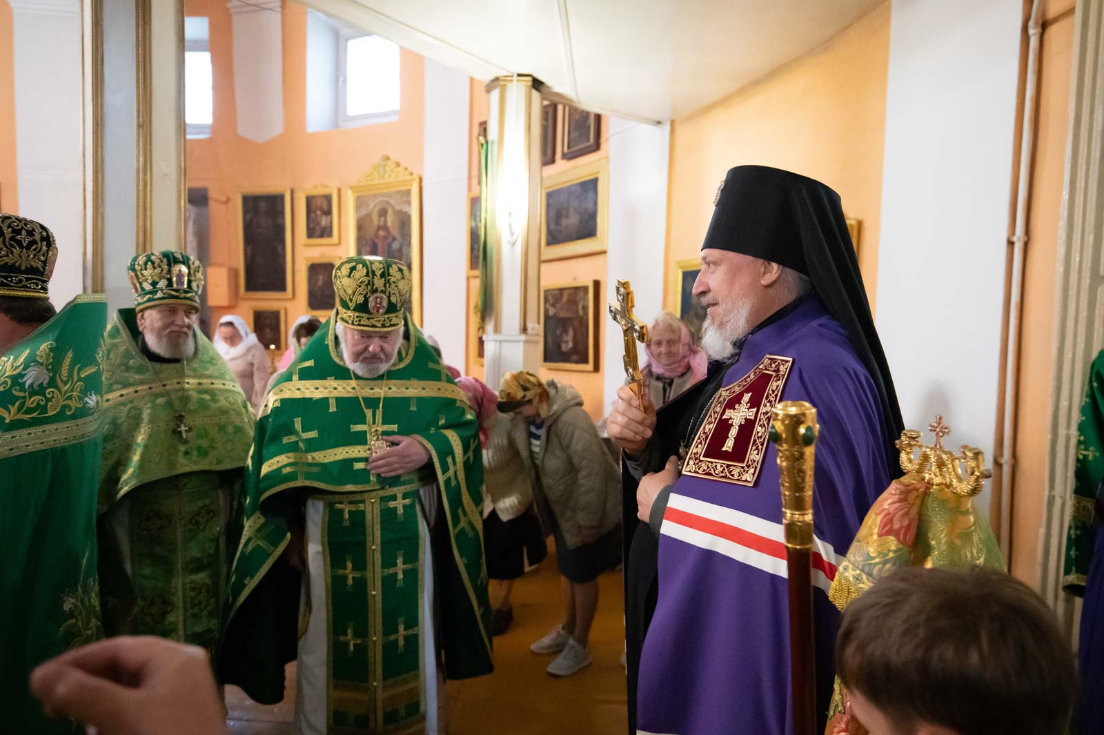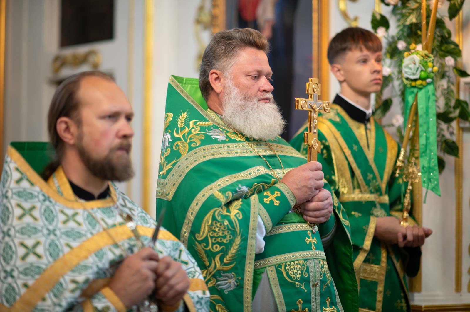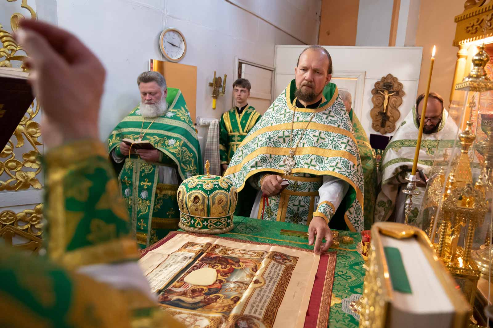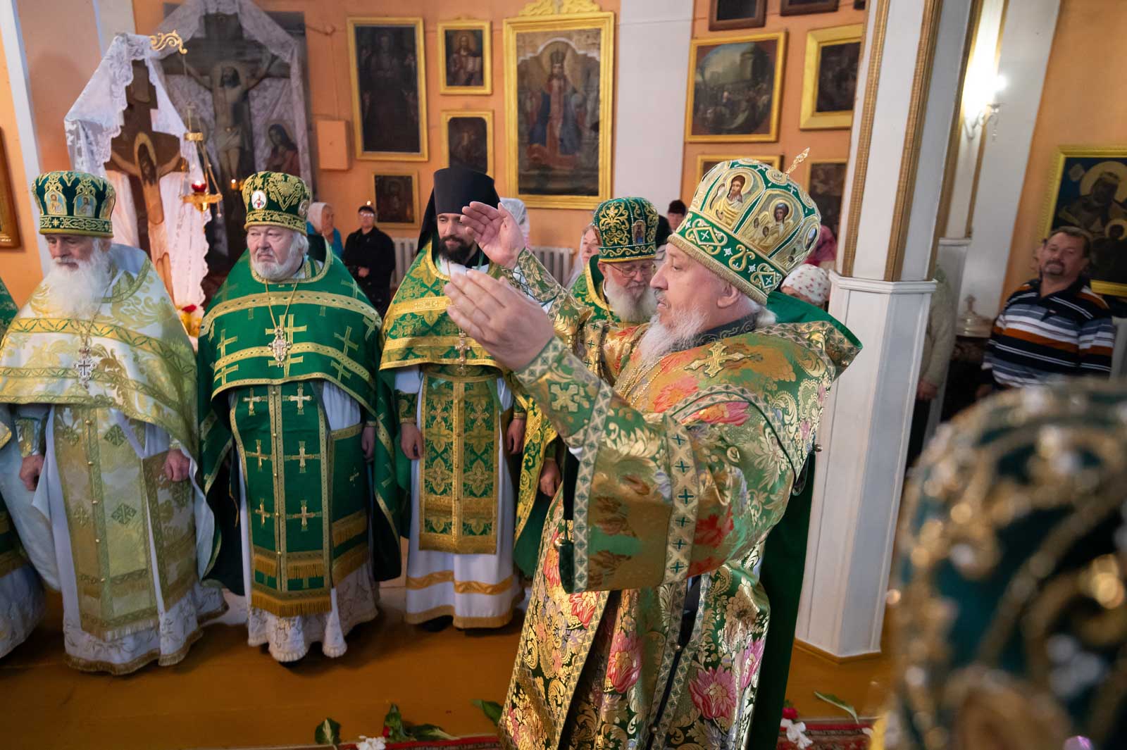 Высокопреосвященнейшему сослужили: секретарь Гомельской епархии протоиерей Георгий Алампиев; благочинный Речицкого округа протоиерей Алексей Пешко; благочинный Чечерского округа, настоятель прихода протоиерей Геннадий Хаткевич; председатель отдела по архитектуре и строительству протоиерей Георгий Тур; благочинный монастырей Гомельской епархии игумен Феодорит (Золотарев); благочинный Лоевского округа иерей Дмитрий Чварков; настоятель прихода храма Преображения Господня в г.Ветке протоиерей Михаил Борисенок; председатель комиссии по канонизации святых протоиерей Александр Лопушанский; настоятель прихода храма святого великомученика Георгия Победоносца в г.Гомеле протоиерей Дмитрий Гончаров; председатель миссионерского отдела иерей Павел Перещук; настоятель прихода храма Святого Архангела Михаила д. Хальч протоиерей Андрей Шихалов; настоятель прихода храма Покрова Пресвятой Богородицы протоиерей Александр Хамылевский; настоятель прихода храма святителя Василия Великого в аг.Залесье иерей Василий Ковальчук; настоятель прихода храма святителя Николая Чудотворца, аг. Полесье иерей Николай Куцаков; настоятель прихода храма Святителя Николая Чудотворца в д. Староселье иерей Максим Борисенок; настоятель прихода храма святителя Николая Чудотворца аг. Даниловичи протоиерей Андрей Булацкий; настоятель прихода храма Святителя Николая Чудотворца д. Железники иерей Роман Кицун; протодиакон Роман Куява.