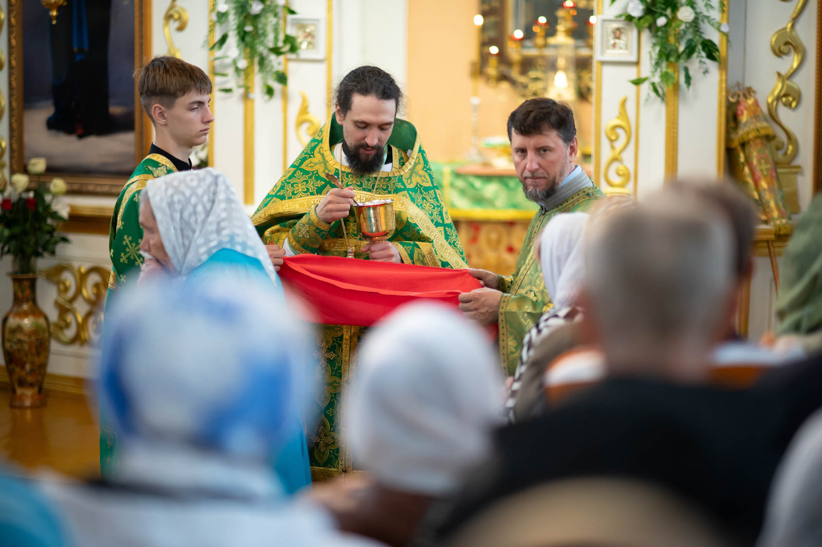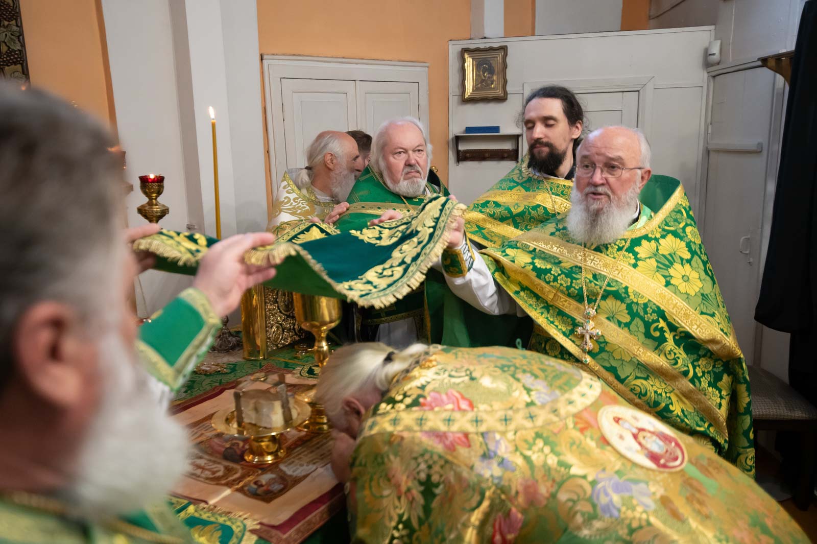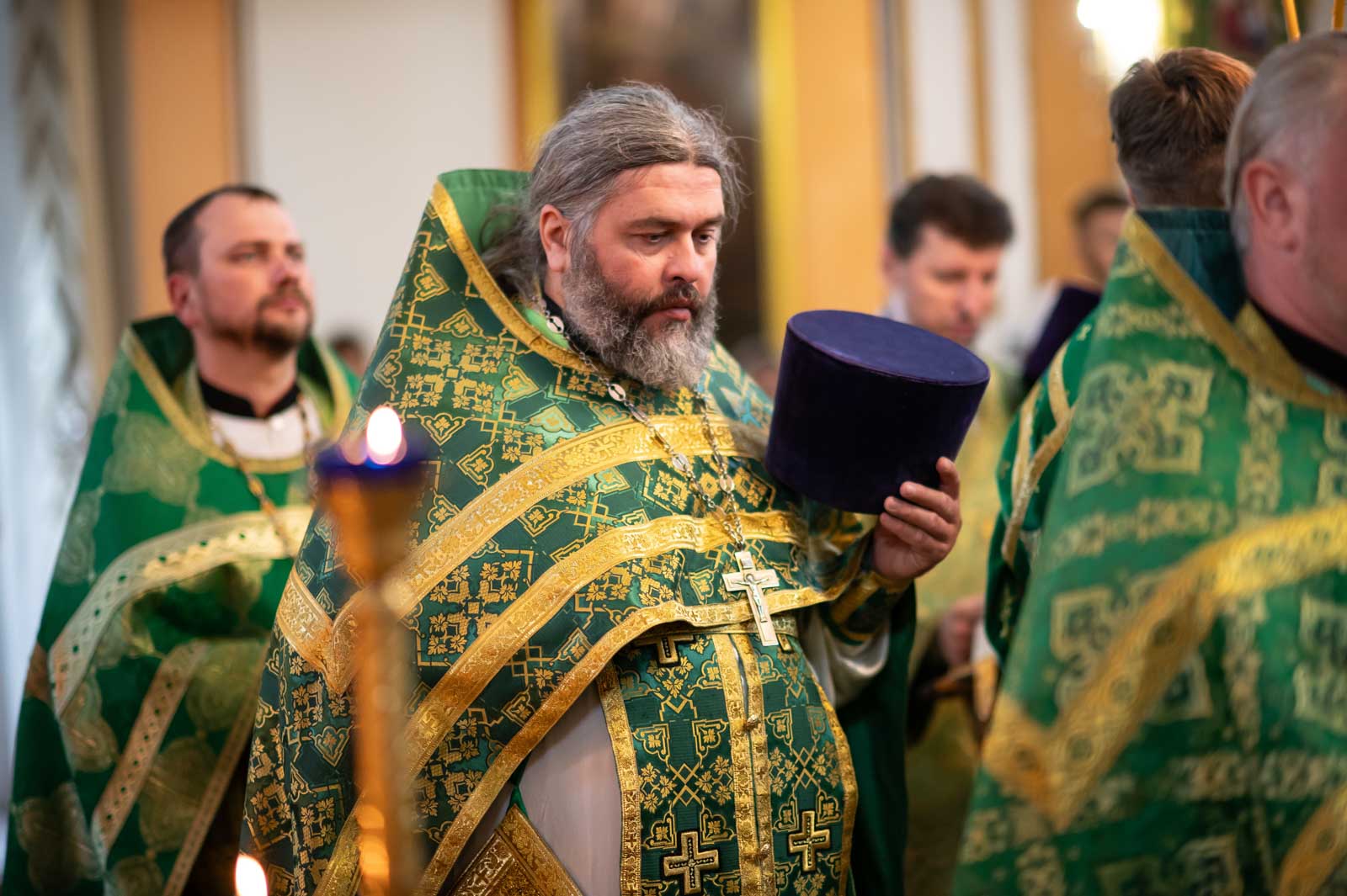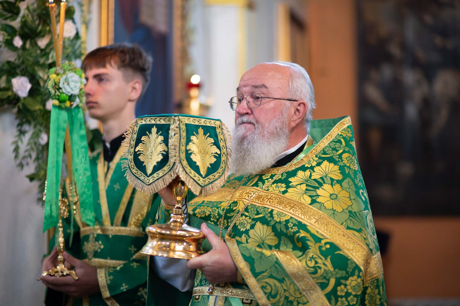 Высокопреосвященнейшему сослужили: секретарь Гомельской епархии протоиерей Георгий Алампиев; благочинный Речицкого округа протоиерей Алексей Пешко; благочинный Чечерского округа, настоятель прихода протоиерей Геннадий Хаткевич; председатель отдела по архитектуре и строительству протоиерей Георгий Тур; благочинный монастырей Гомельской епархии игумен Феодорит (Золотарев); благочинный Лоевского округа иерей Дмитрий Чварков; настоятель прихода храма Преображения Господня в г.Ветке протоиерей Михаил Борисенок; председатель комиссии по канонизации святых протоиерей Александр Лопушанский; настоятель прихода храма святого великомученика Георгия Победоносца в г.Гомеле протоиерей Дмитрий Гончаров; председатель миссионерского отдела иерей Павел Перещук; настоятель прихода храма Святого Архангела Михаила д. Хальч протоиерей Андрей Шихалов; настоятель прихода храма Покрова Пресвятой Богородицы протоиерей Александр Хамылевский; настоятель прихода храма святителя Василия Великого в аг.Залесье иерей Василий Ковальчук; настоятель прихода храма святителя Николая Чудотворца, аг. Полесье иерей Николай Куцаков; настоятель прихода храма Святителя Николая Чудотворца в д. Староселье иерей Максим Борисенок; настоятель прихода храма святителя Николая Чудотворца аг. Даниловичи протоиерей Андрей Булацкий; настоятель прихода храма Святителя Николая Чудотворца д. Железники иерей Роман Кицун; протодиакон Роман Куява.