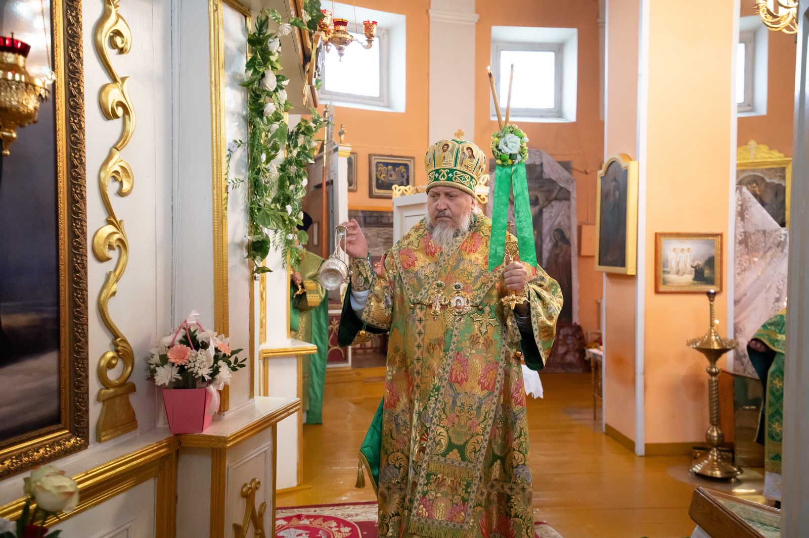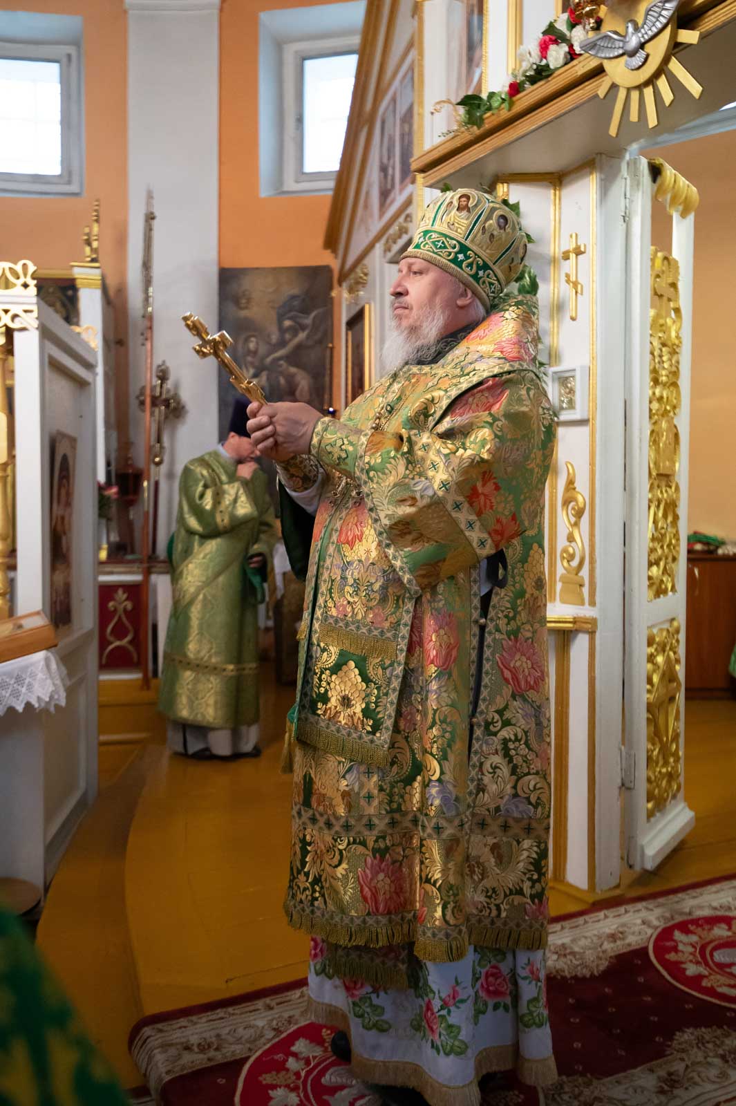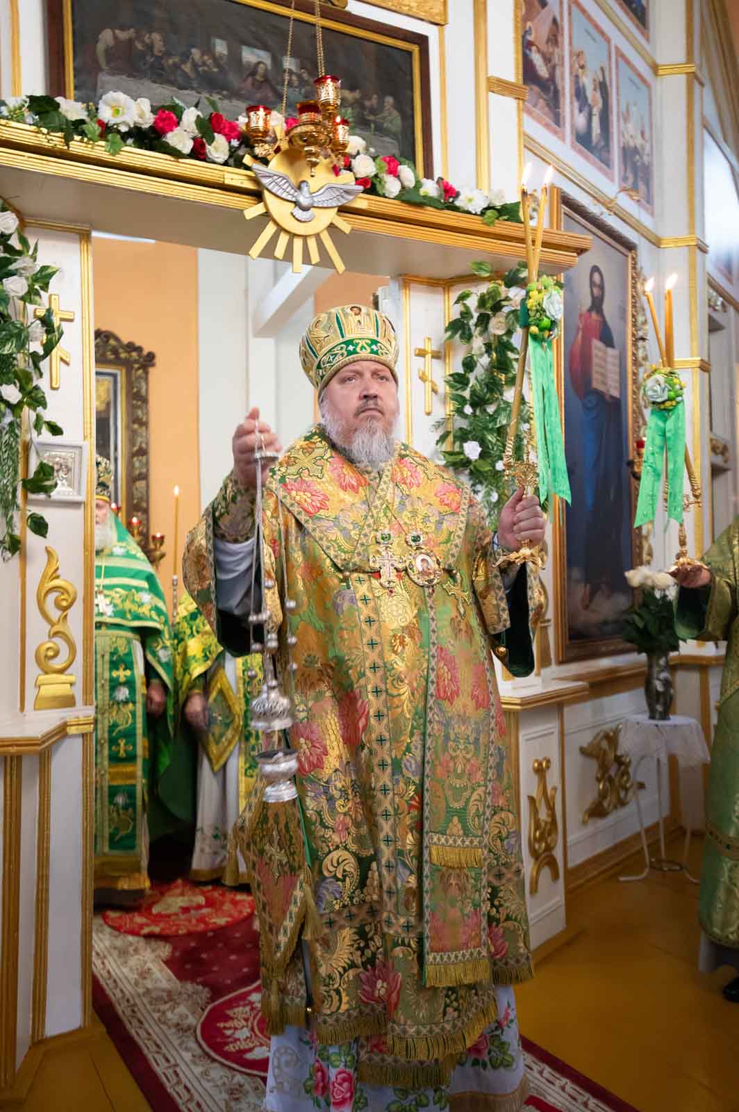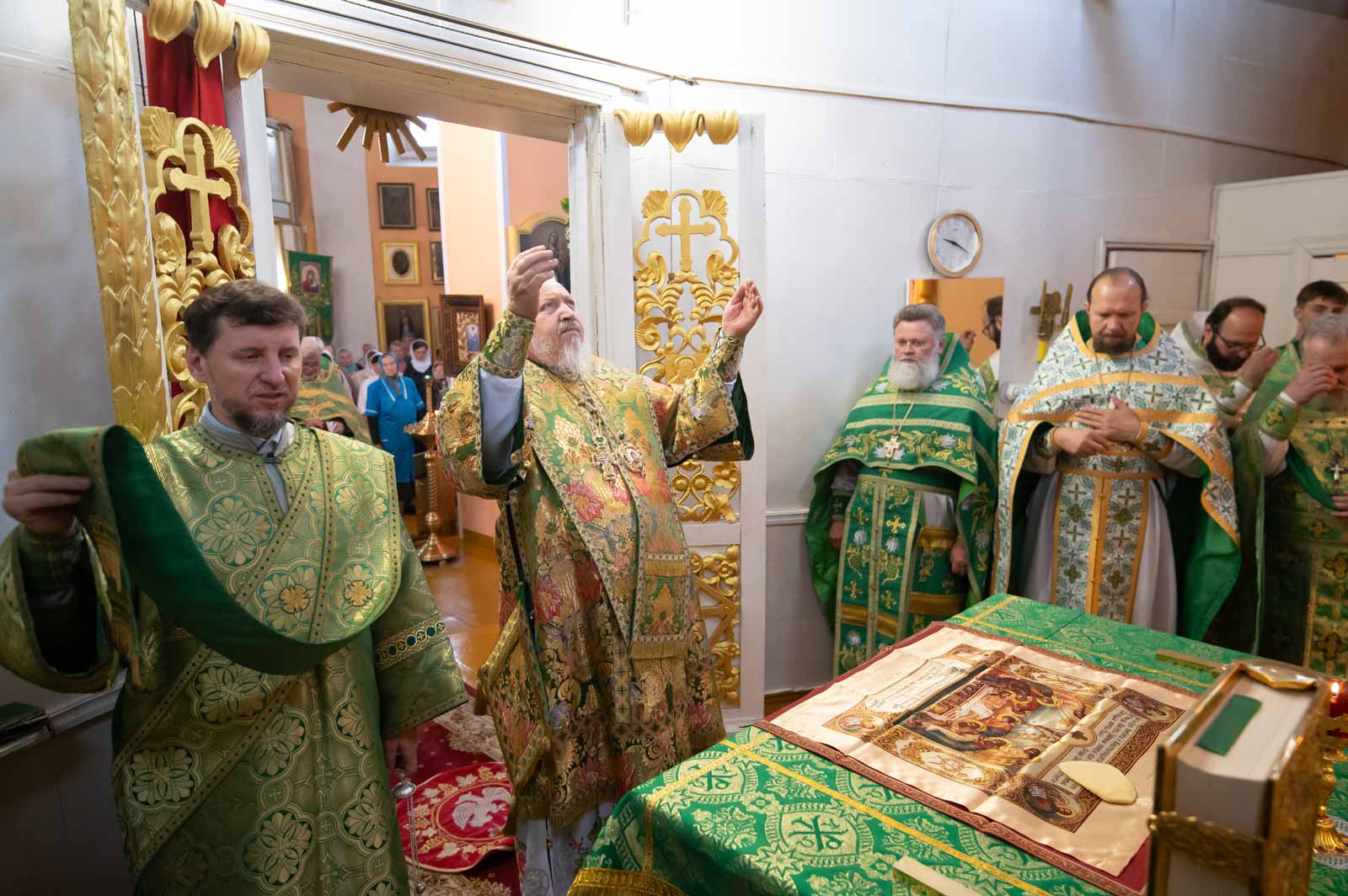 Божественную литургию 12 июня 2025 года, в четверг 1-й седмицы по Пятидесятнице, Высокопреосвященнейший Стефан, архиепископ Гомельский и Жлобинский, совершил в приходе храма Преображения Господня в г.Чечерске.