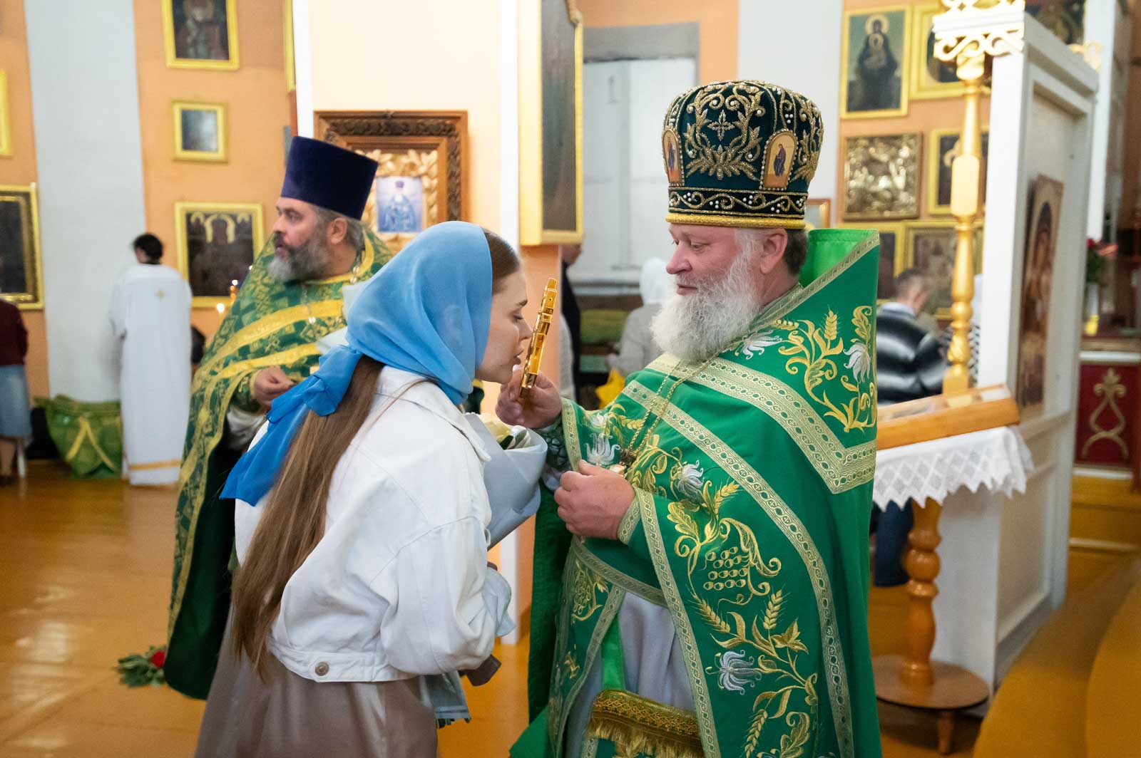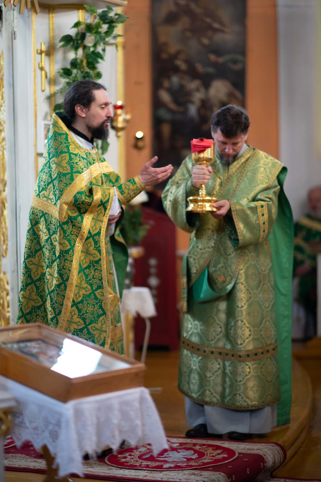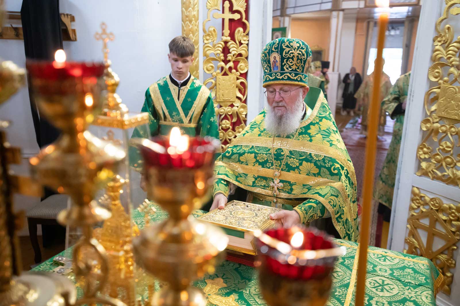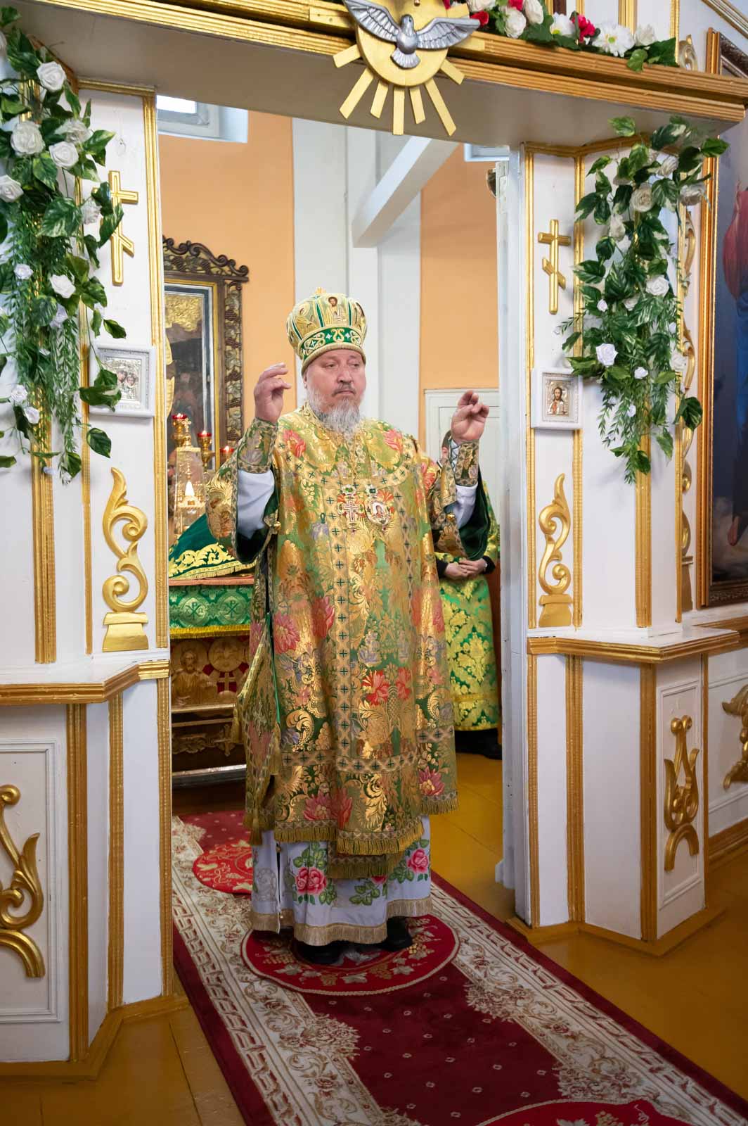 Божественную литургию 12 июня 2025 года, в четверг 1-й седмицы по Пятидесятнице, Высокопреосвященнейший Стефан, архиепископ Гомельский и Жлобинский, совершил в приходе храма Преображения Господня в г.Чечерске.