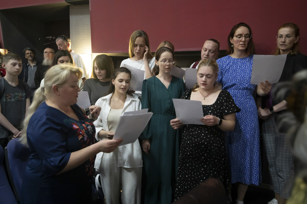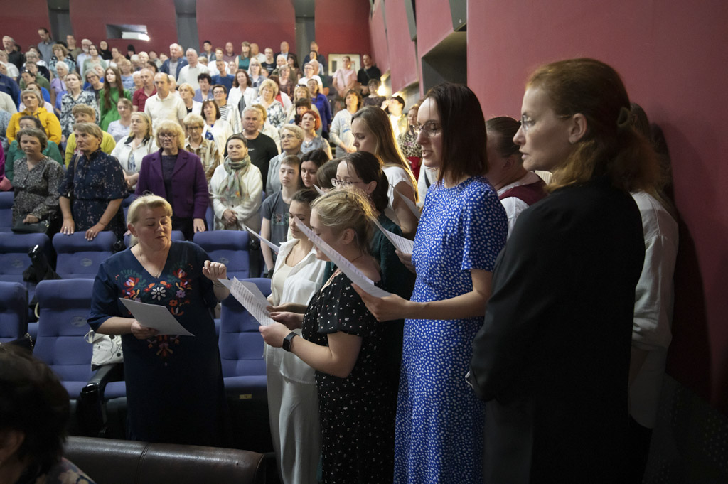 В фойе кинотеатра гости мероприятия смогли ознакомиться с книжной выставкой «Научи своё сердце добру», подготовленной специалистами ГУ «Сеть публичных библиотек г. Гомеля» — библиотекой-филиалом №3 имени Е. Романова. Выставка представила книги и материалы, способствующие духовному и нравственному воспитанию.