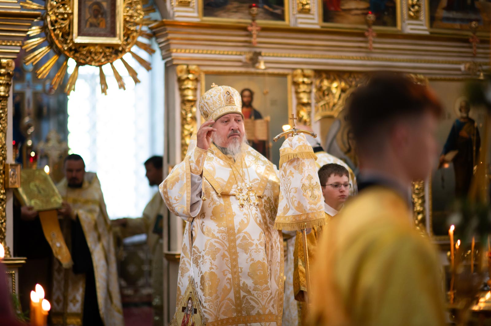 Его Высокопреосвященству сослужили клирики кафедрального собора.