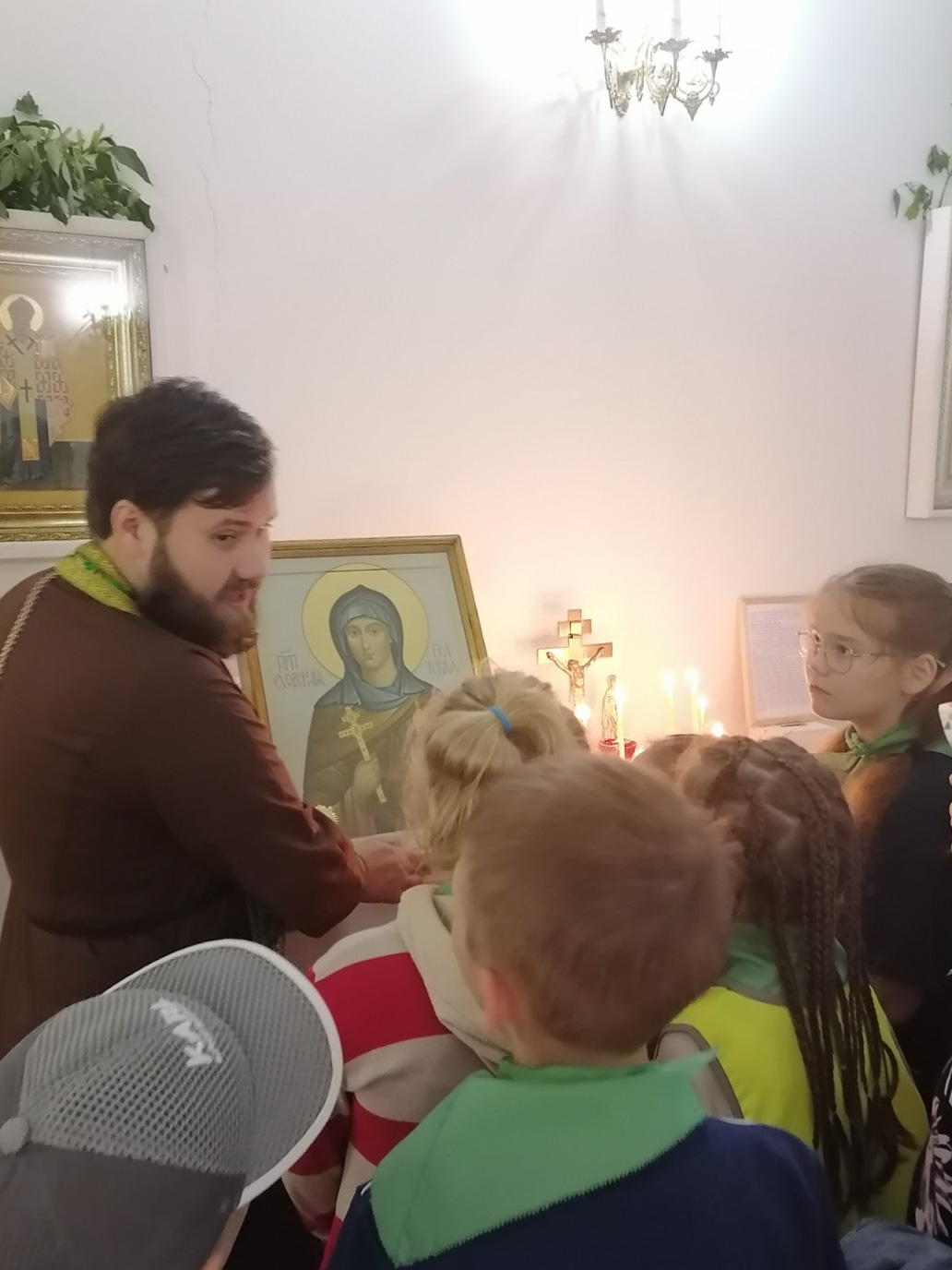 В завершении экскурсии детей угостили сладостями и подарили иконки Пресвятой Богородицы с молитвой о помощи в учёбе.