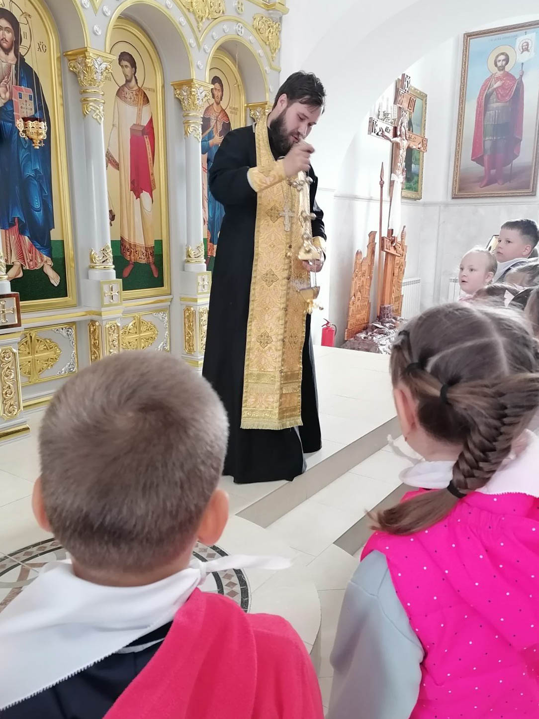 Иерей Александр Ткаченко, клирик прихода храма святого благоверного князя Александра Невского в г.Рогачеве, провёл  экскурсии для учащихся средней школы №2. Ребята смогли услышать об алтаре, где священнослужителями совершаются богослужения и находится самое главное место храма — святой престол, на котором совершается Таинство Святого Причащения. Батюшка познакомил детей с богослужебными предметами: кадилом, Священной чашей, крестом напрестольным, дискосом. Школьники узнали от священника, что важно со всей искренностью, как дети обращаются к своим родителям, просить Господа о помощи и вразумлении и обязательно благодарить Его за то, что живы и здоровы, за помощь и поддержку. Также отец Александр показал, как правильно поставить свечи и помолиться Господу.