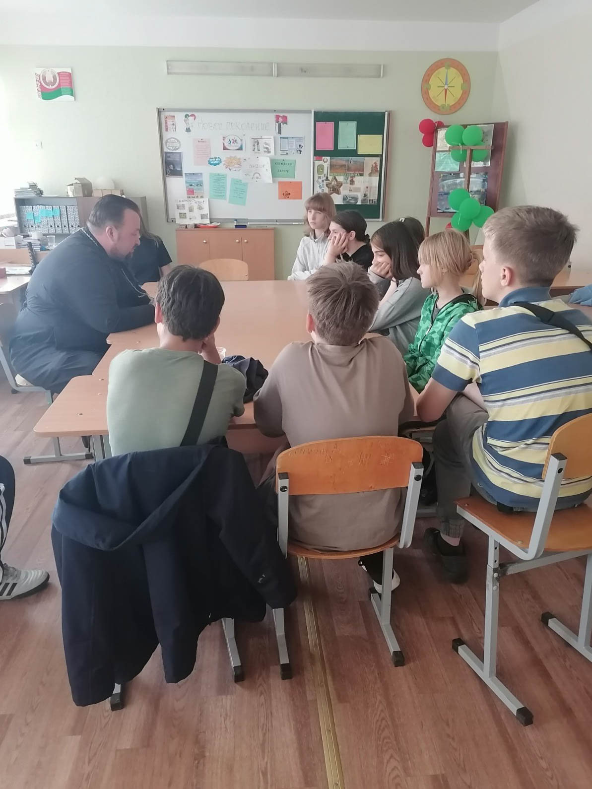Клирик прихода храма святого благоверного князя Александра Невского в г.Рогачеве иерей Дионисий Фенюк рассказал учащимся средней школы №6, что каждый несёт ответственность за свои слова и поступки. У человека есть свобода выбора, и он решает, чем заполнить свою душу — добром или злом. «Но всегда нужно задумываться, — отметил батюшка, — к чему в конечном итоге  придешь со своим выбором».