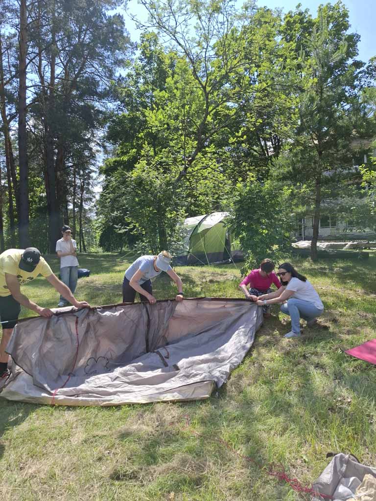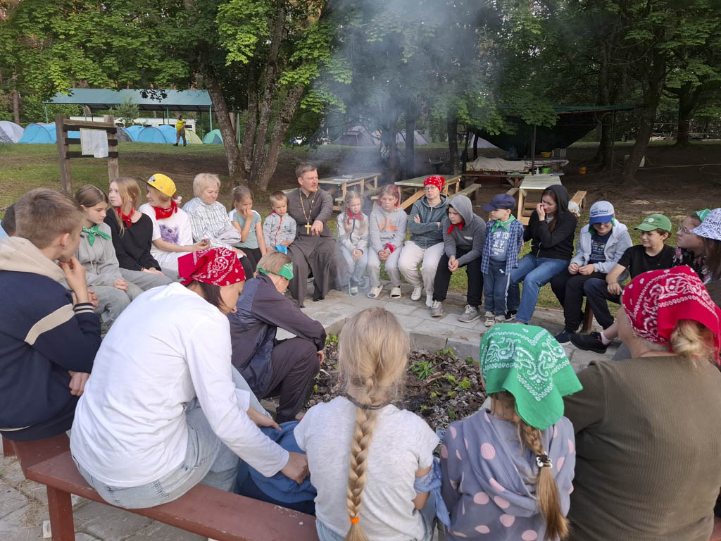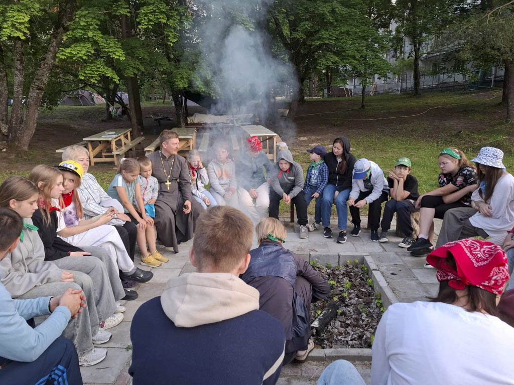 Для детей методисты отдела религиозного образования и катехизации — Светлана Александровна Хомец и Татьяна Александровна Давыденко — организовали игры на знакомство, благодаря которым быстро установилась дружеская и тёплая атмосфера. Первый день завершился уютными посиделками у костра и общей вечерней молитвой.