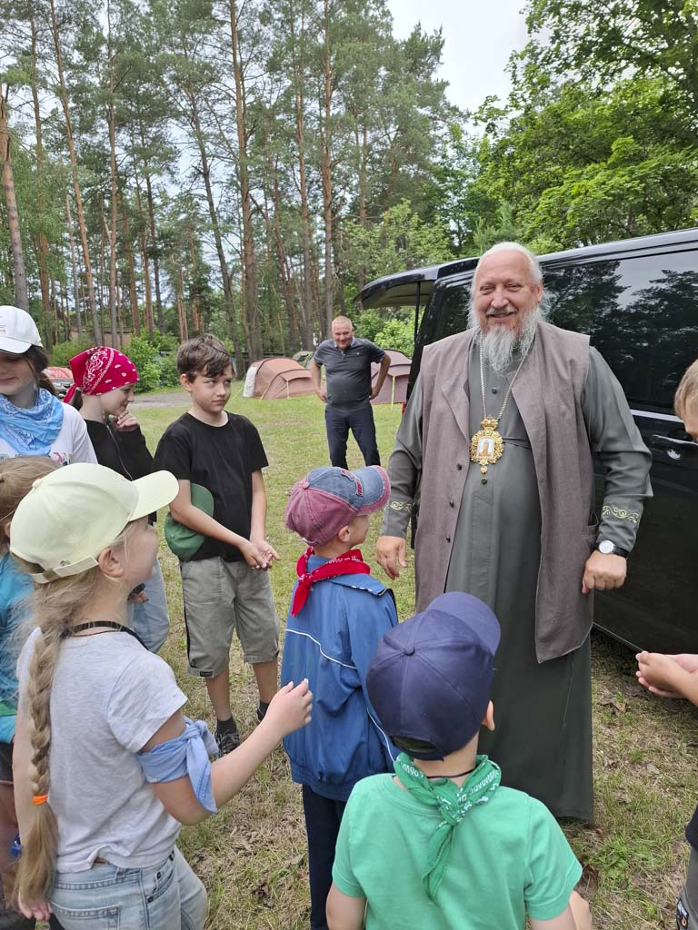 Во второй день епархиального семейного слёта, который проходит на подворье Свято-Никольского мужского монастыря в агрогородке Терюха, с визитом приехал Высокопреосвященнейший Стефан, архиепископ Гомельский и Жлобинский. Владыка преподал всем участникам архипастырское благословение и гостинцы, что стало поддержкой и радостью для всех присутствующих.