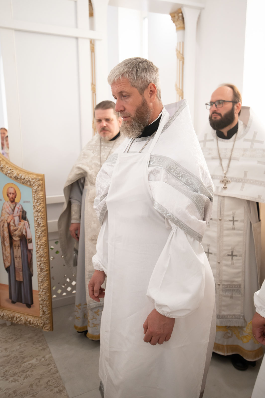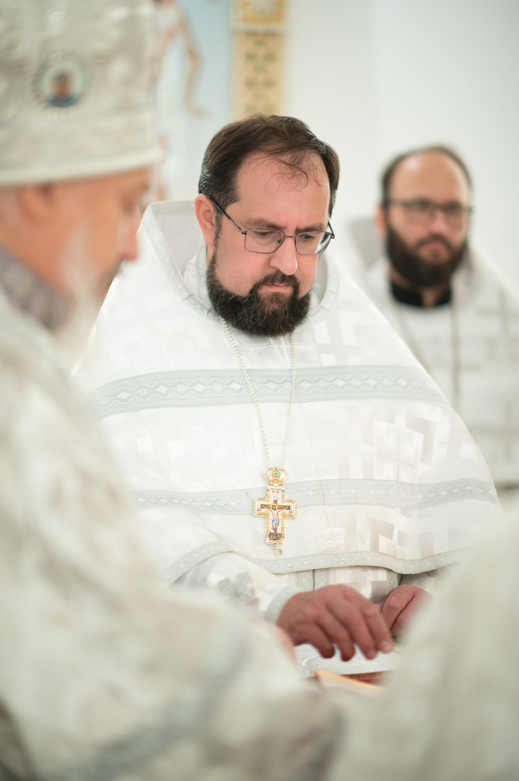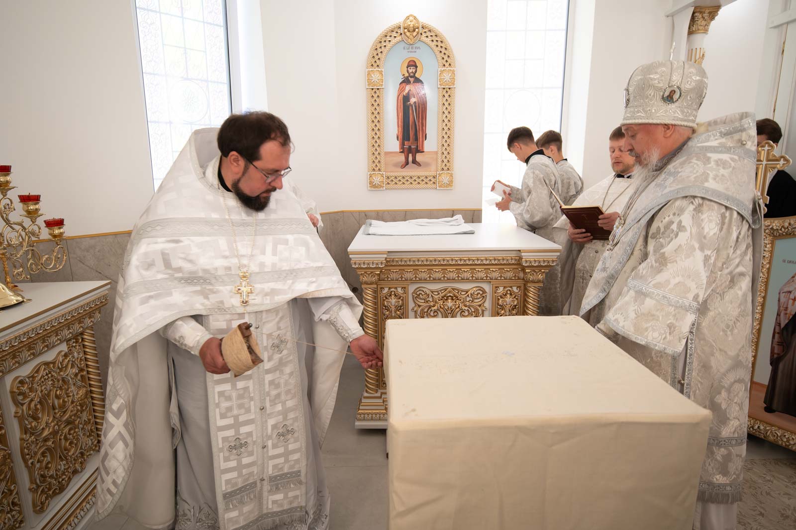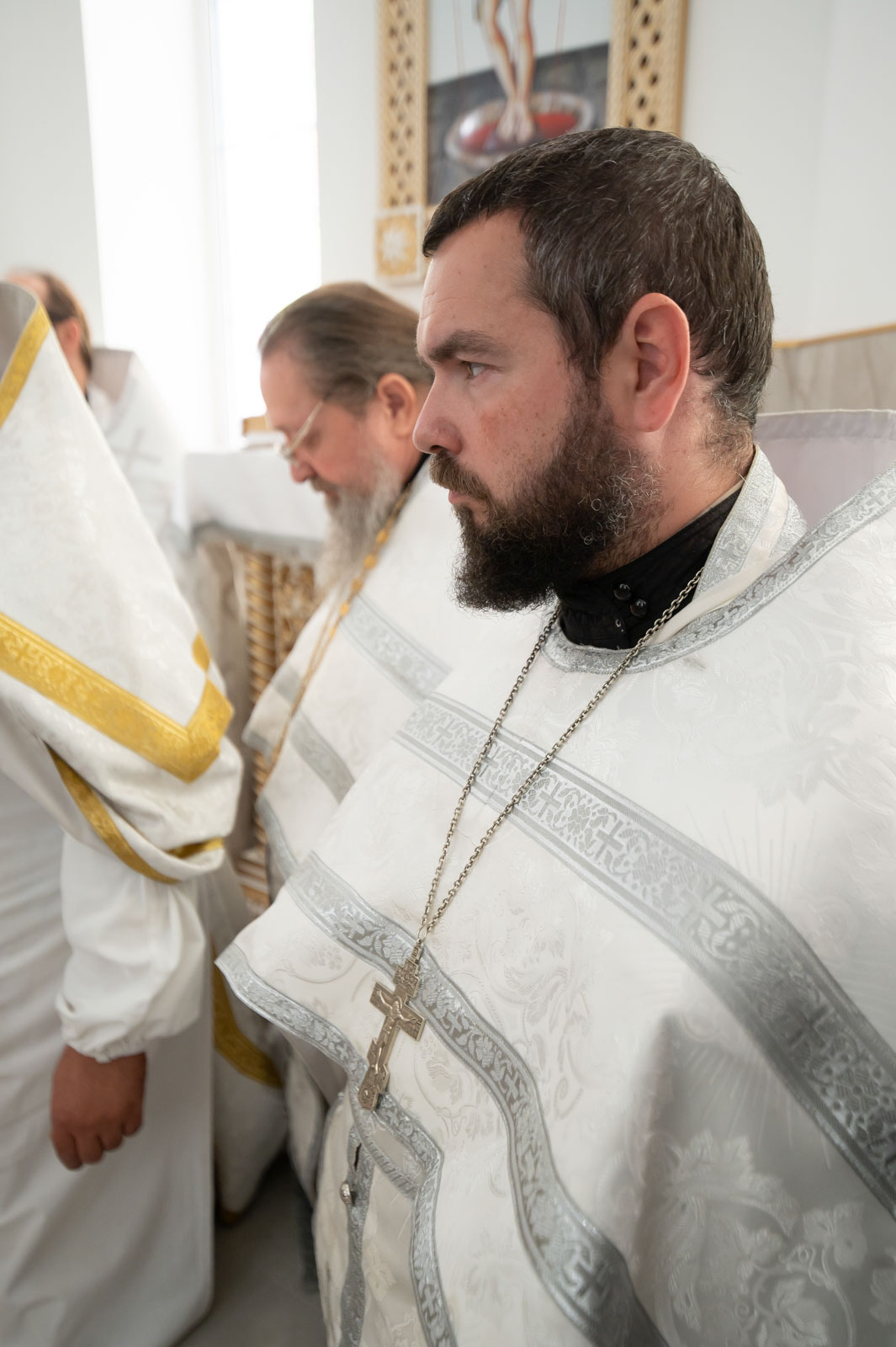 Его Высокопреосвященству сослужили: секретарь Гомельской епархии протоиерей Георгий Алампиев; благочинный Гомельского городского округа, настоятель прихода протоиерей Игорь Ольшанов; благочинный Гомельского районного округа протоиерей Артемий Кривицкий; эконом епархии протоиерей Владимир Масалитин; ректор Библейско-богословских курсов Гомельской епархии протоиерей Вадим Кочан; председатель комиссии по канонизации святых протоиерей Александр Лопушанский; иерей Петр Кебиков клирик прихода храма святого Архангела Михаила в г. Гомеле; иерей Алексей Митрофанов, клирик прихода храма святого Архангела Михаила в г. Гомеле; иерей Станислав Смоляк, настоятель прихода храма Святителя Николая Чудотворца в г.Гомеле; иерей Владислав Стасенко, клирик прихода храма святого Архангела Михаила в г. Гомеле; протодиакон Роман Куява; диакон Дмитрий Помоз.