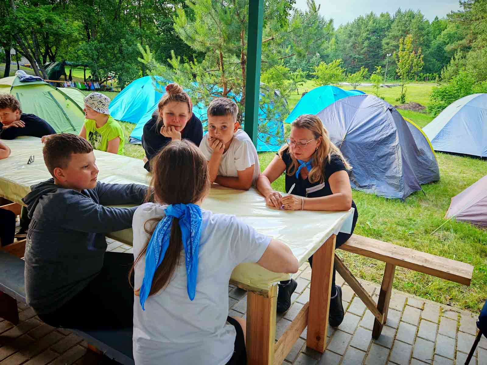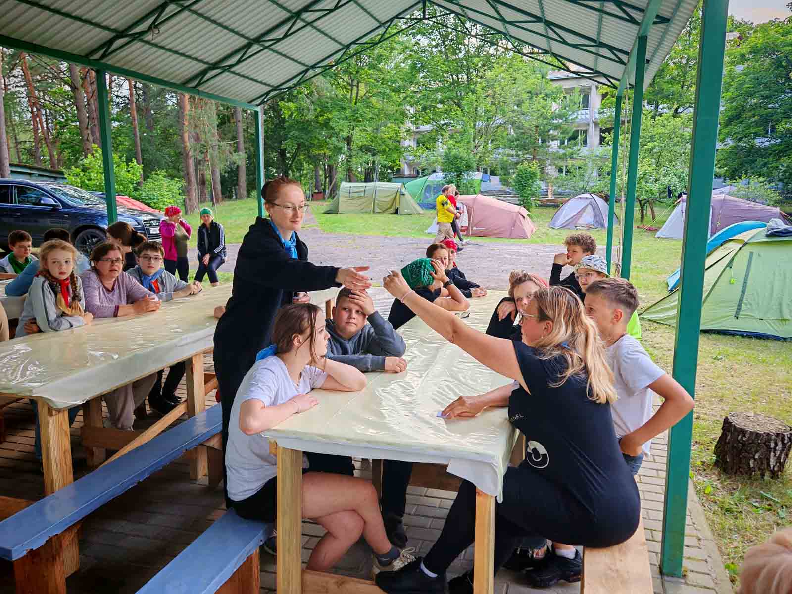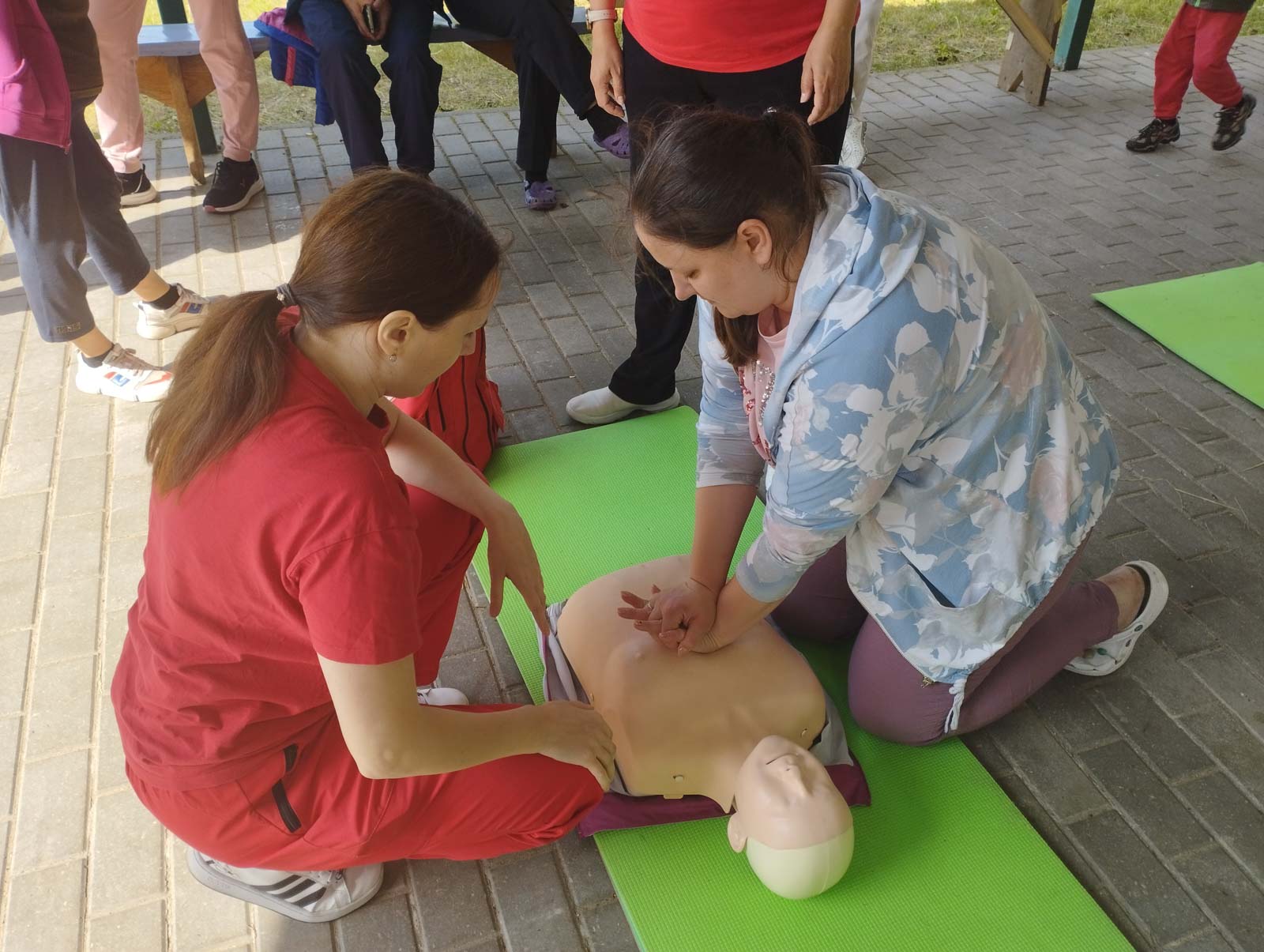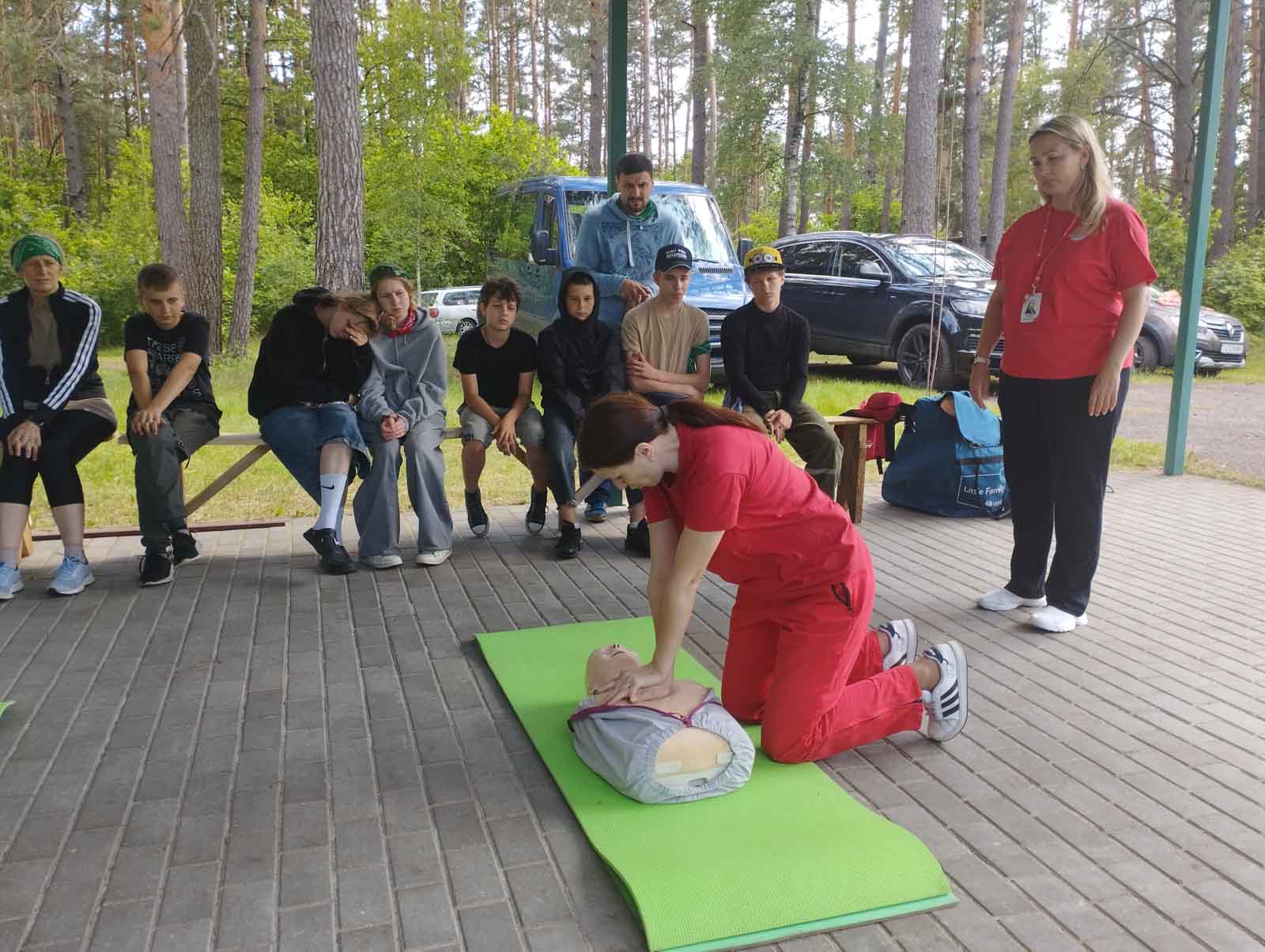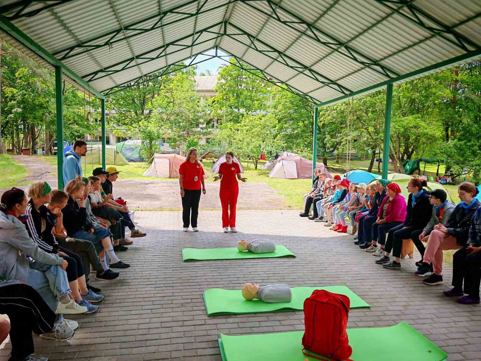 Также в этот день на семейный слет прибыли представители Гомельской областной организации Белорусский Красный Крест Алина Юшкевич и Ольга Крятова. Тренеры ознакомили участников слета с правилами оказания первой медицинской помощи пострадавшему при нарушении проходимости верхних дыхательных путей, обмороке и приступе эпилепсии.