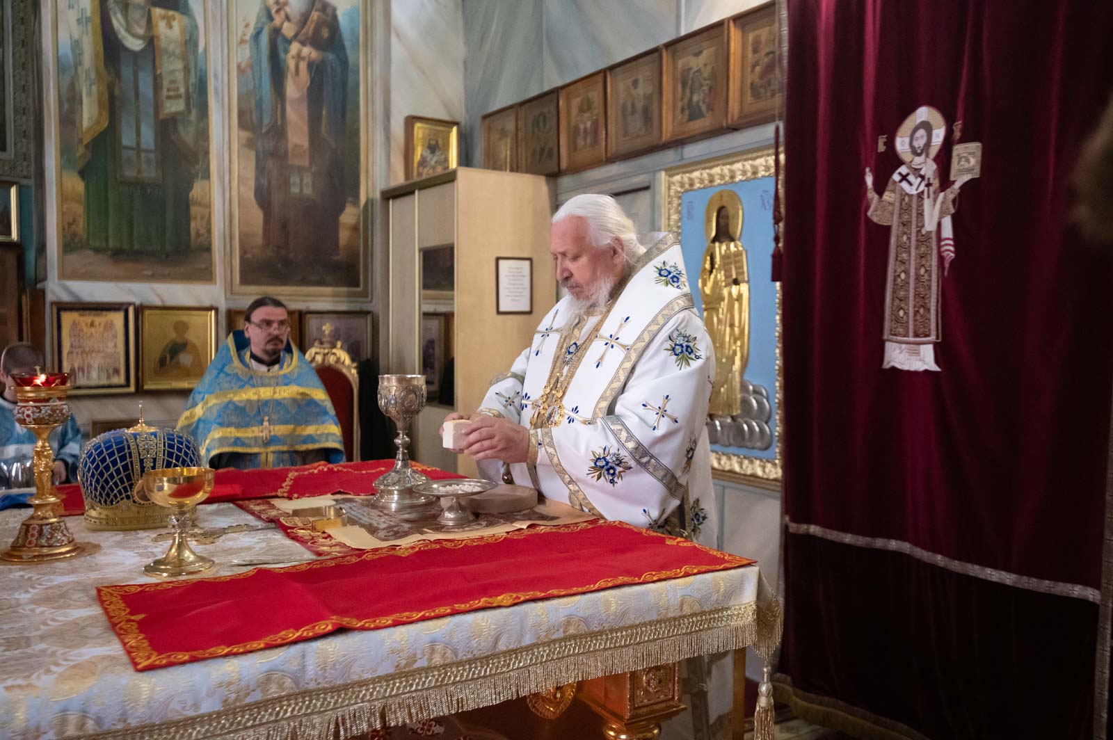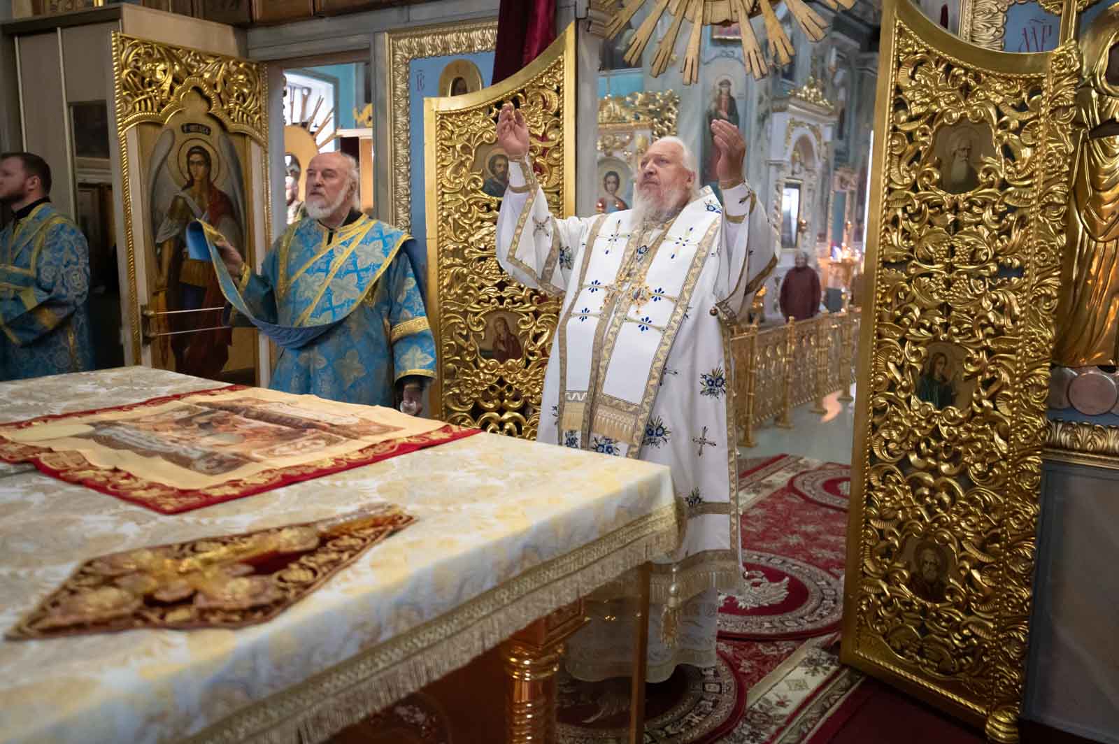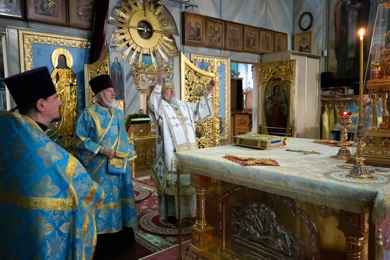 За богослужением были вознесены сугубые молитвенные прошения о мире.