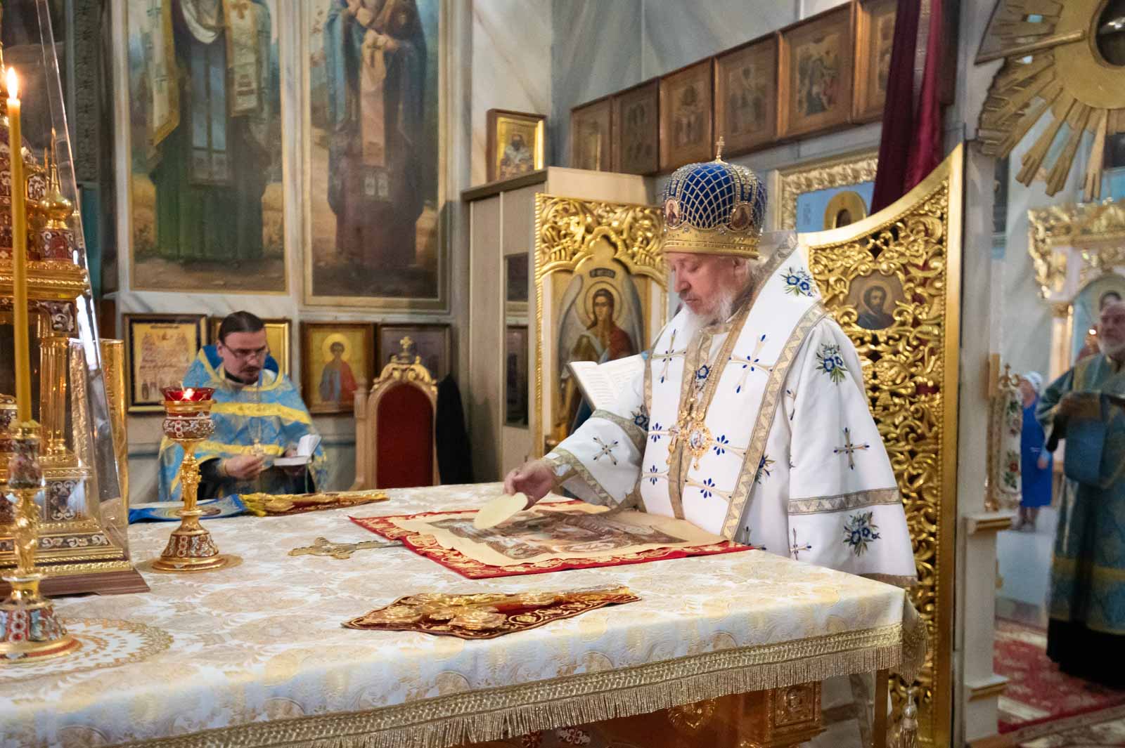 Владыке сослужили клирики кафедрального собора.