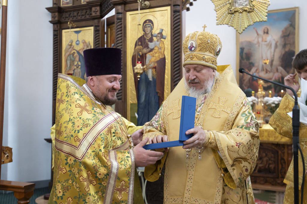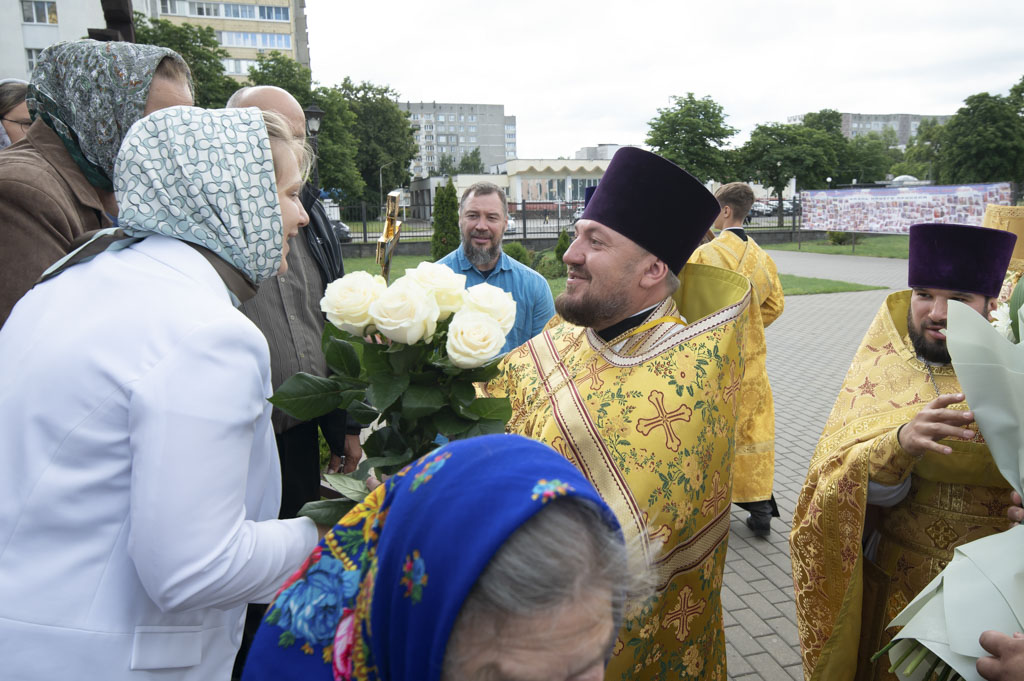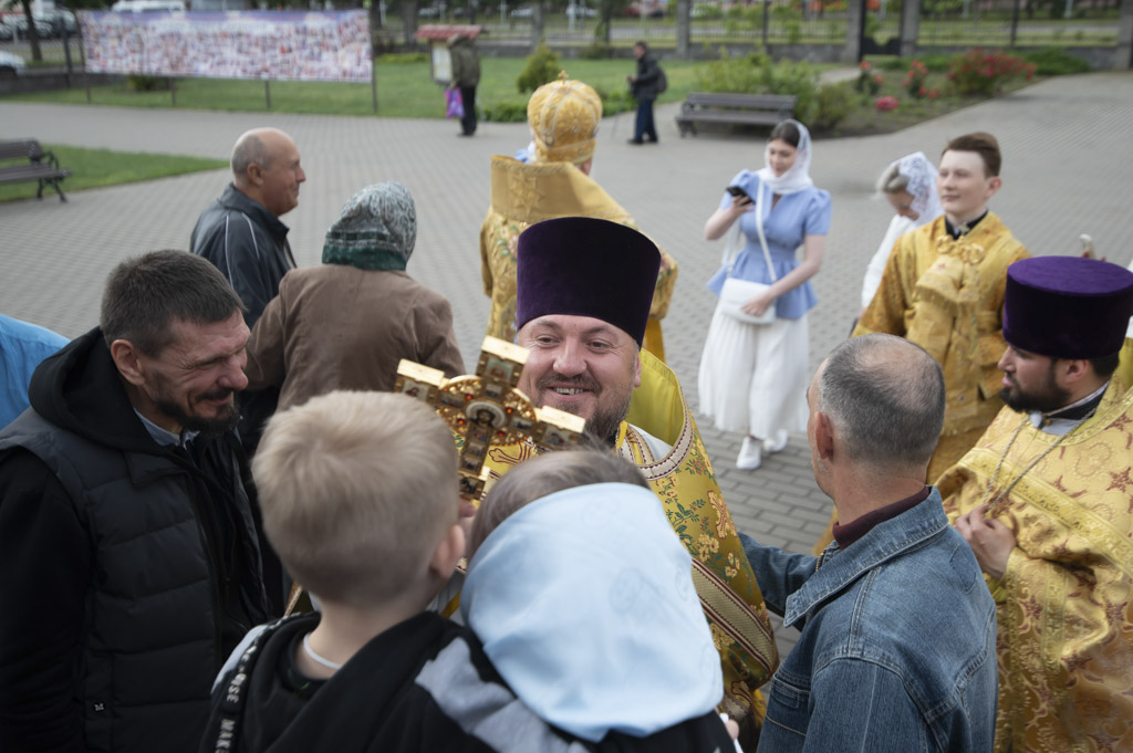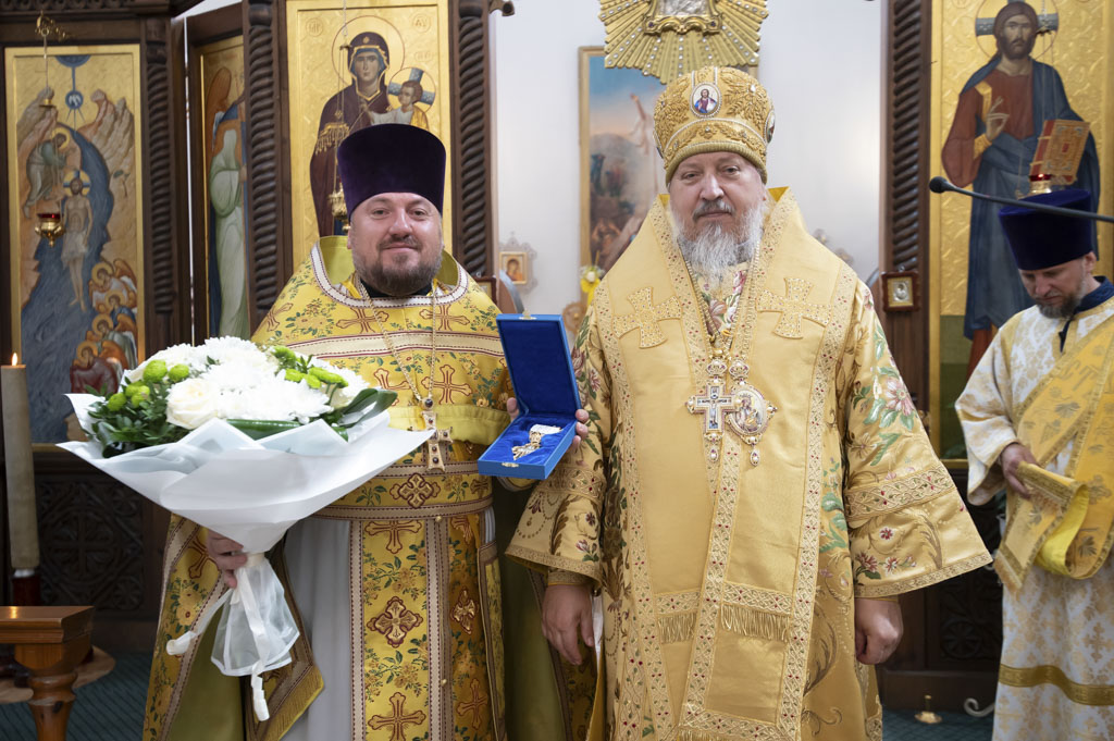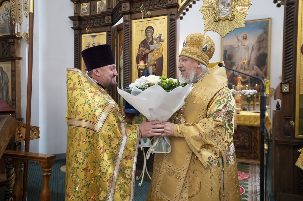 По окончании Литургии архиепископ Стефан сердечно поздравил настоятеля храма и благочинного Светлогорского округа протоиерея Александра Киселя с Днём рождения. Владыка пожелал ему крепости сил, здоровья, мира и Божией помощи в несении пастырского служения, преподнеся наперсный крест и букет цветов в знак архипастырской любви и уважения.