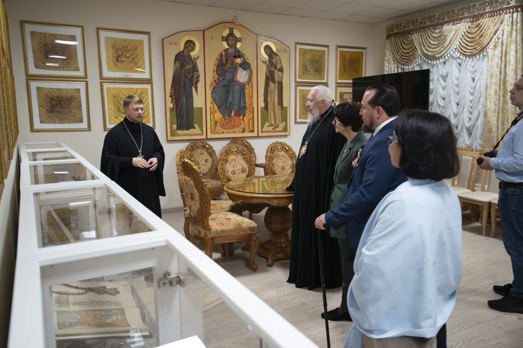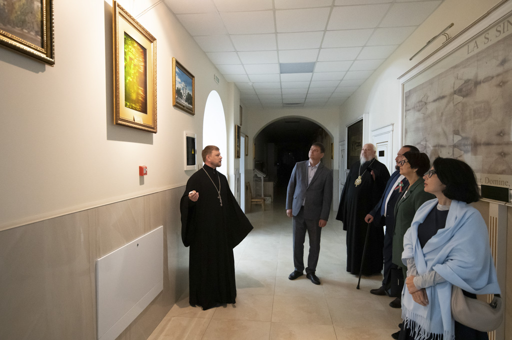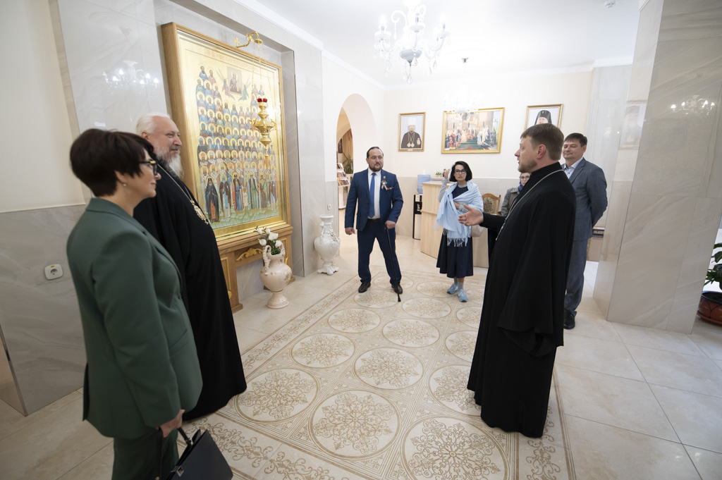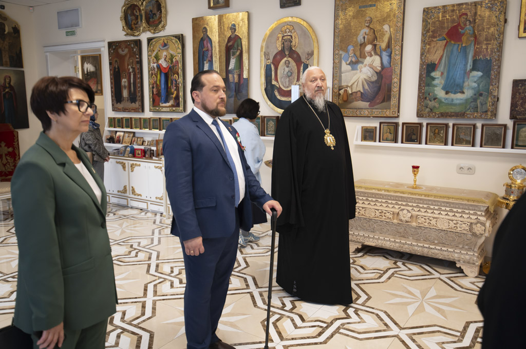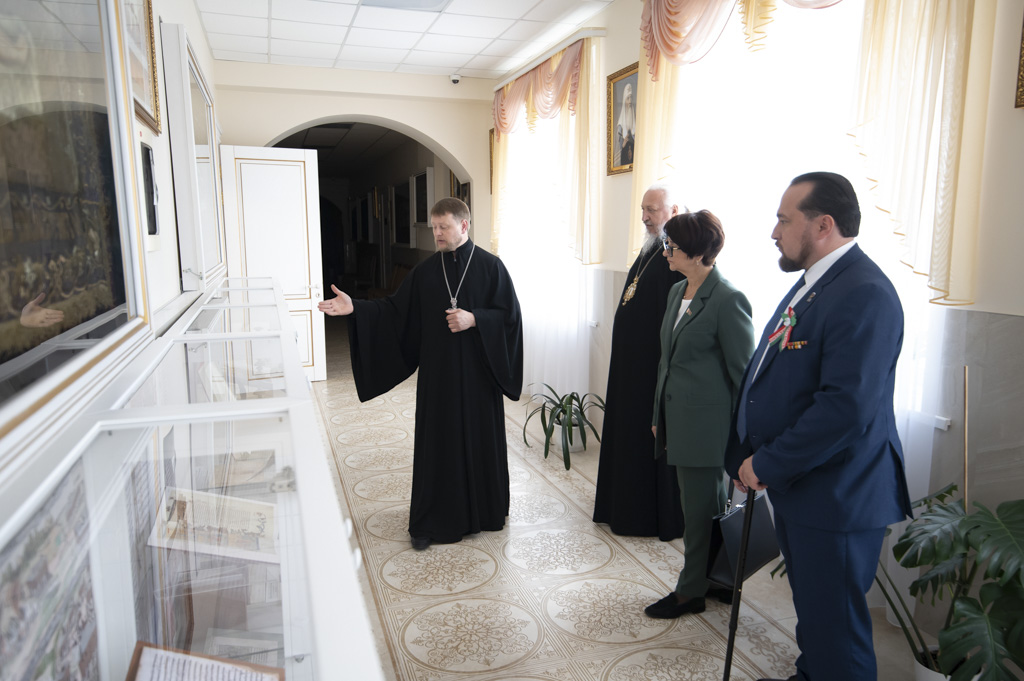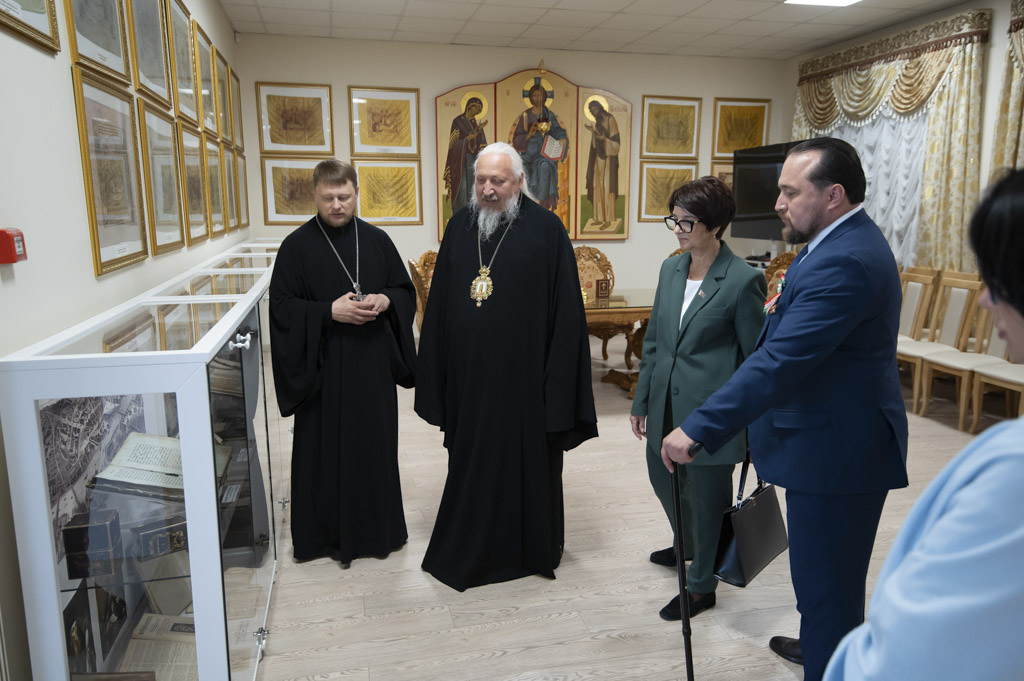 После встречи участники посетили домовый храм-музей, расположенный при Гомельском епархиальном управлении. Экскурсию по нему провели Владыка Стефан и секретарь епархии протоиерей Георгий Алампиев. Гости смогли прикоснуться к истории епархии, духовному наследию региона и почувствовать живое дыхание Церкви в её сегодняшнем служении.