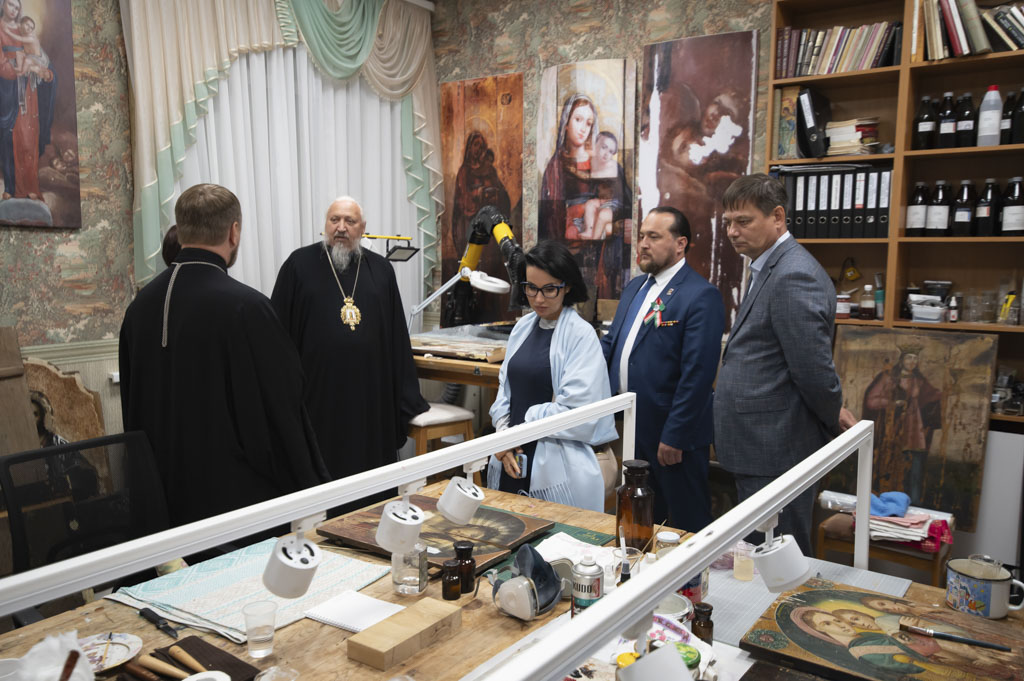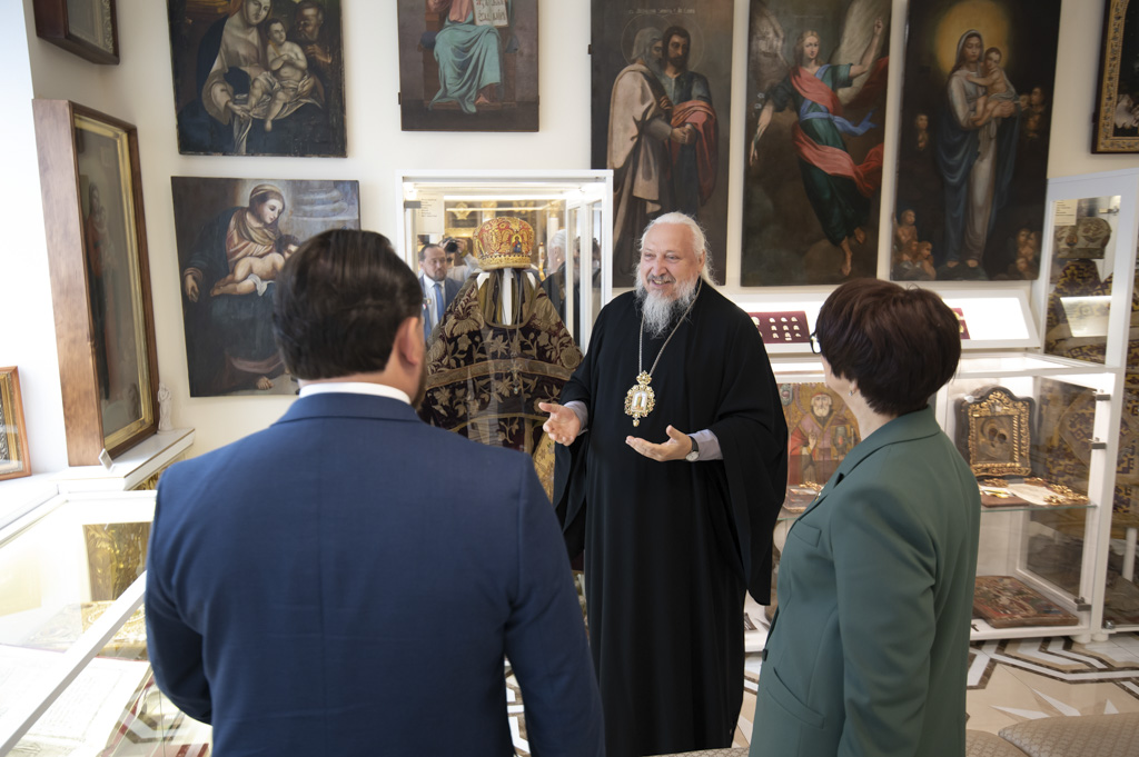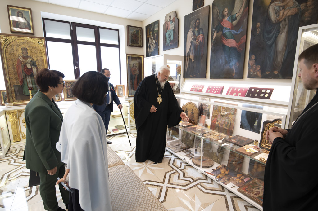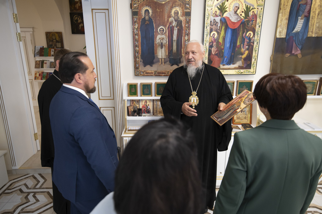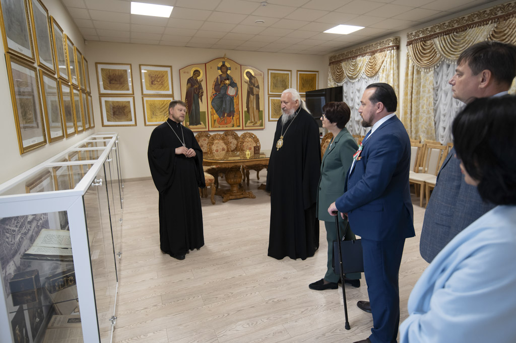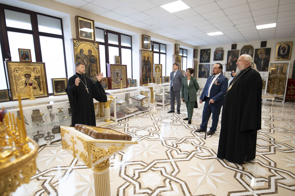 После встречи участники посетили домовый храм-музей, расположенный при Гомельском епархиальном управлении. Экскурсию по нему провели Владыка Стефан и секретарь епархии протоиерей Георгий Алампиев. Гости смогли прикоснуться к истории епархии, духовному наследию региона и почувствовать живое дыхание Церкви в её сегодняшнем служении.