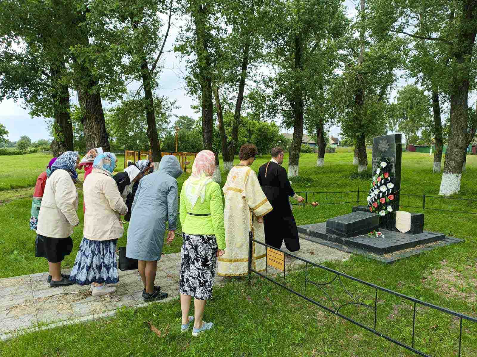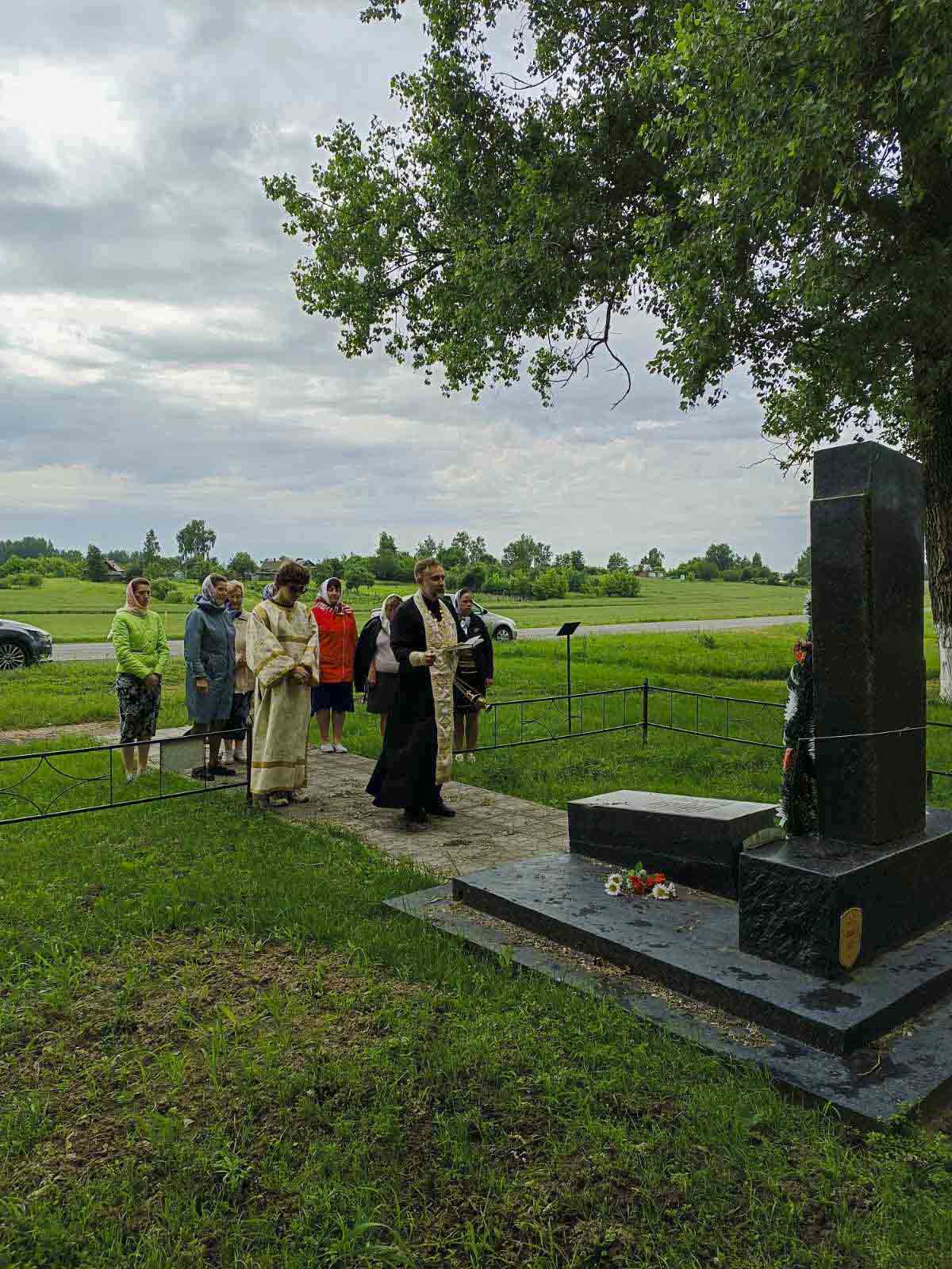 Настоятель храма священномученика Пиония совершил заупокойную литию с прихожанами храма на месте захоронения расстрелянных во время ВОВ жителей и пленных солдат в деревне Руденец.