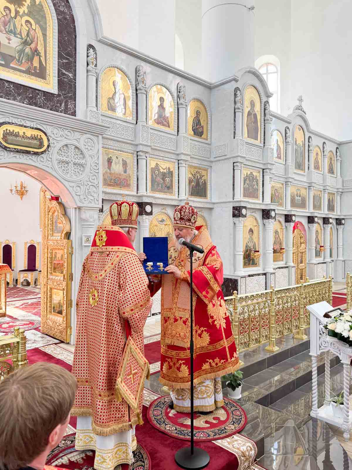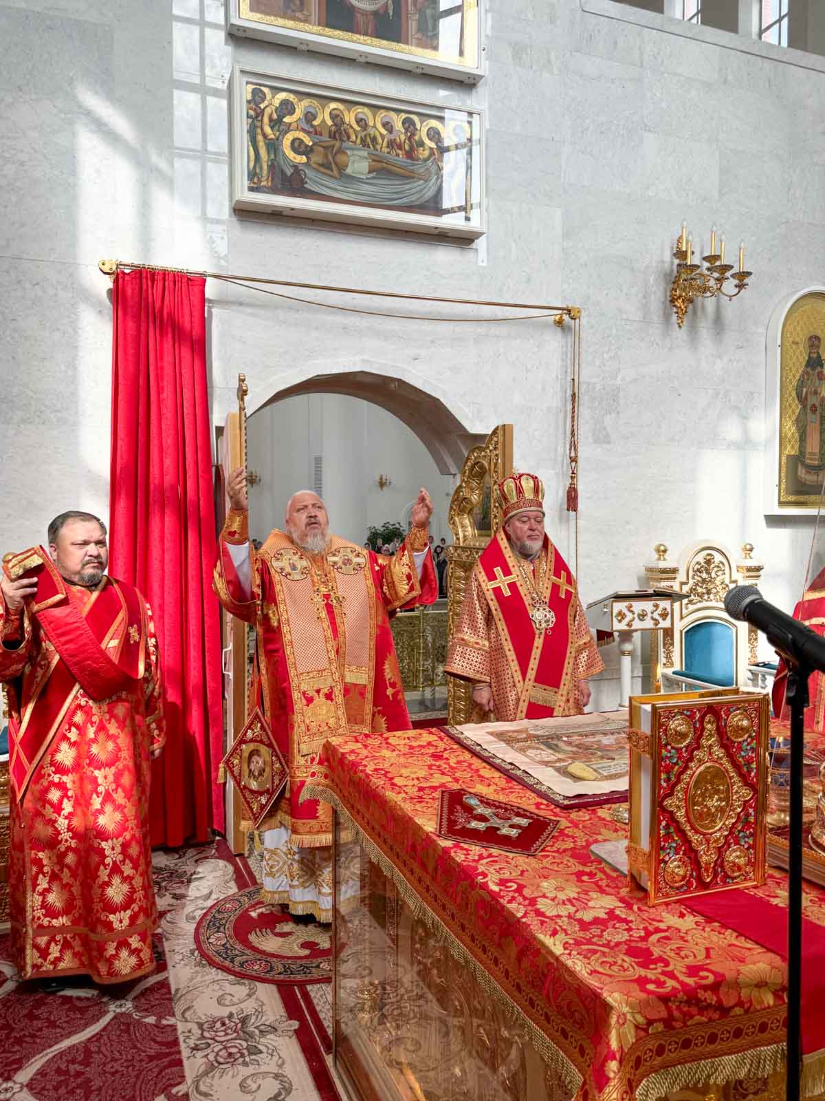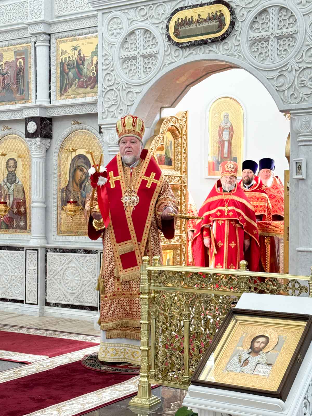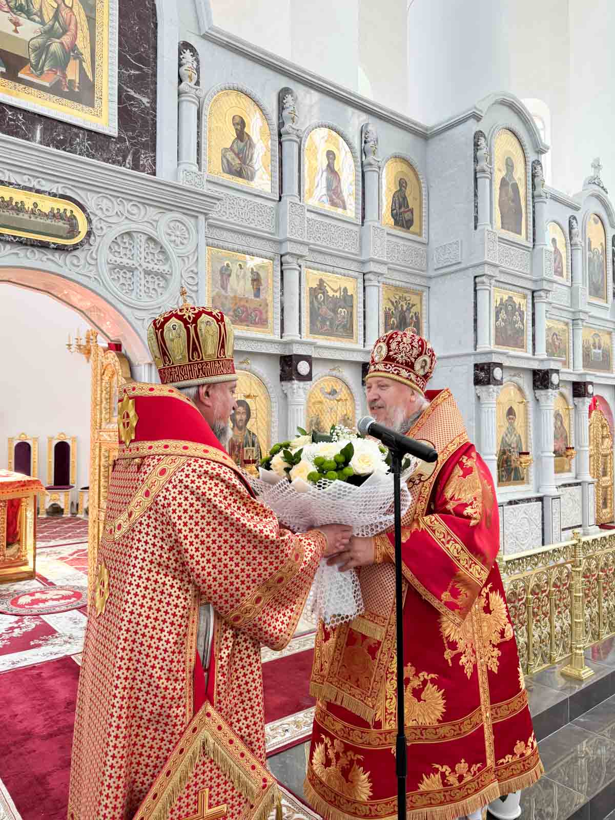 По окончании Литургии архиепископ Стефан с сердечной теплотой поздравил Преосвященнейшего епископа Владимира с днём тезоименитства, а также с юбилейными датами: 40-летием священнической хиротонии и 10-летием архиерейского служения, пожелав укрепления духовных и телесных сил, неоскудевающей помощи Божией во всех трудах, мудрости, благодати и доброго здравия на многая и благая лета.