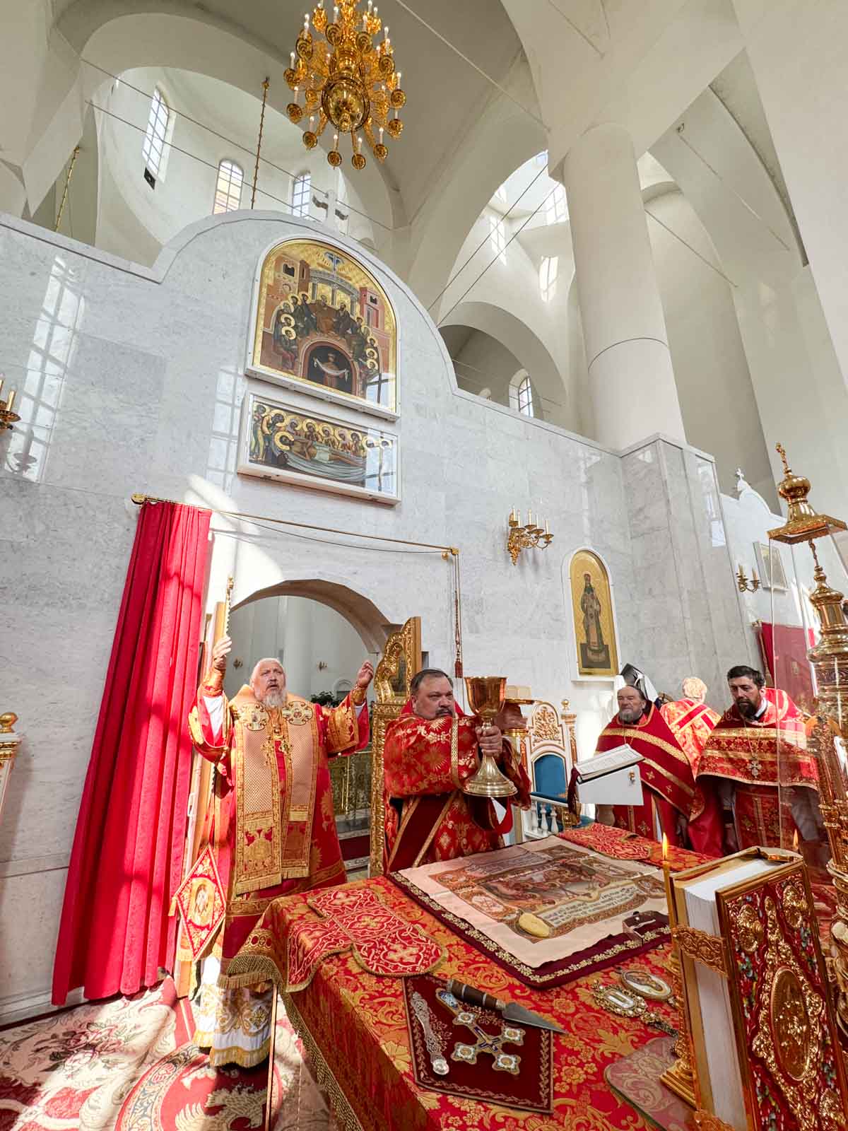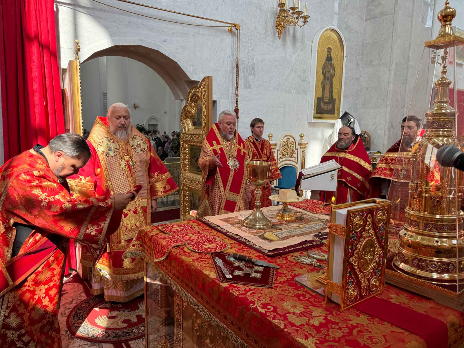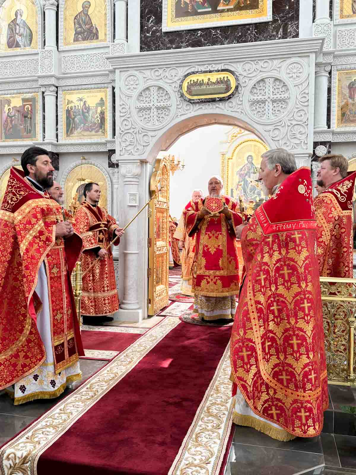 По окончании Литургии архиепископ Стефан с сердечной теплотой поздравил Преосвященнейшего епископа Владимира с днём тезоименитства, а также с юбилейными датами: 40-летием священнической хиротонии и 10-летием архиерейского служения, пожелав укрепления духовных и телесных сил, неоскудевающей помощи Божией во всех трудах, мудрости, благодати и доброго здравия на многая и благая лета.